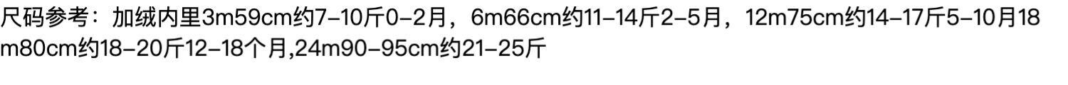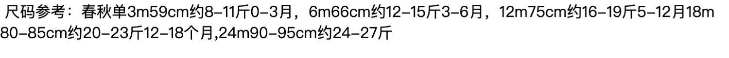 サイズ:3m59cm約0-22月8-10kg,6m66cm2月〜2月2月11-14kg,12m73cm約5-1010月15-18kg,18m80cm約11-15ヶ月19-22kg,24m90cm約23-26kg