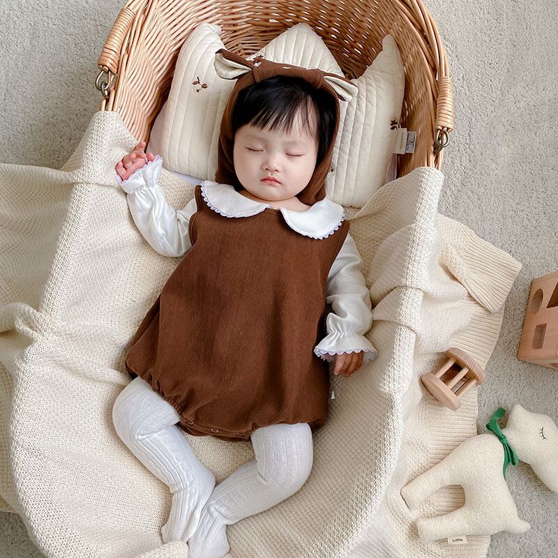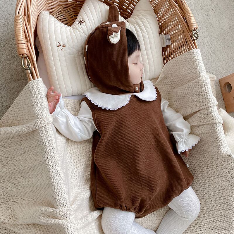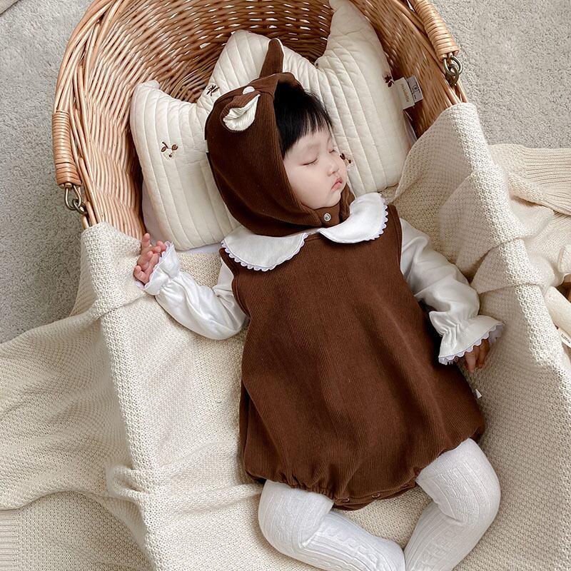色:ブラウンコーデュロイジャンプスーツ+ハットフリース裏地,カーキコーデュロイワンピース+ハットフリース裏地,ブラウンワンピース+帽子+秋のベースコート、フリースの裏地,ブラウンジャンプスーツ+キャップ+秋のベースコート+パンスト、フリースの裏地
