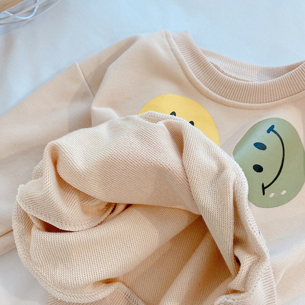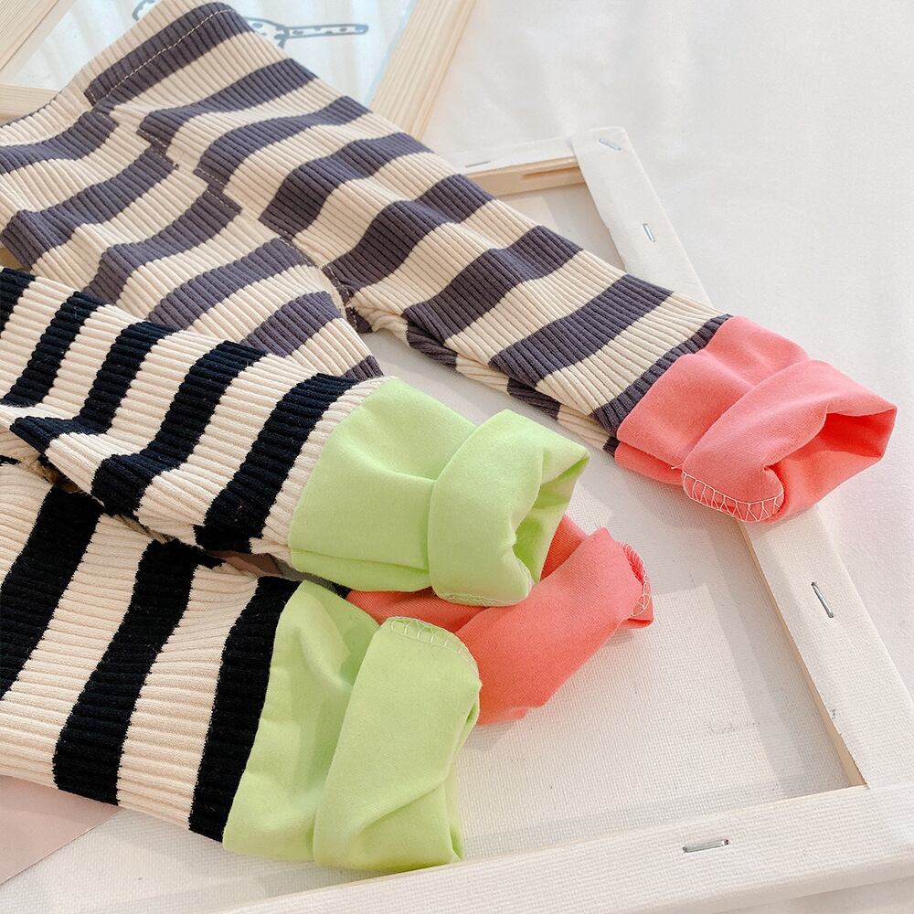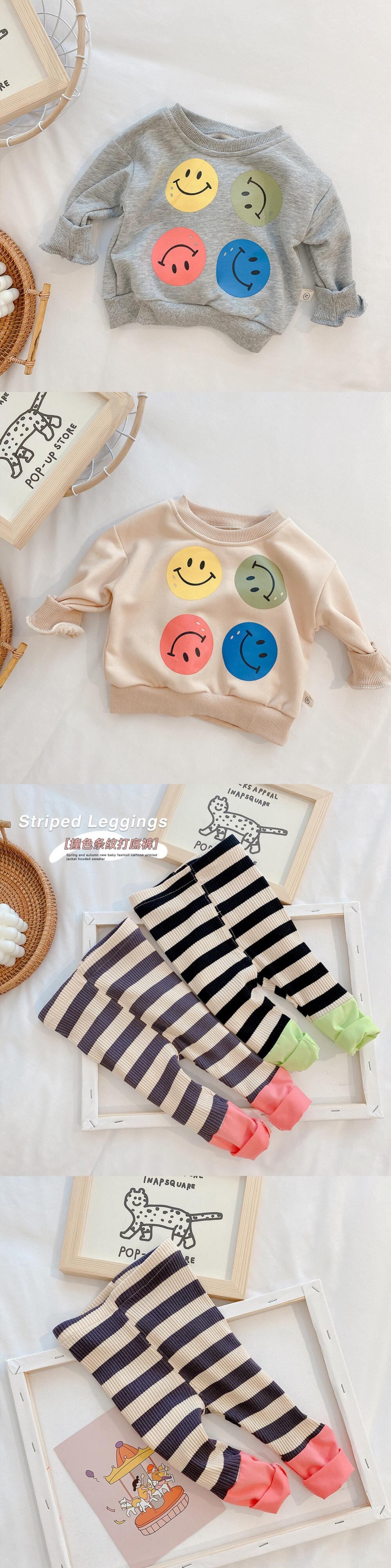 色:スマイリーグレートップ,スマイリーベージュトップ,ストライプコントラストステッチピンクパンツ,ストライプコントラストステッチグリーンパンツ