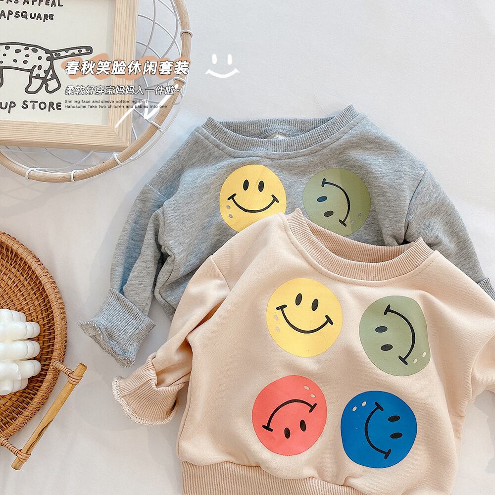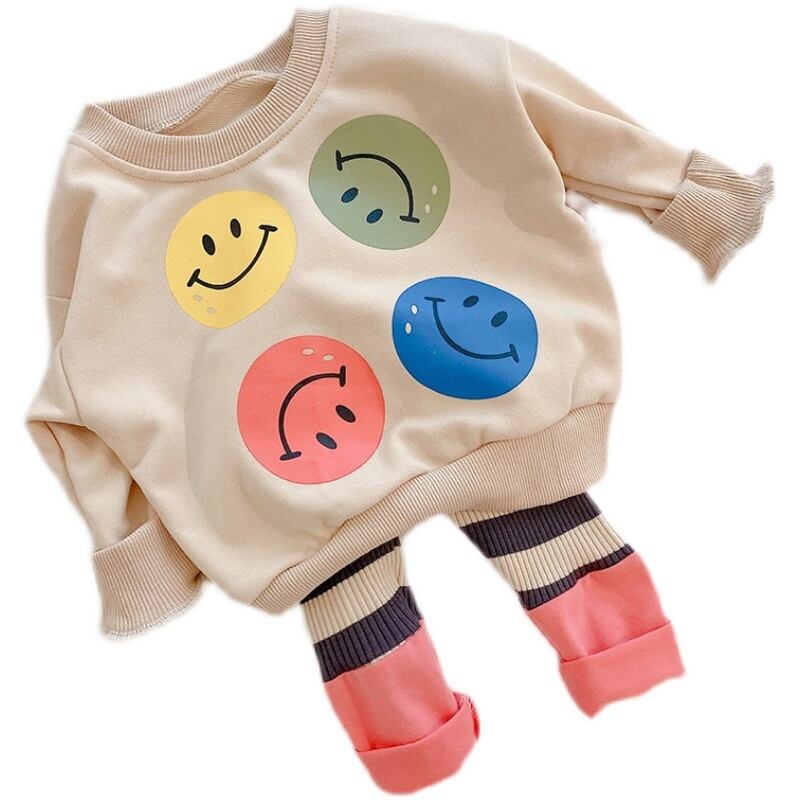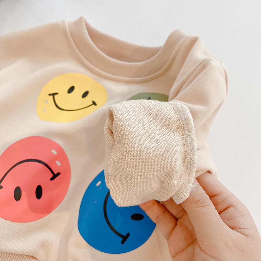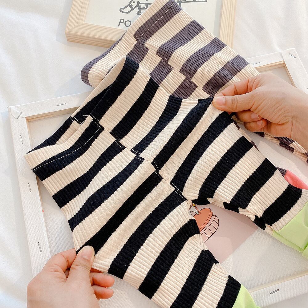 色:スマイリーグレートップ,スマイリーベージュトップ,ストライプコントラストステッチピンクパンツ,ストライプコントラストステッチグリーンパンツ