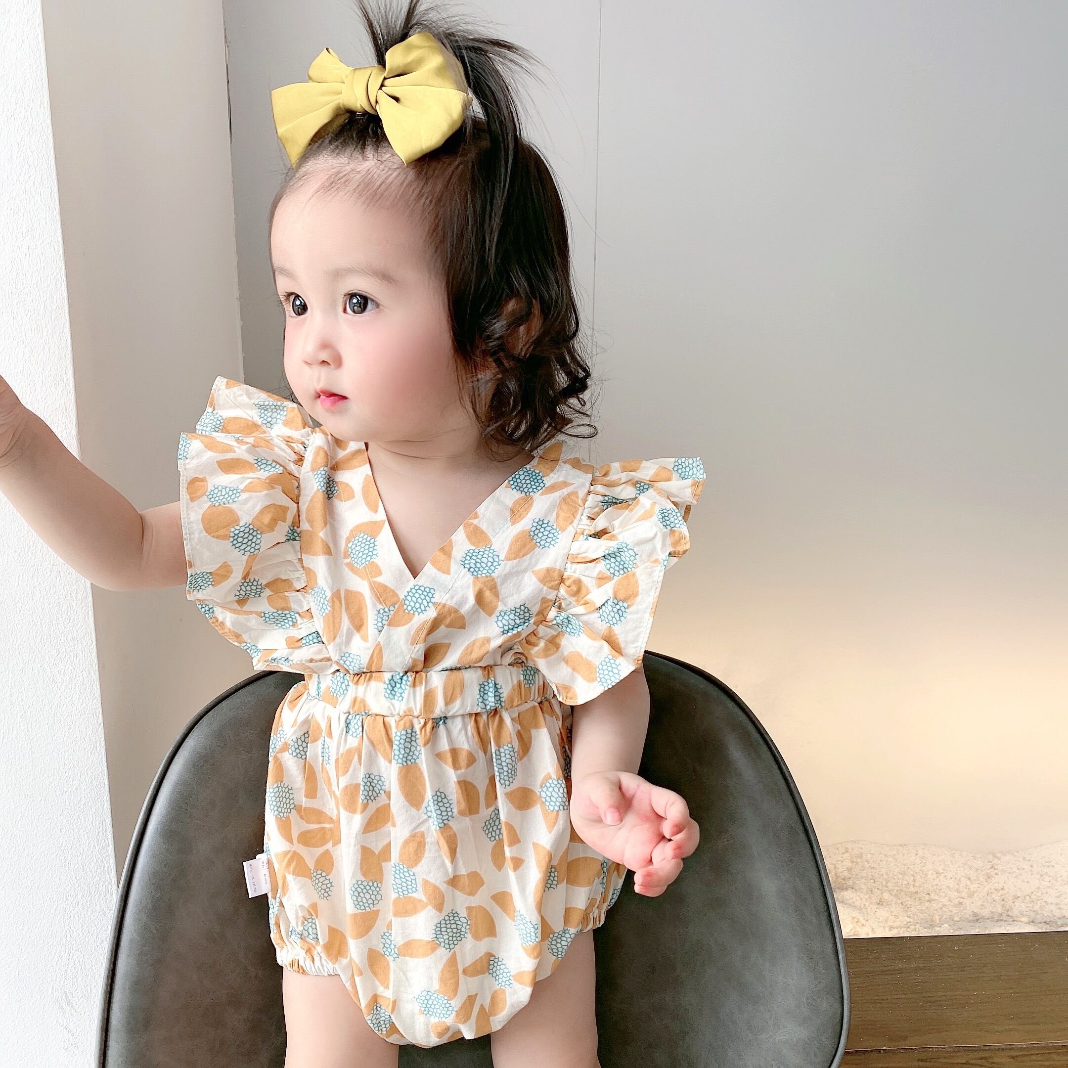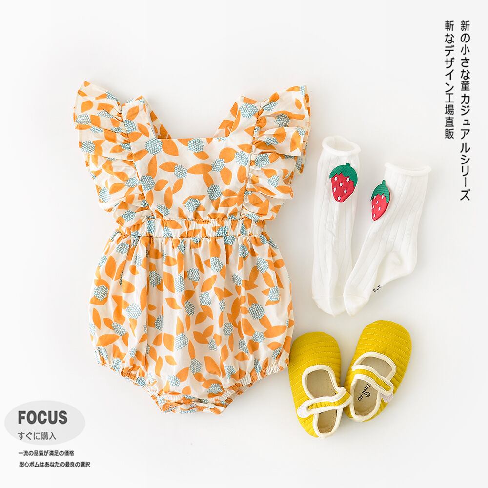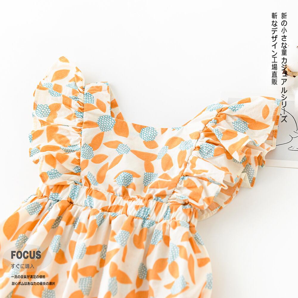 サマードレス フローラルワンピーストライアングルロンパース オールインワン 薄手 コットン 夏物 花柄 ピュア 4/24 mi098278690593 | Sagittarius By Constellation -KIDS&BABY-