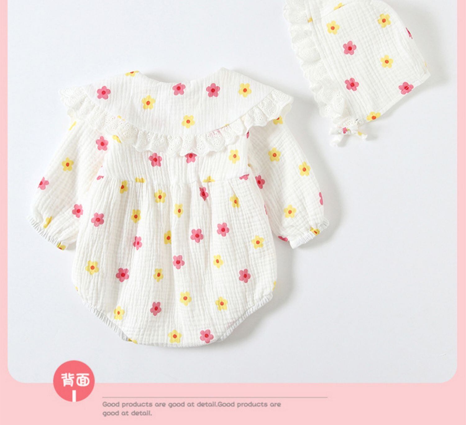 ワンピーススプリングオータムロングスリーブ長袖ロンパース オールインワン レッド コットン 帽子 春物 秋物 4/24 mi0939473826836 | Sagittarius By Constellation -KIDS&BABY-