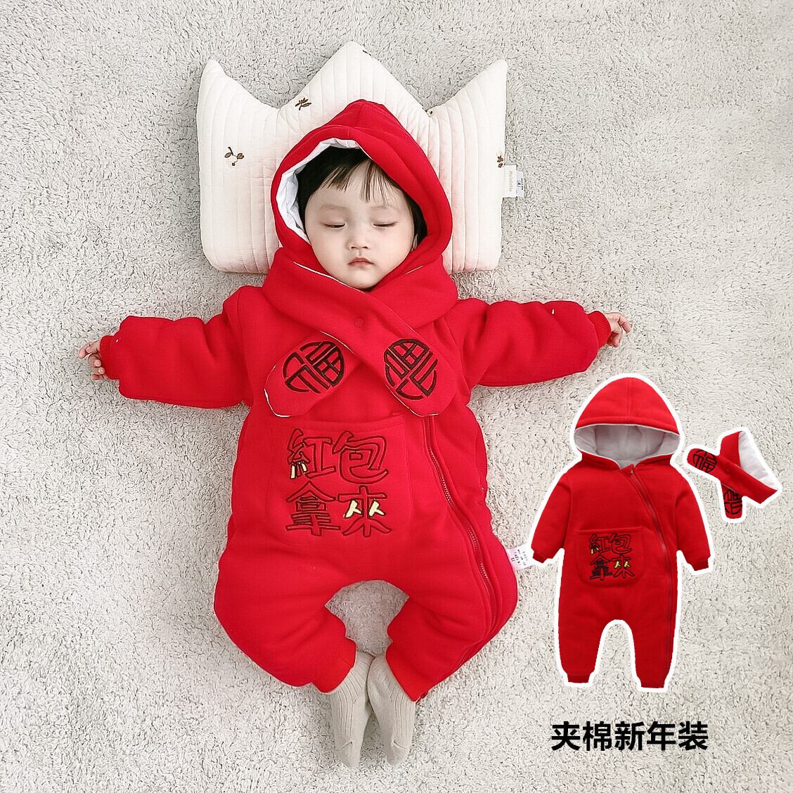 ワンピースウィンタースタイルレッドジャケット ロンパース オールインワン コットン 冬物 4/24 mi0926212708984 | Sagittarius By Constellation -KIDS&BABY-