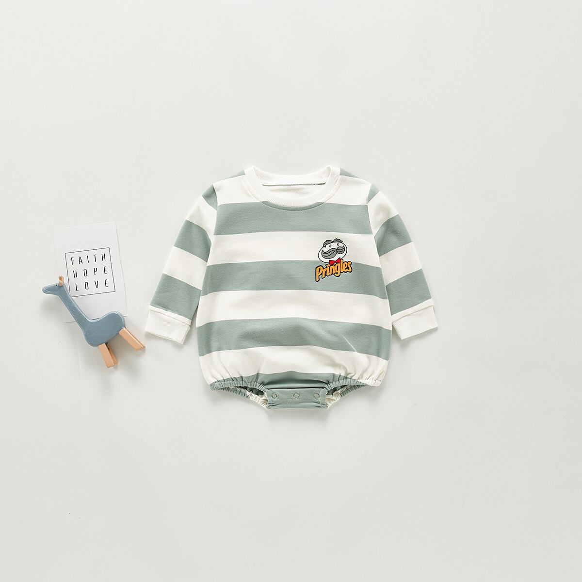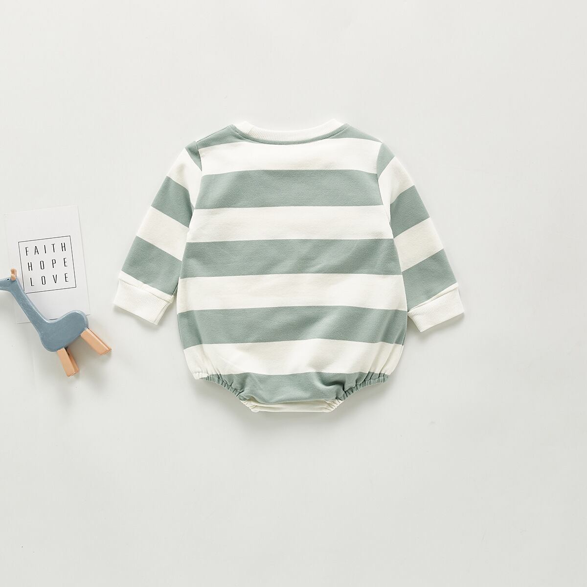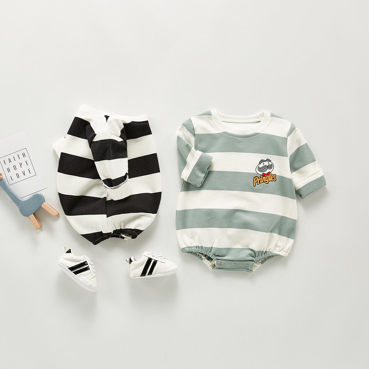 色:黒と白のストライプロンパー,緑と白のストライプのロンパース