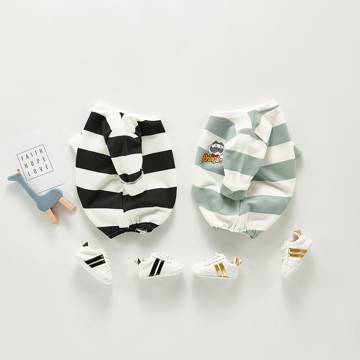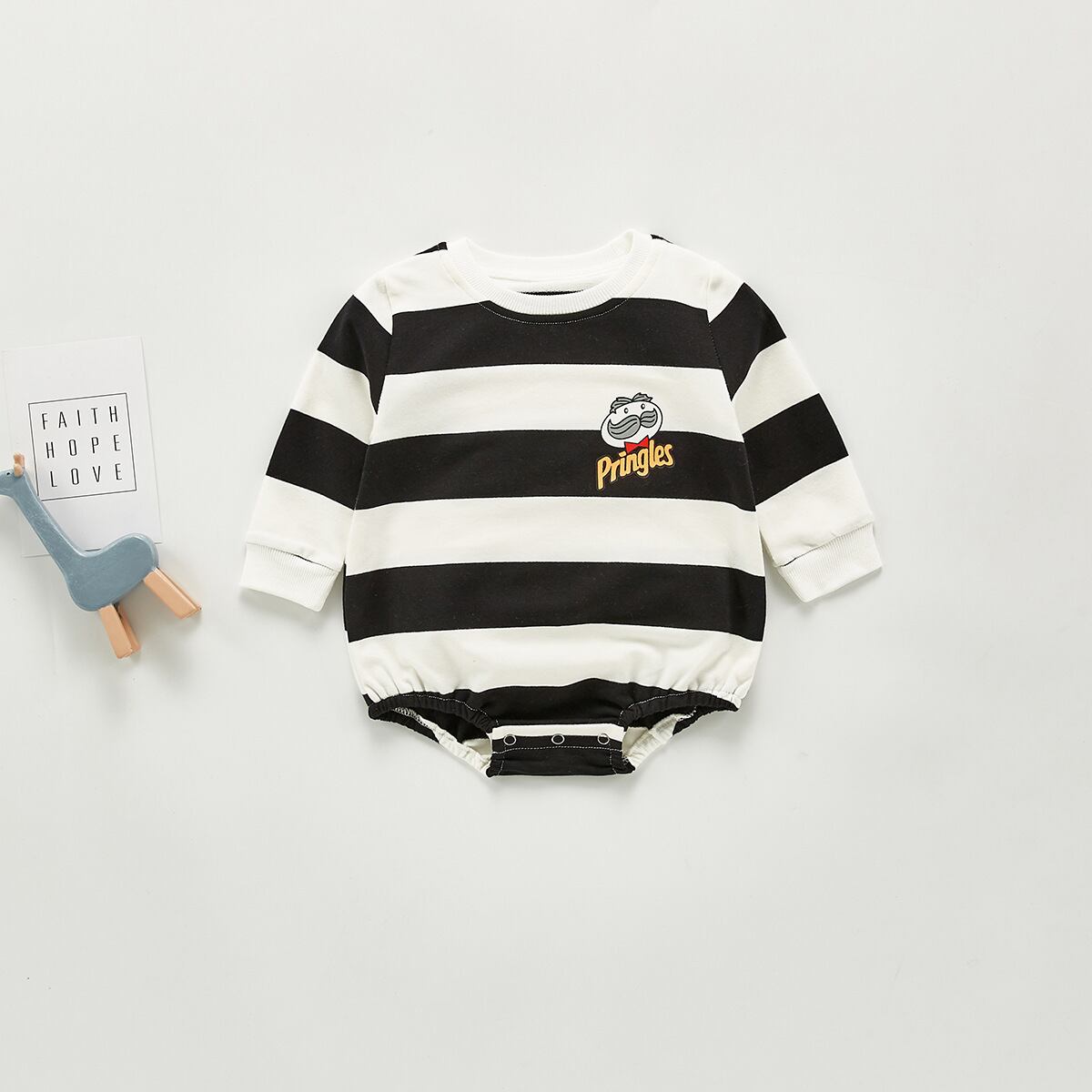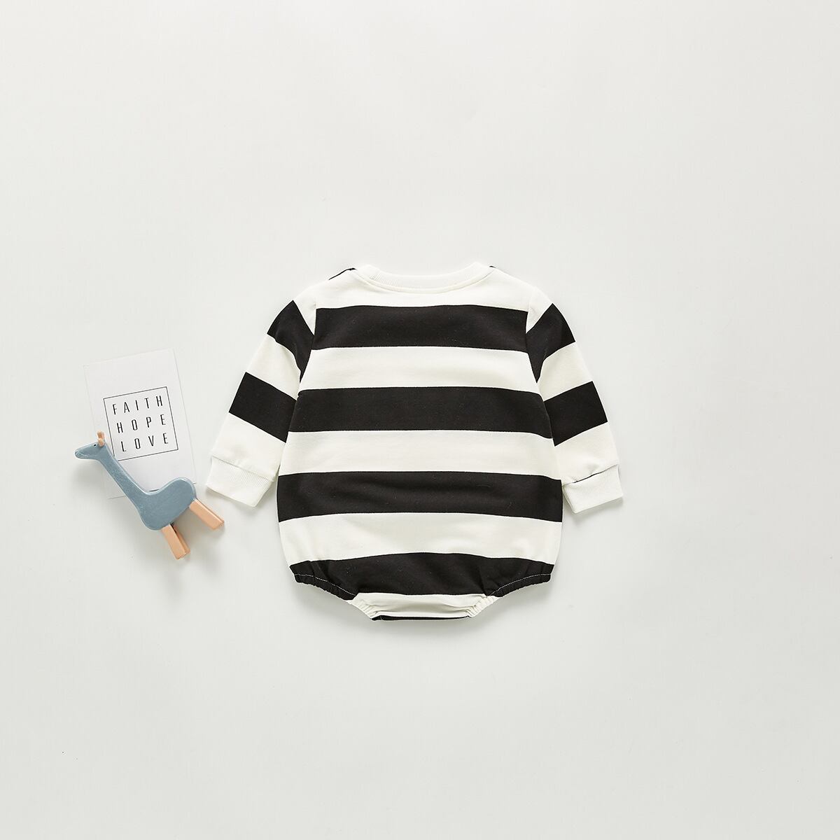 色:黒と白のストライプロンパー,緑と白のストライプのロンパース