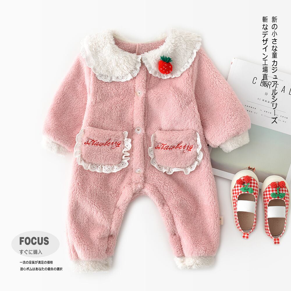 ワンピースオータムウィンターフランネルカラーロンパース オールインワン スプリングコーラル 春物 秋物 冬物 4/24 mi0941006280545 | Sagittarius By Constellation -KIDS&BABY-