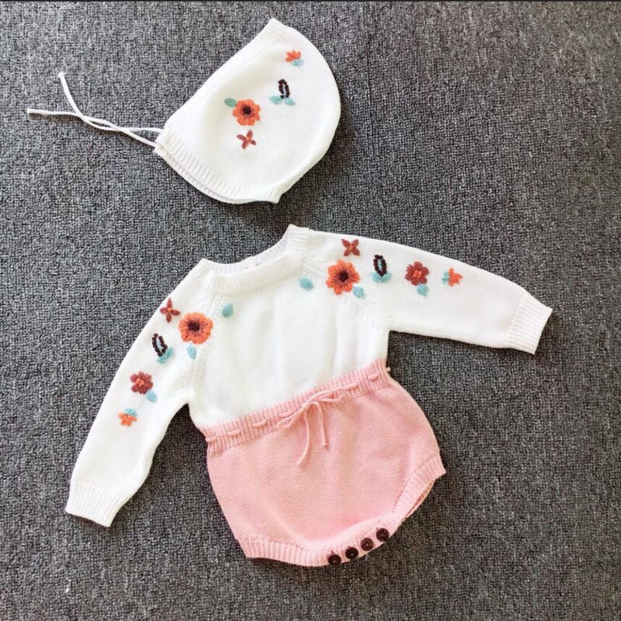 オータムウィンターニットロンパース オールインワン ワンピース レッド コットン 刺繍 秋物 冬物 4/24 mi0971857192612