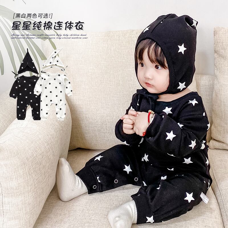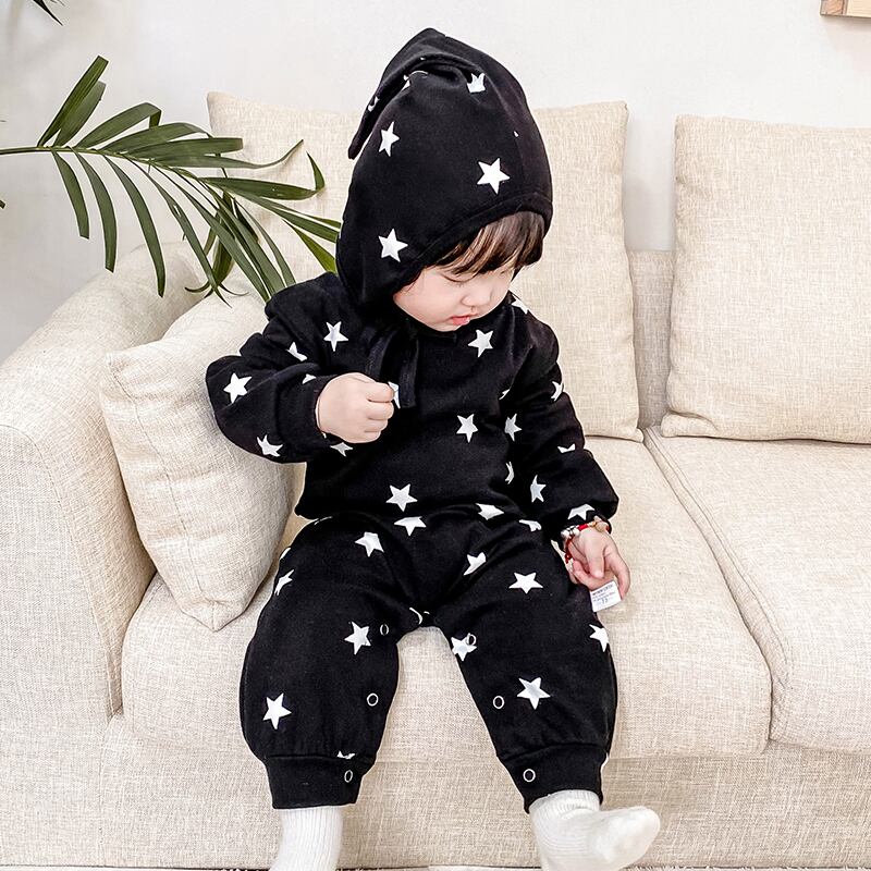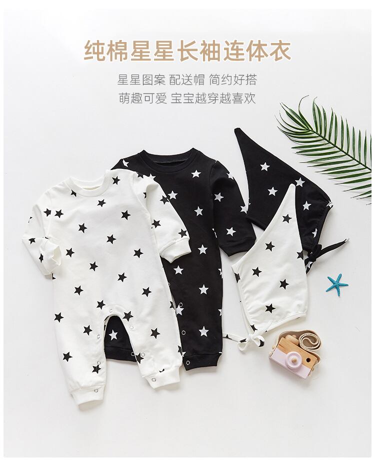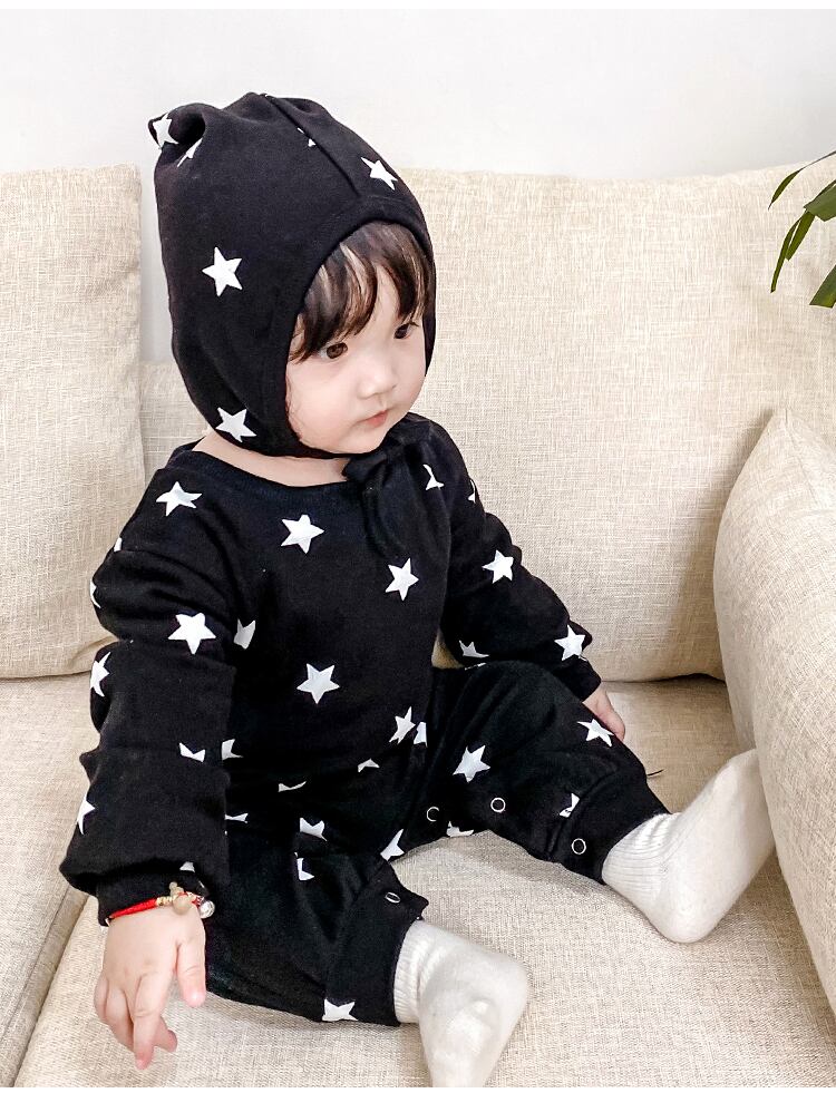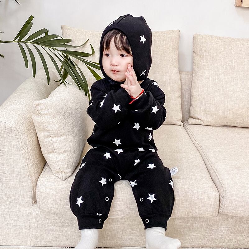 スプリングオータムワンピースプリント柄ロンパース オールインワン ロング コットン 春物 秋物 4/24 mi0948204761148 | Sagittarius By Constellation -KIDS&BABY-
