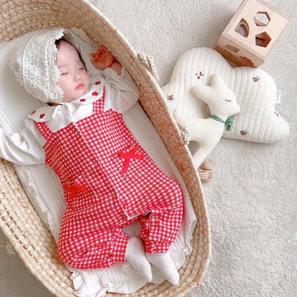 スプリングオータムワンピースロンパース オールインワン ツーピース レッド コットン 春物 秋物 ピュア 4/24 mi0983158722804 | Sagittarius By Constellation -KIDS&BABY-