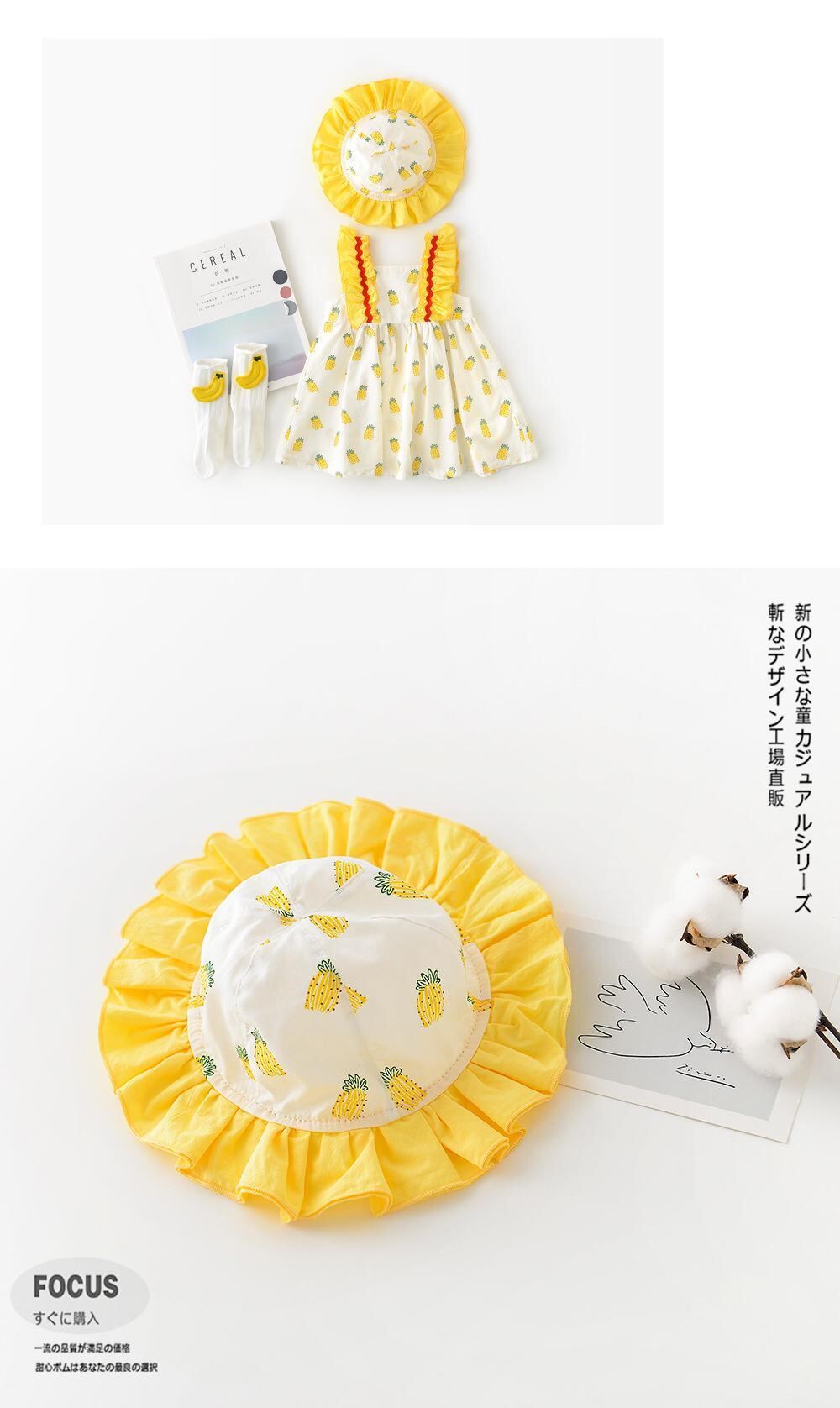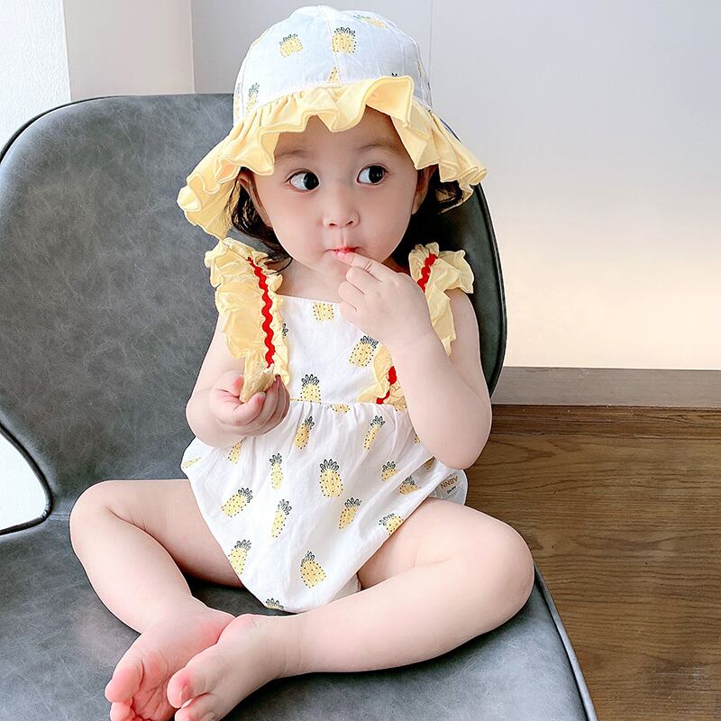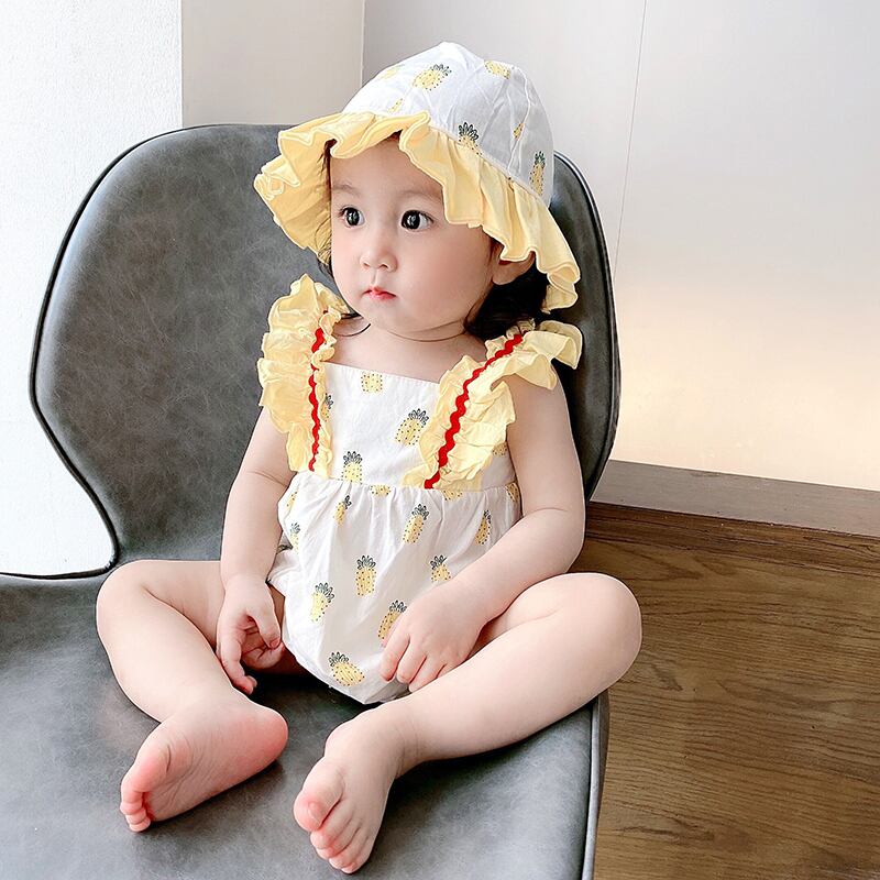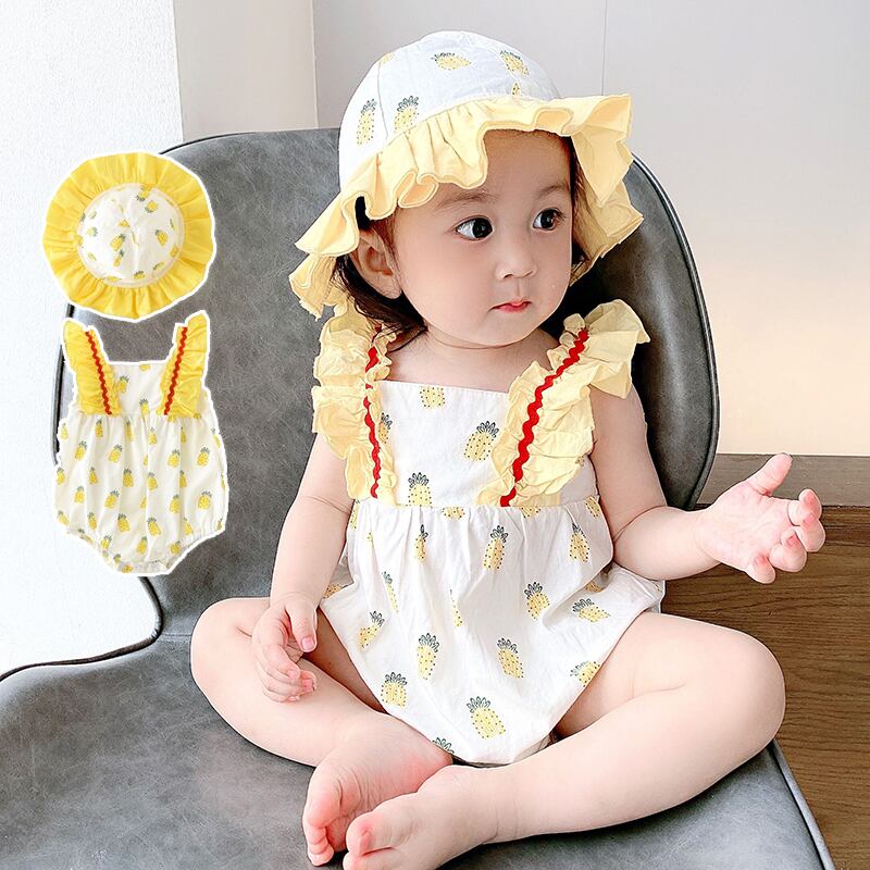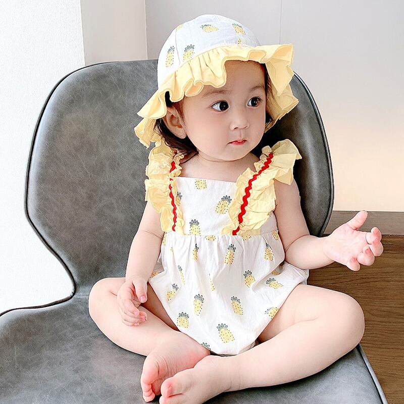 サマーワンピースロンパース オールインワン ドレス コットン 帽子 夏物 ピュア 4/24 mi0980791915224 | Sagittarius By Constellation -KIDS&BABY-