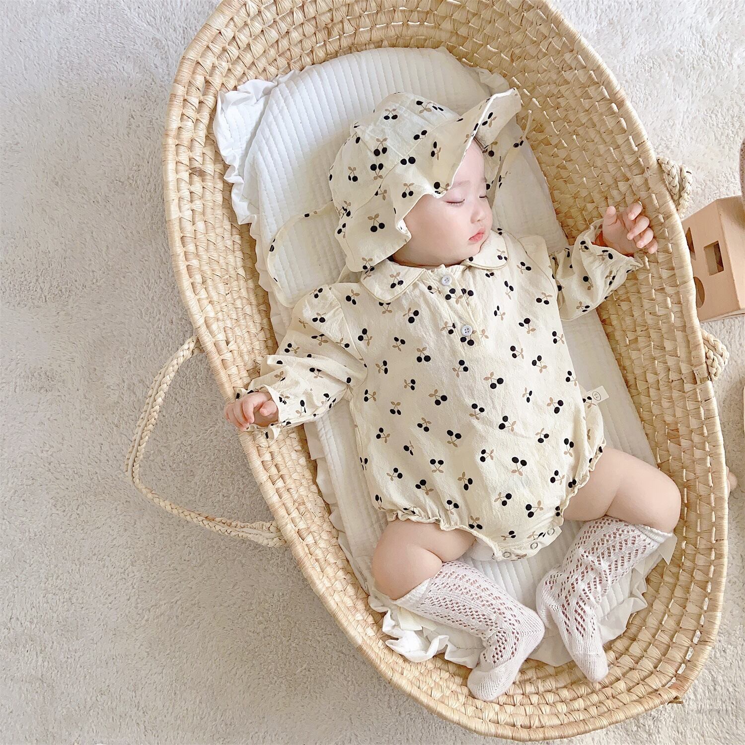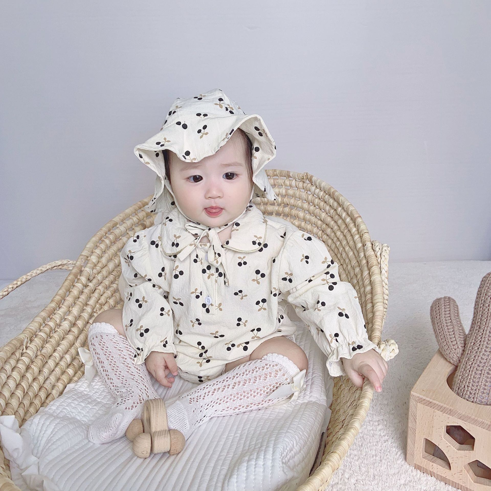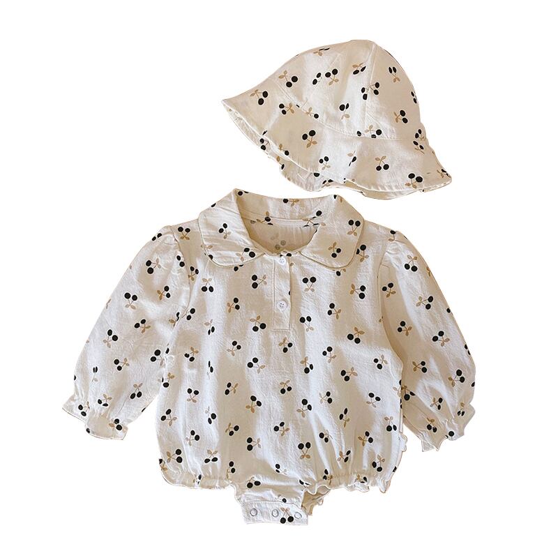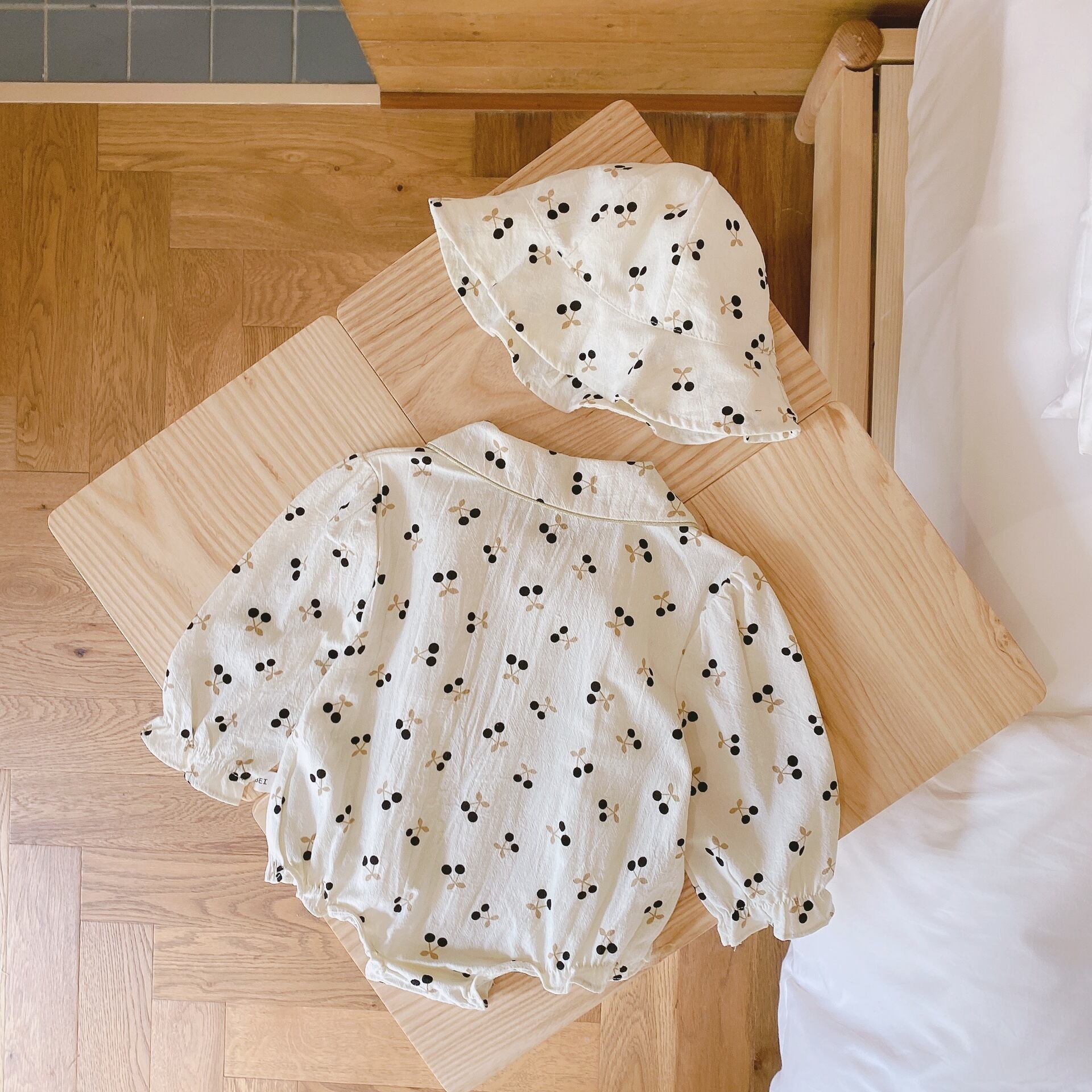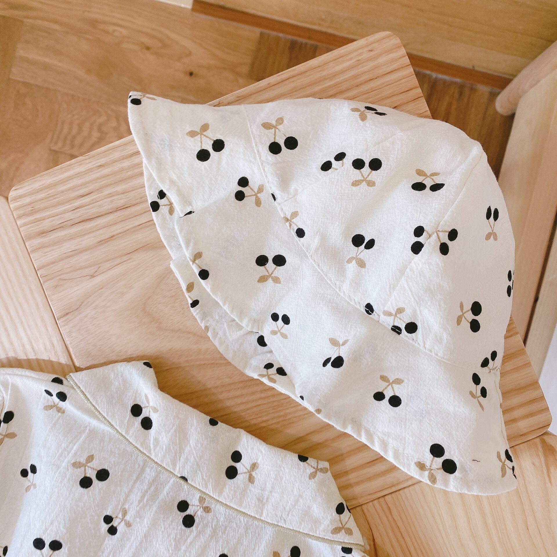 色:フローラルチェリーロンパース+ハット長袖,フローラルチェリーロンパース+キャップ半袖