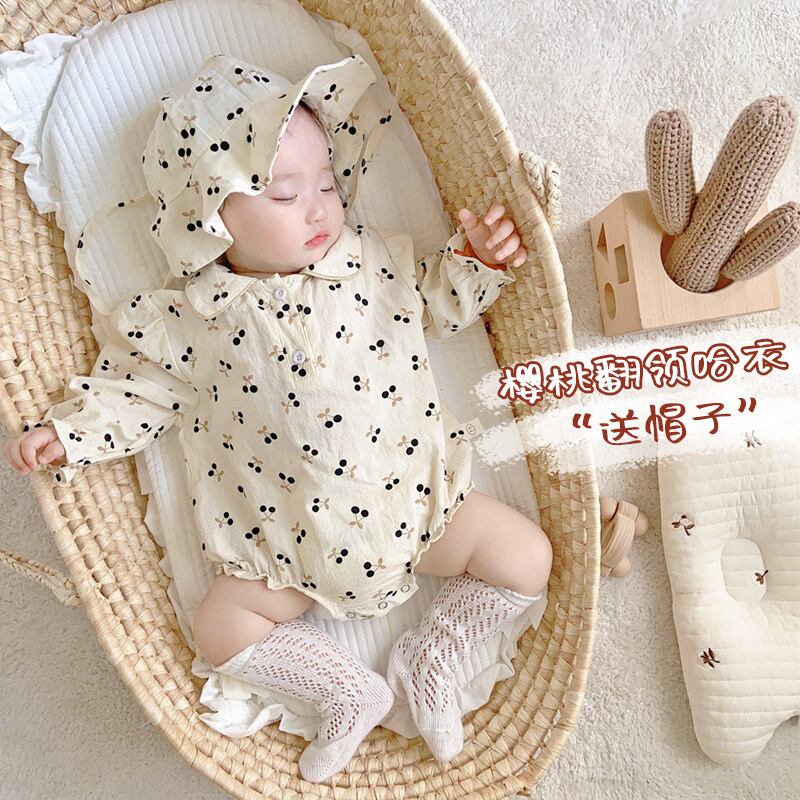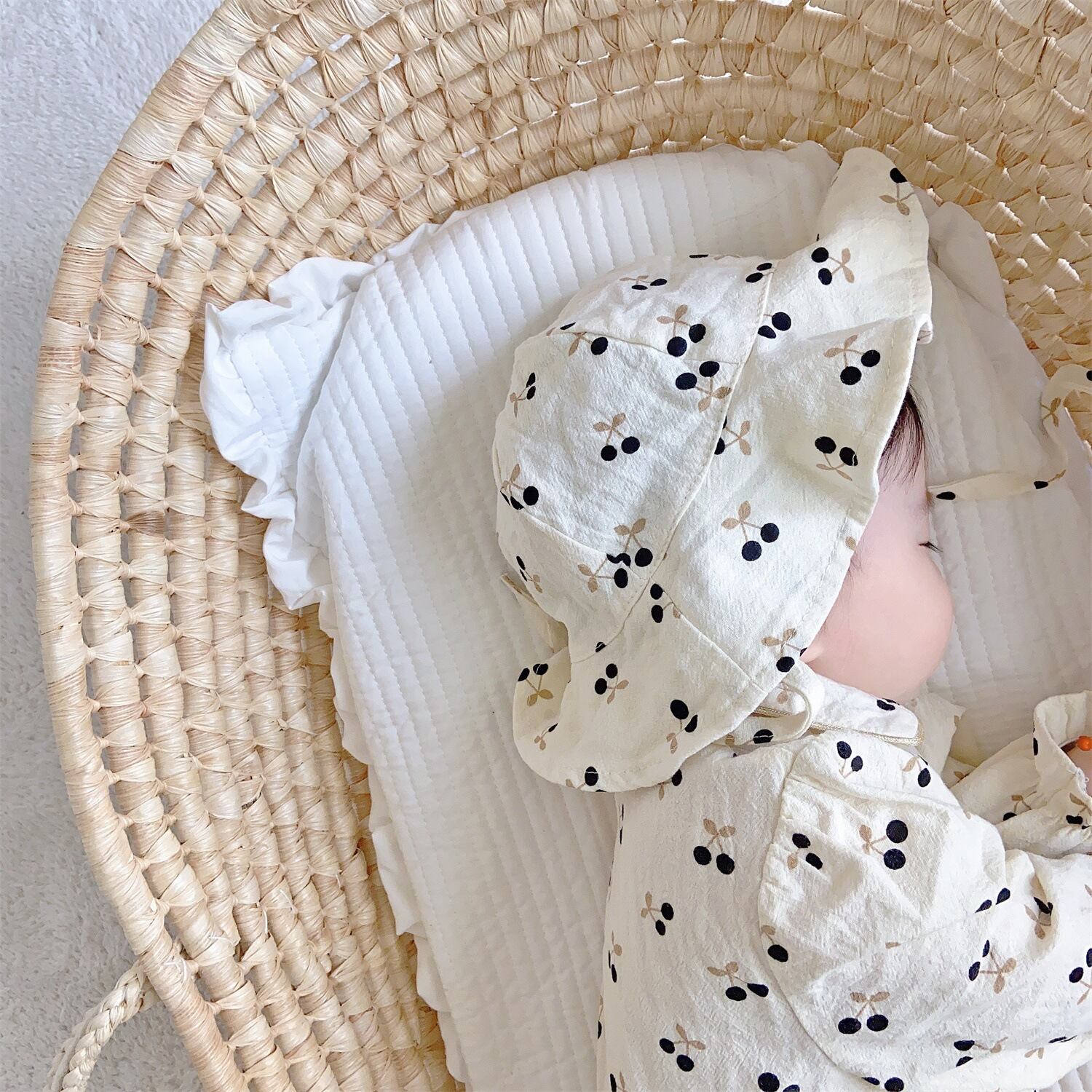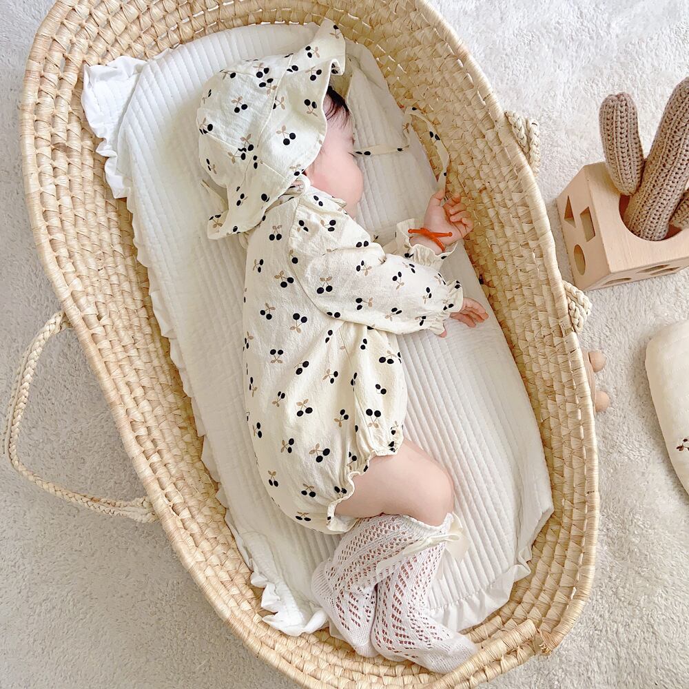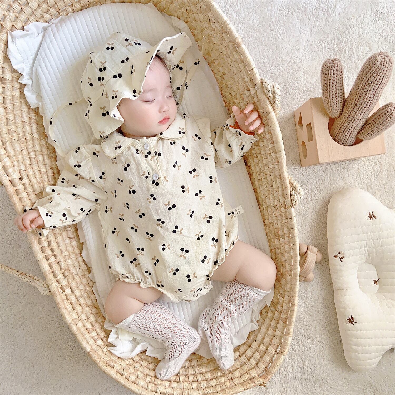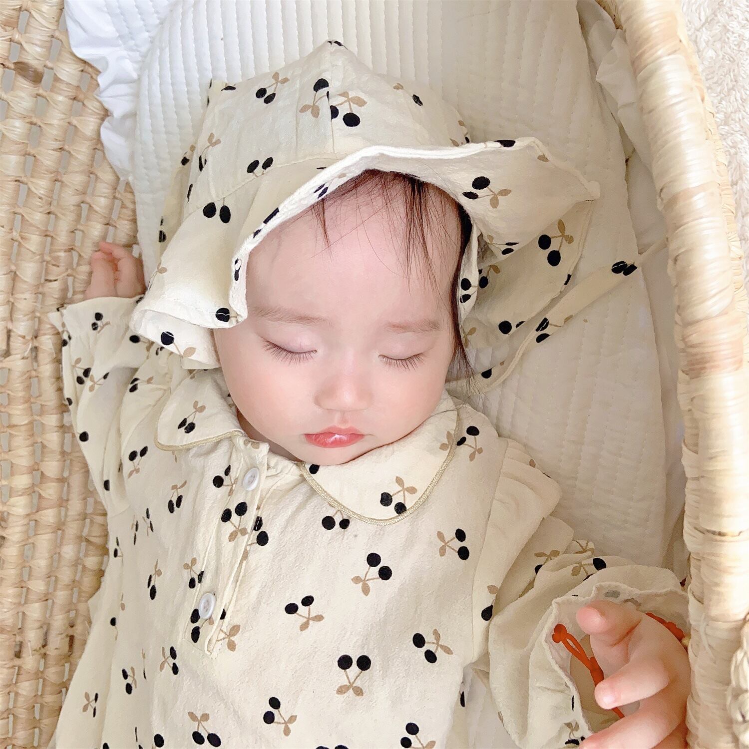 色:フローラルチェリーロンパース+ハット長袖,フローラルチェリーロンパース+キャップ半袖