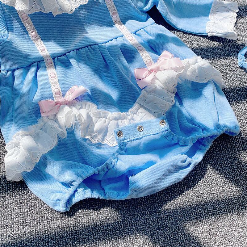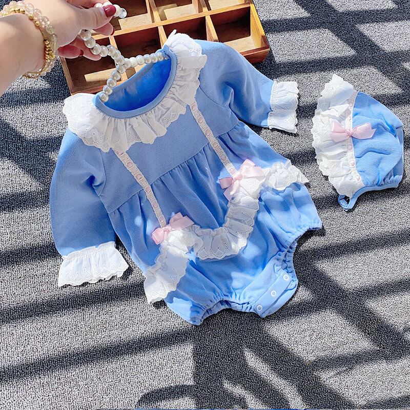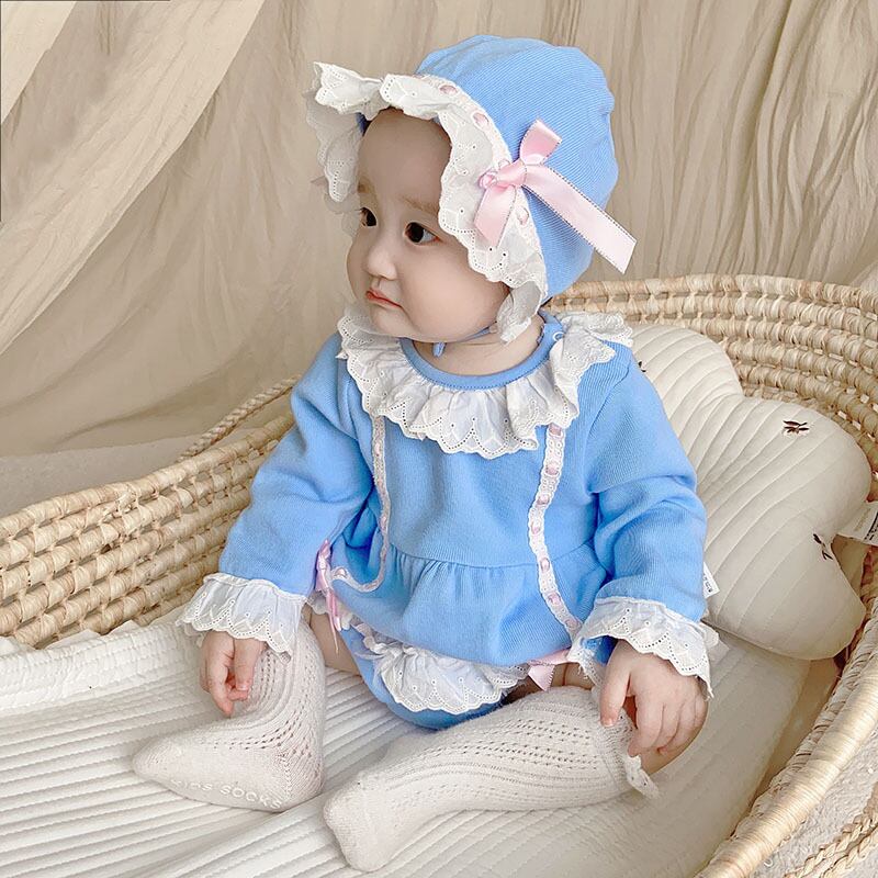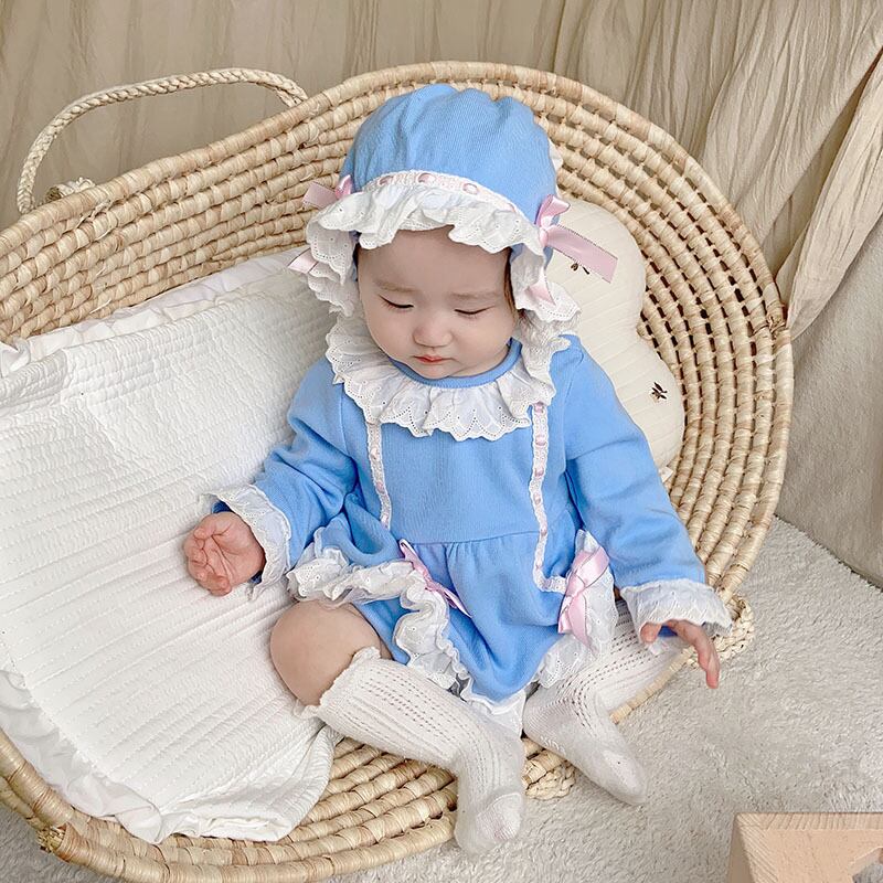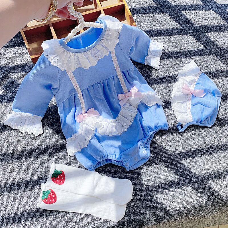 色:スカイブルーのロンパースコレクションと購入+帽子,スカイブルーロンパース+チューブソックスコレクションプラス購入+帽子