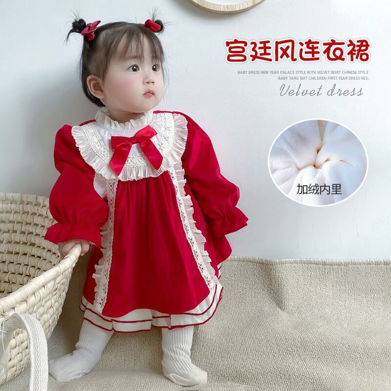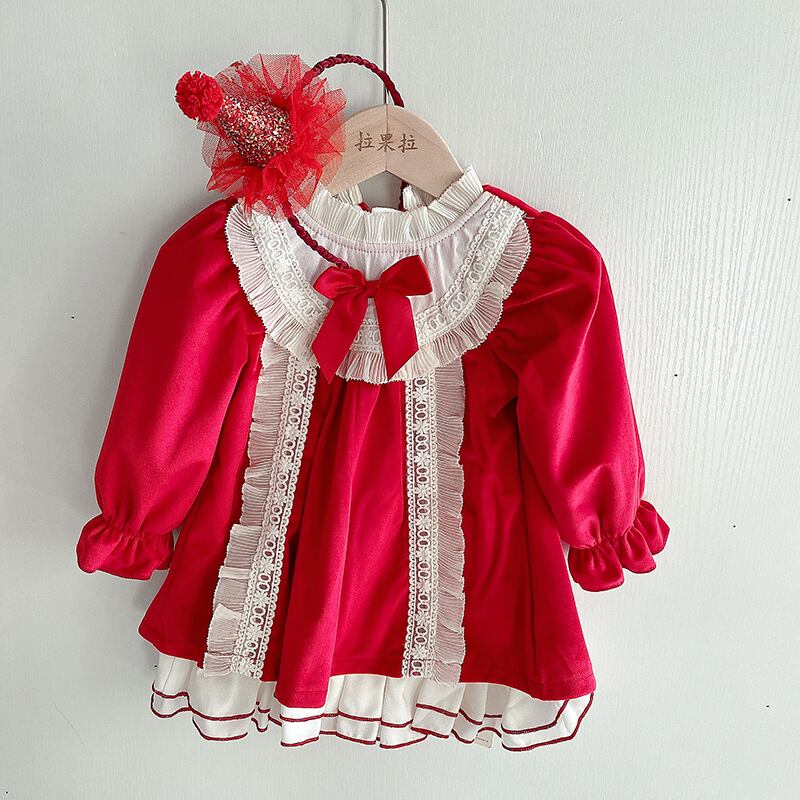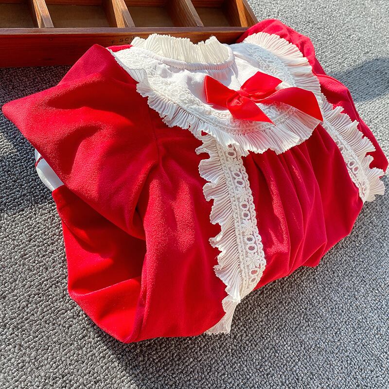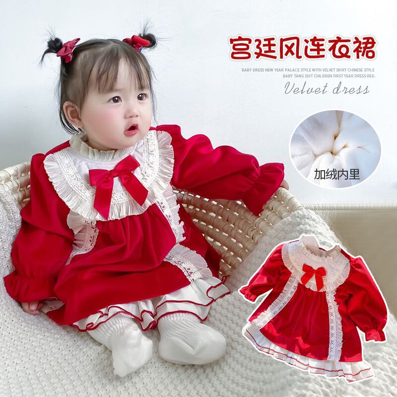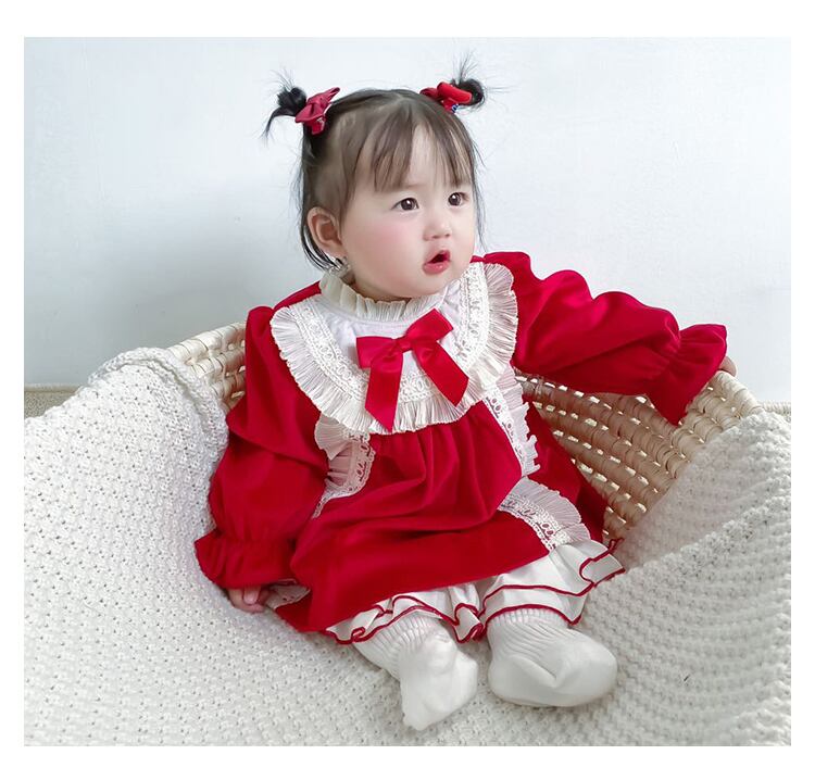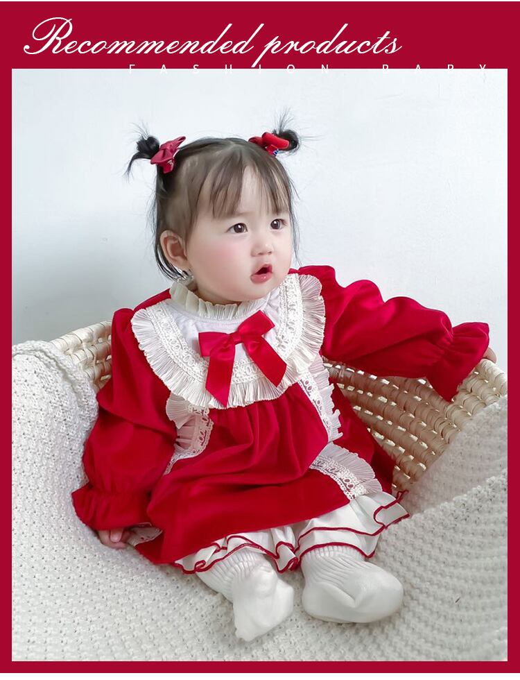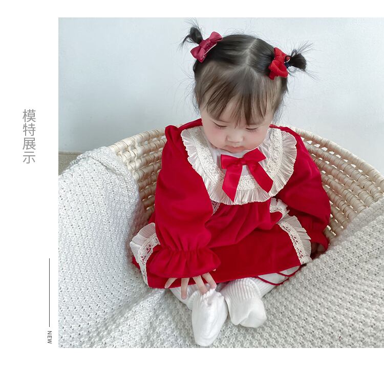 色:フリースのお祝いの赤いドレス,フリース+白いパンストのお祝いの赤いドレス,ベルベット+ヘアピンのお祝いの赤いドレス,フリース+白いパンスト+ヘアピンのお祝いの赤いドレス
