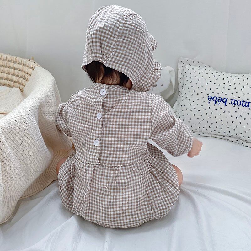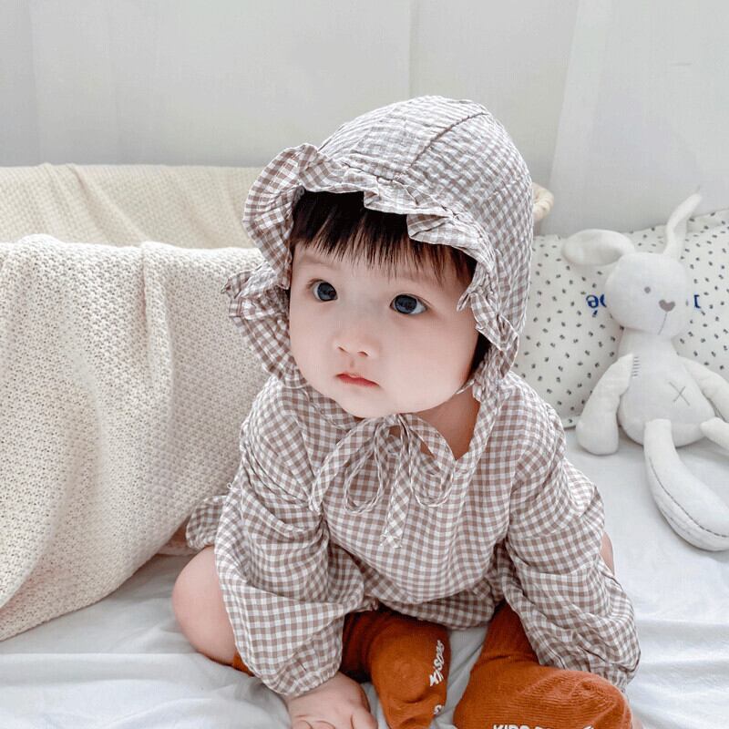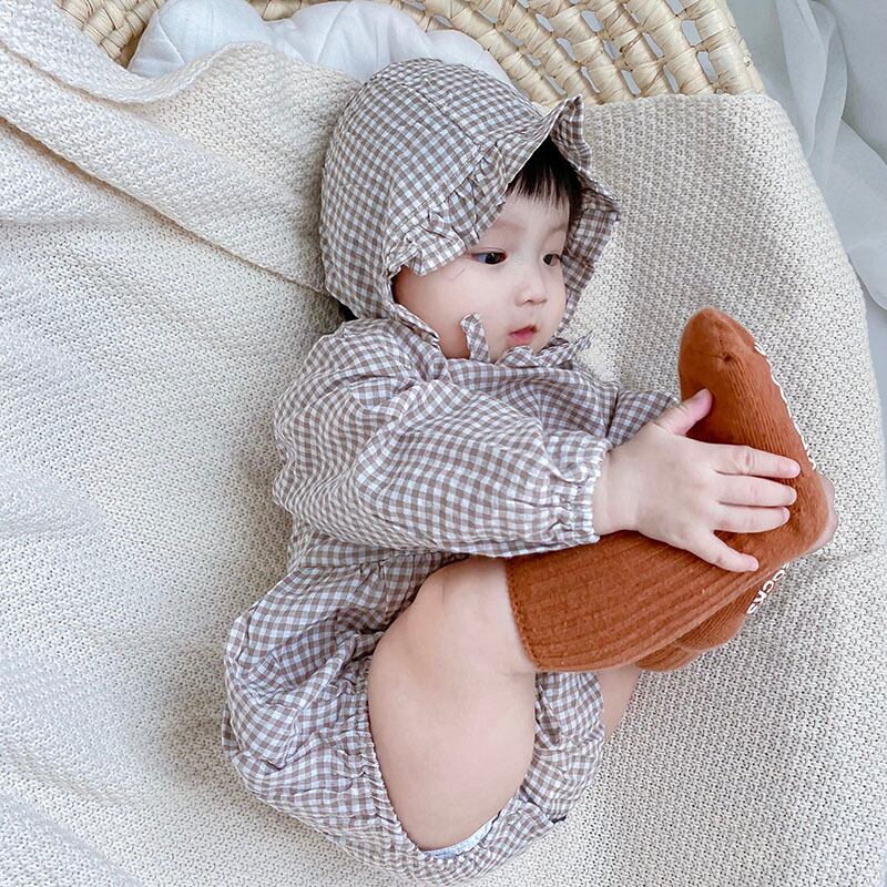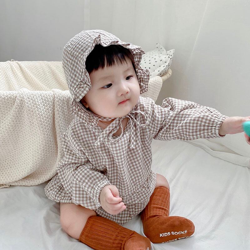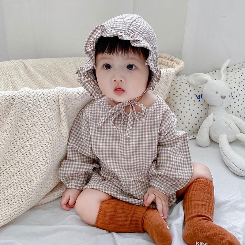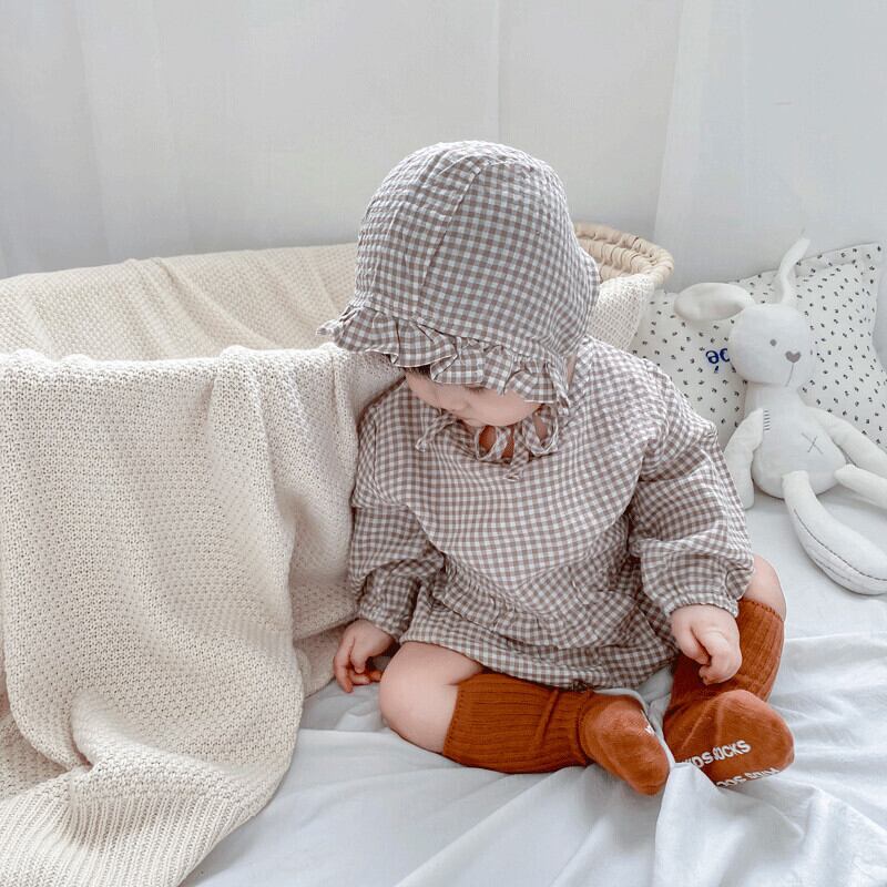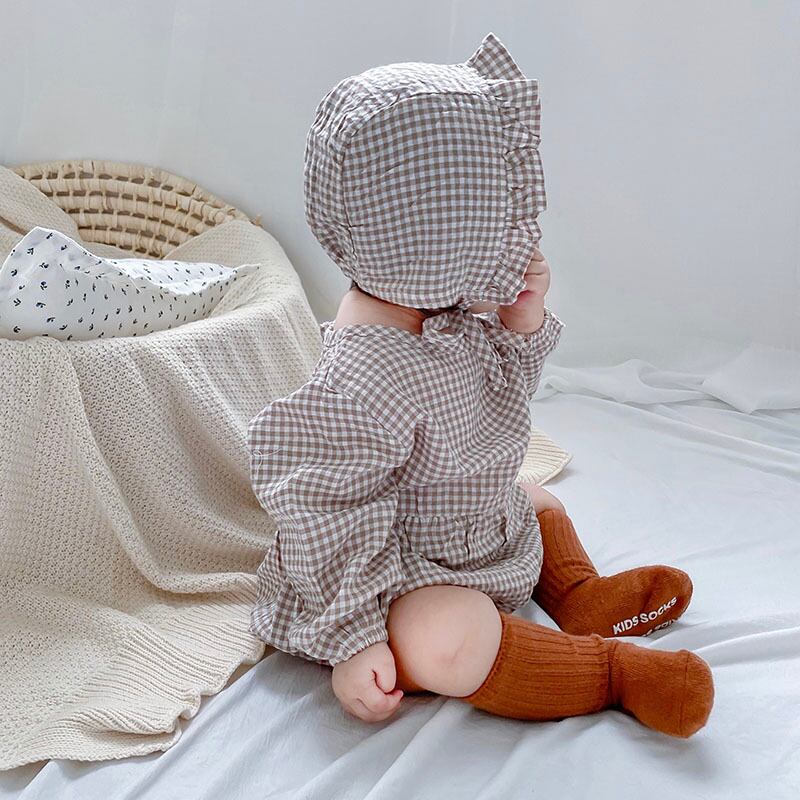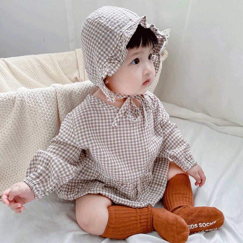 色:長袖チェック柄ロンパース+ハット,長袖チェック柄ロンパース+帽子+ストッキング