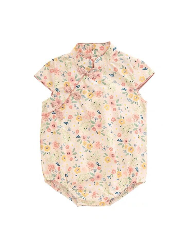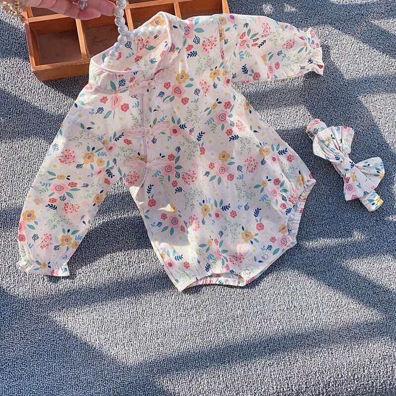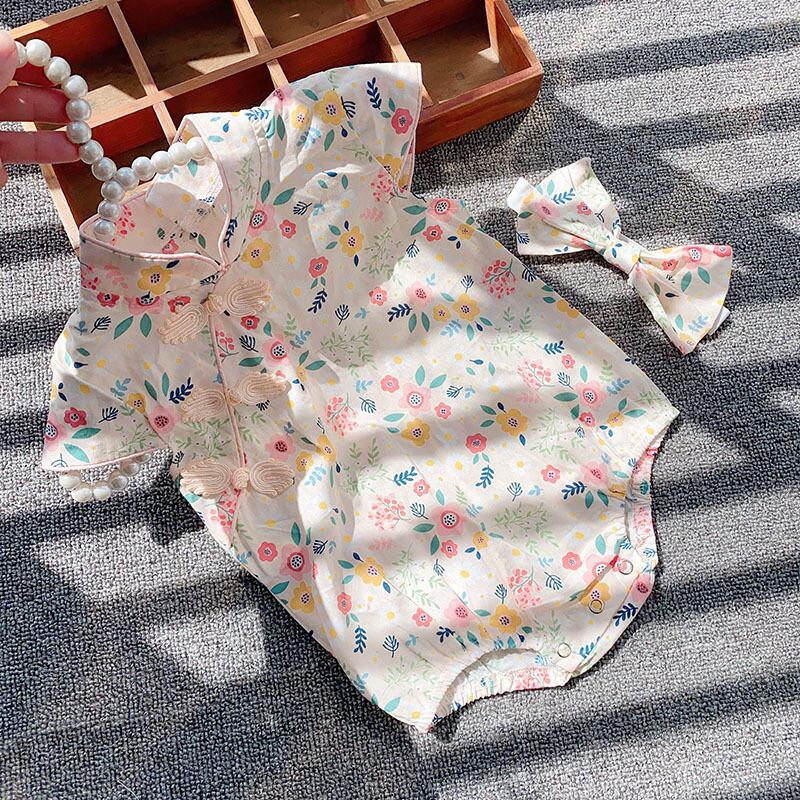 色:半袖レトロチャイナドレスロンパースコレクションとヘッドバンドを送るための購入,長袖レトロチャイナドレスロンパースコレクションとヘッドバンドを送るための購入
