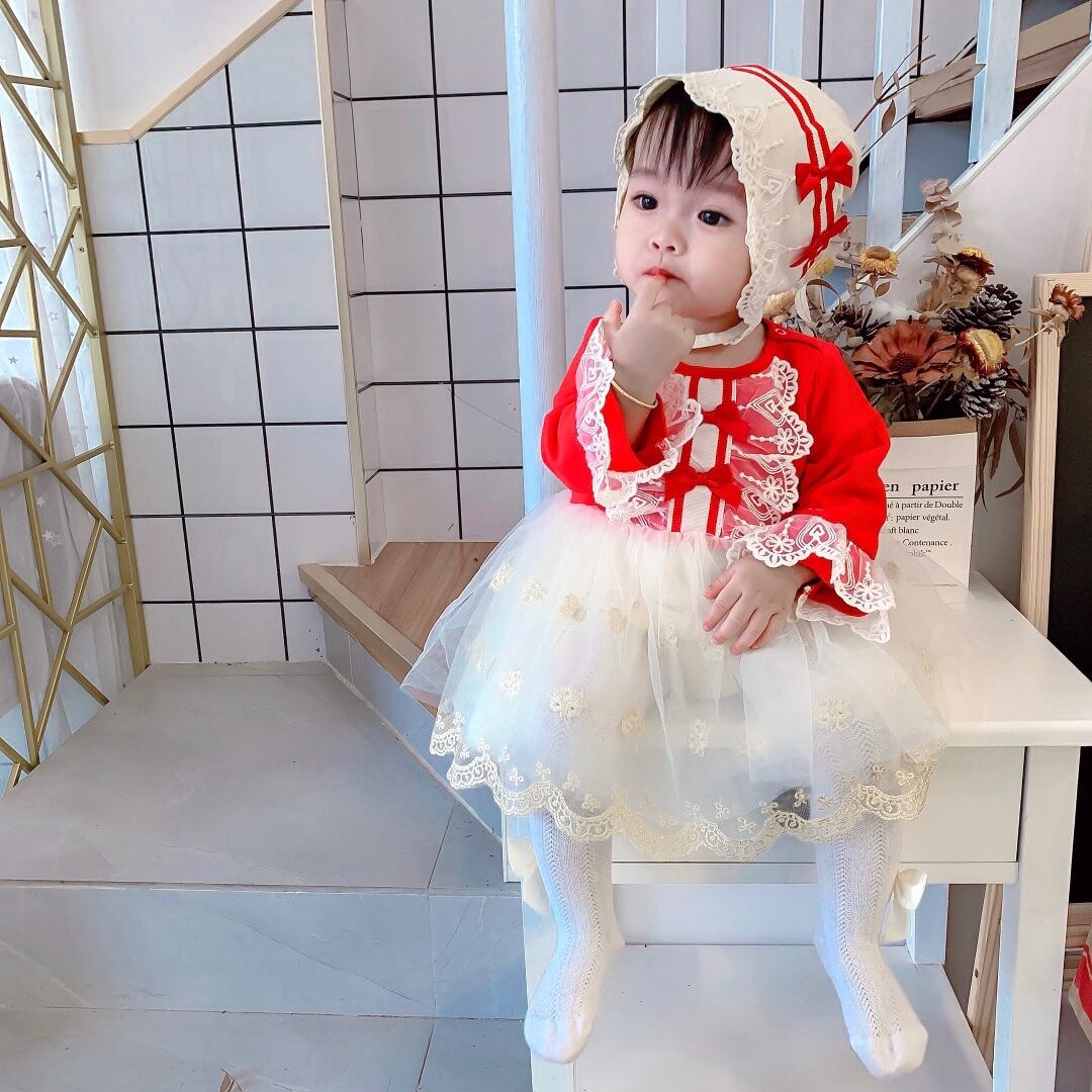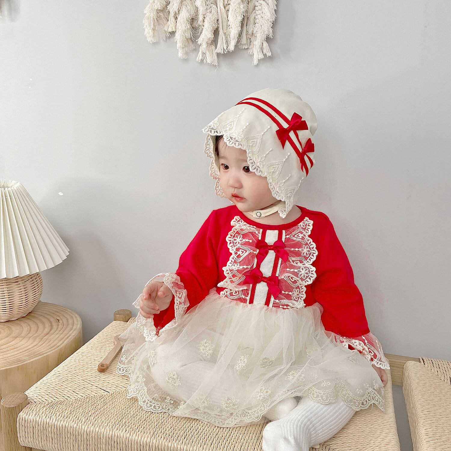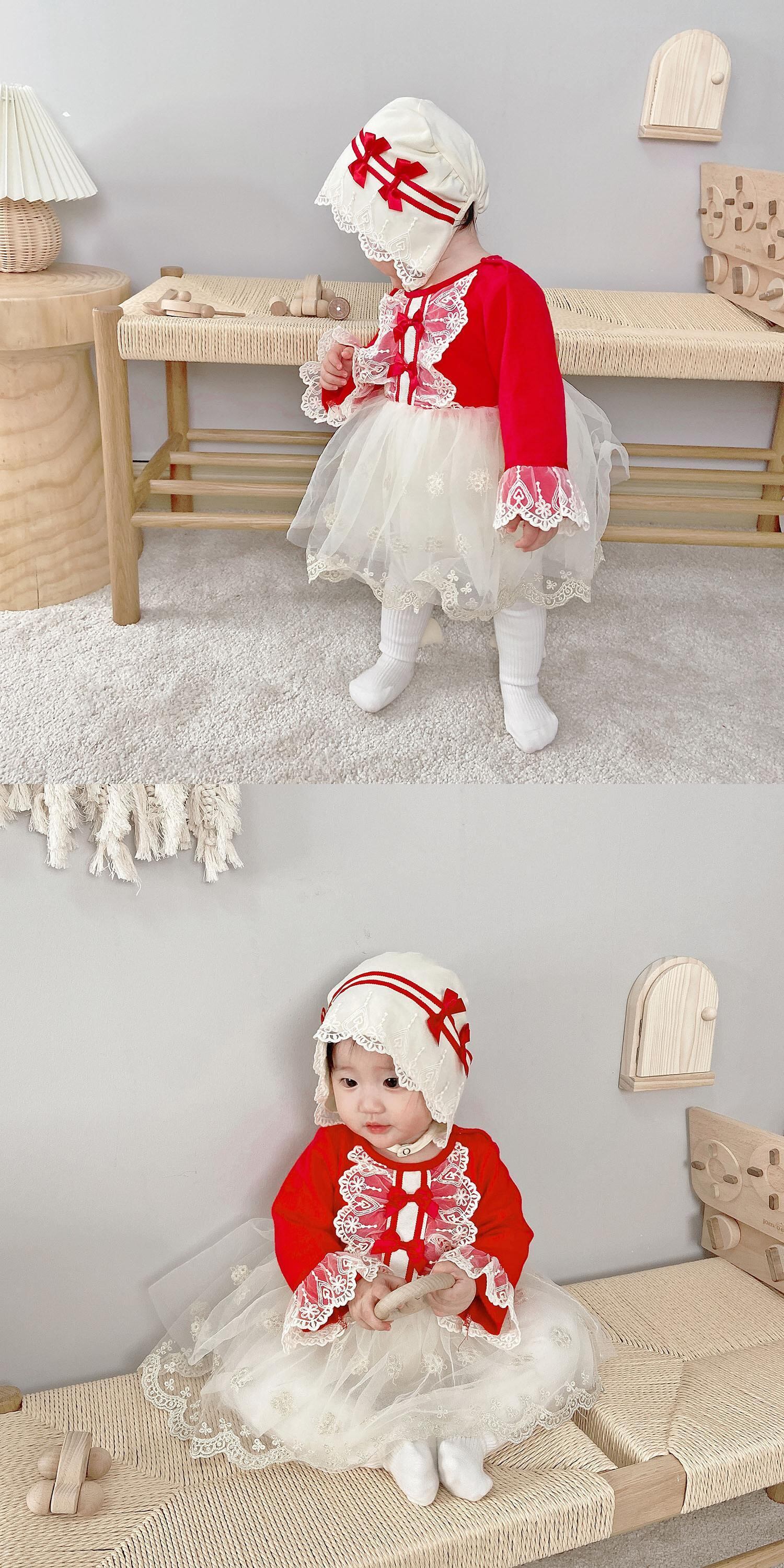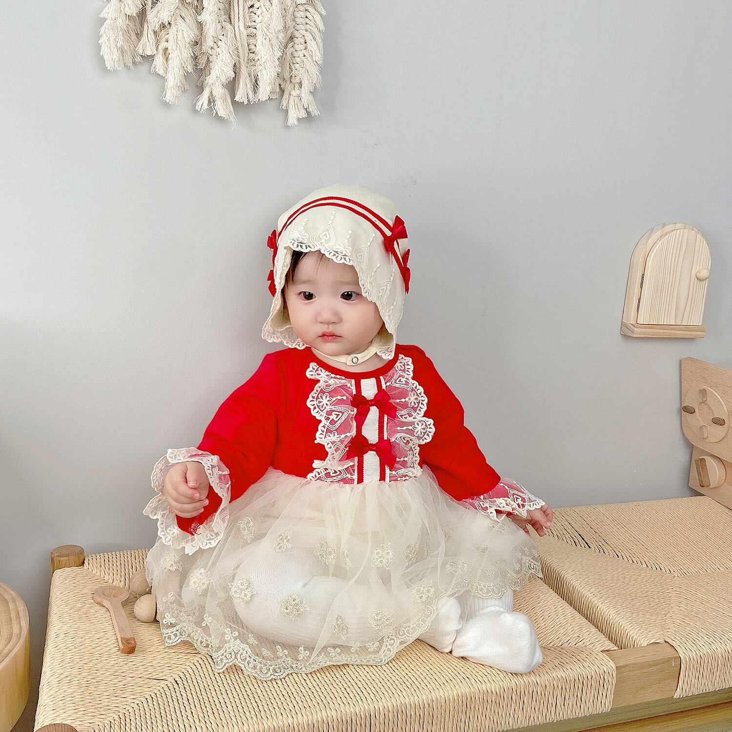 オータムスタイルロンパース オールインワン ドレス ワンピースウィンター レッド コットン レース 秋物 冬物 ピュア 4/24 mi0985030683021 | Sagittarius By Constellation -KIDS&BABY-
