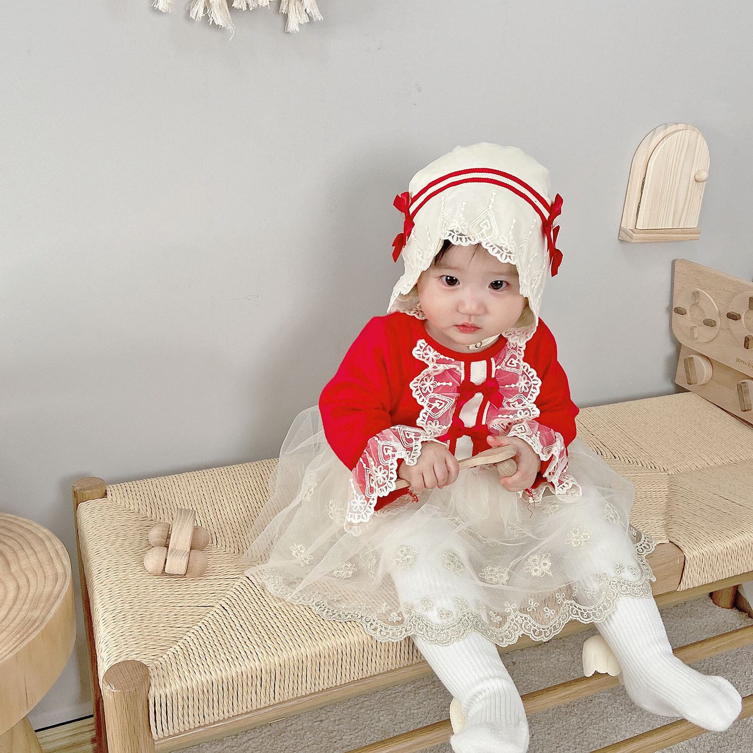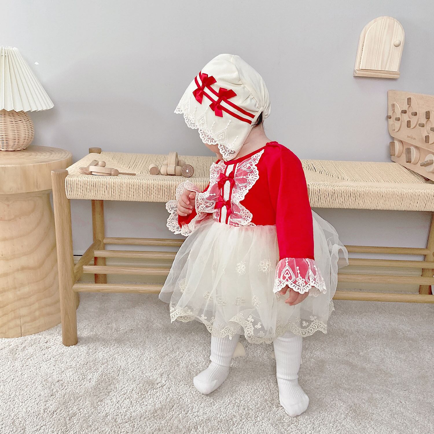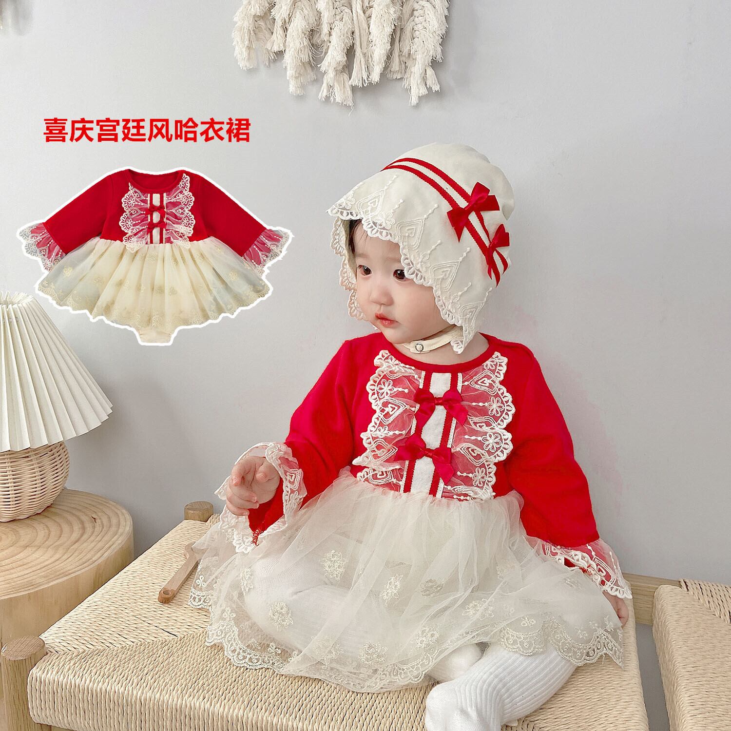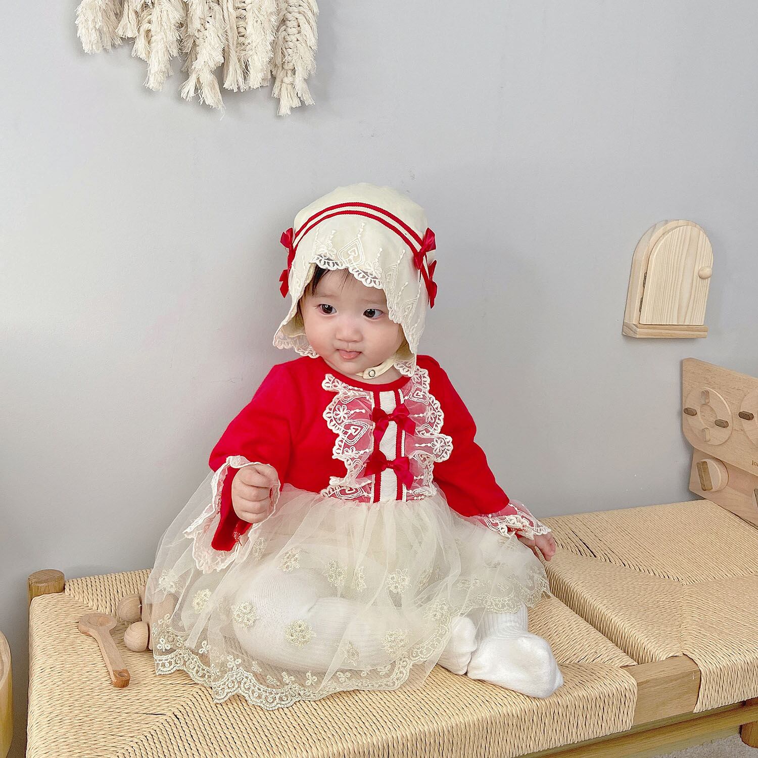 オータムスタイルロンパース オールインワン ドレス ワンピースウィンター レッド コットン レース 秋物 冬物 ピュア 4/24 mi0985030683021 | Sagittarius By Constellation -KIDS&BABY-