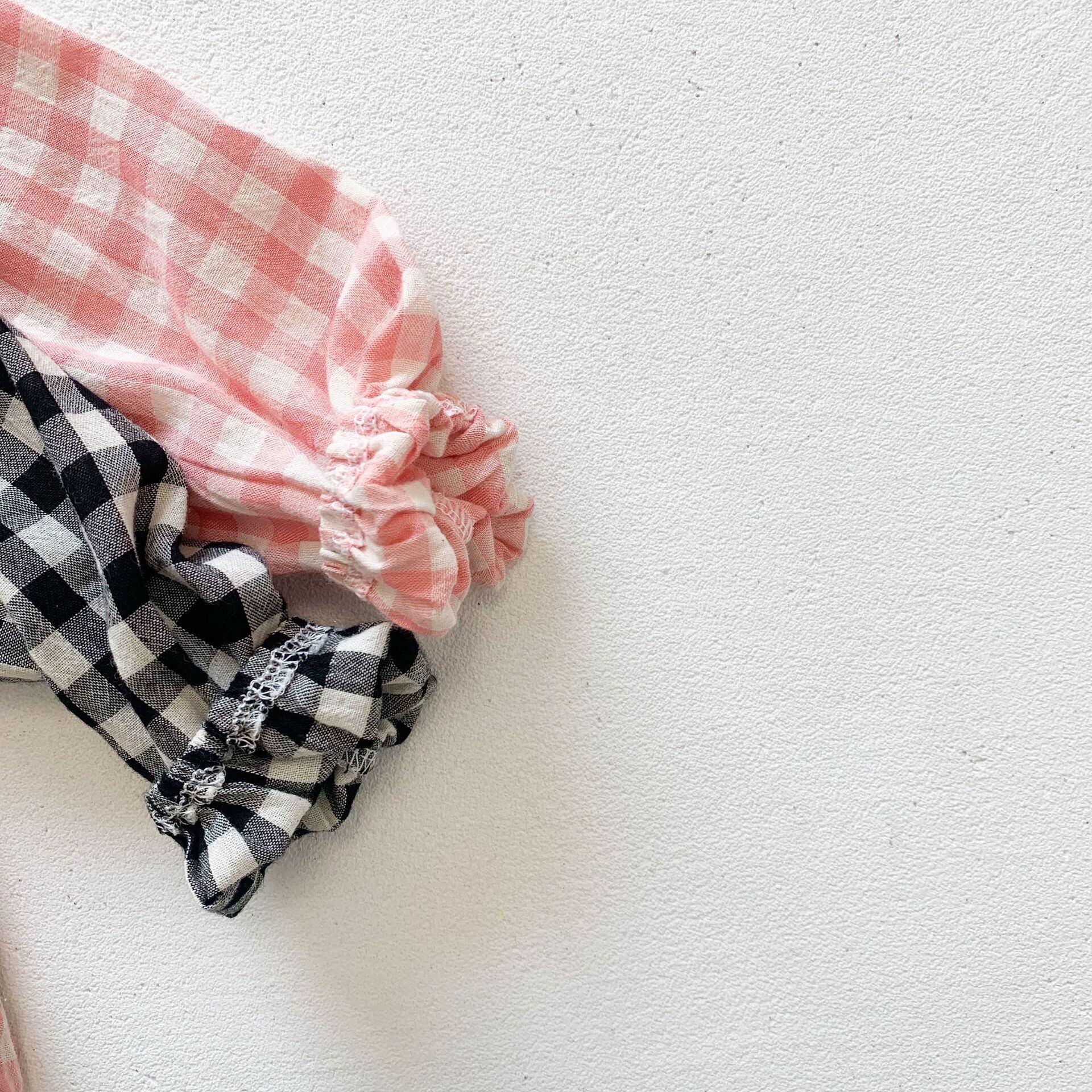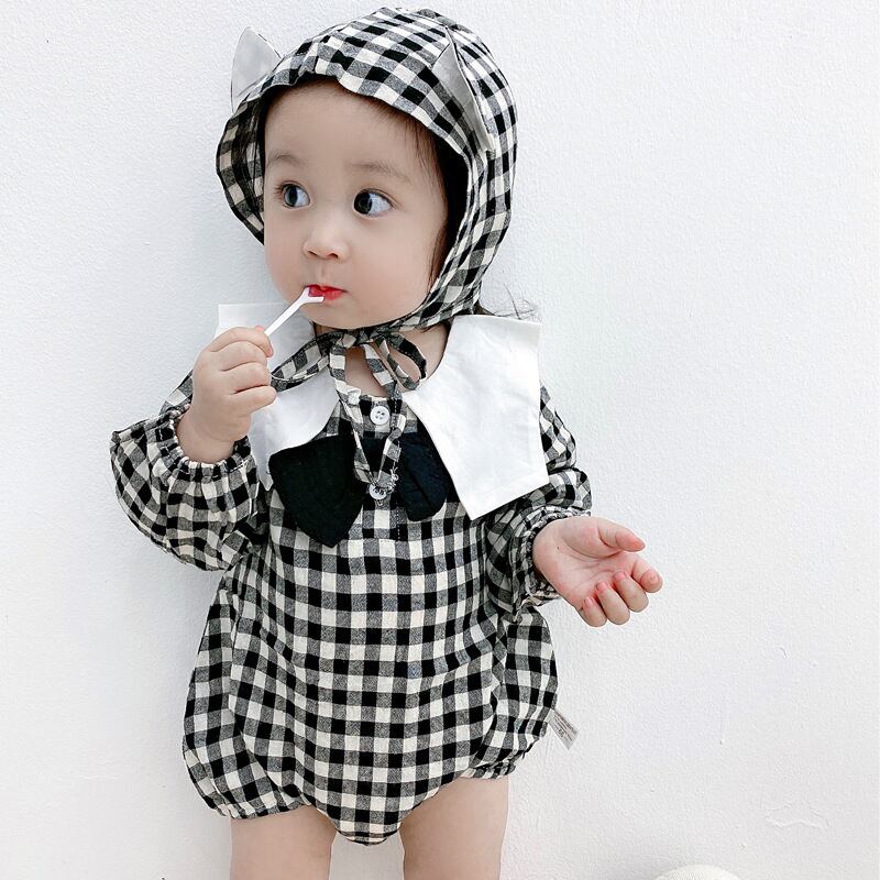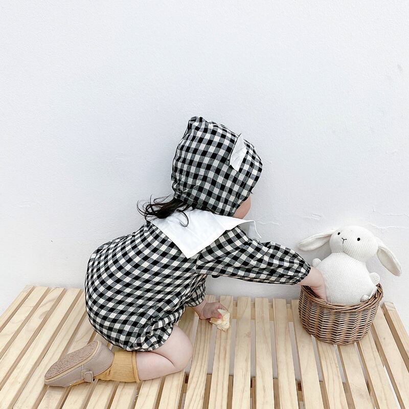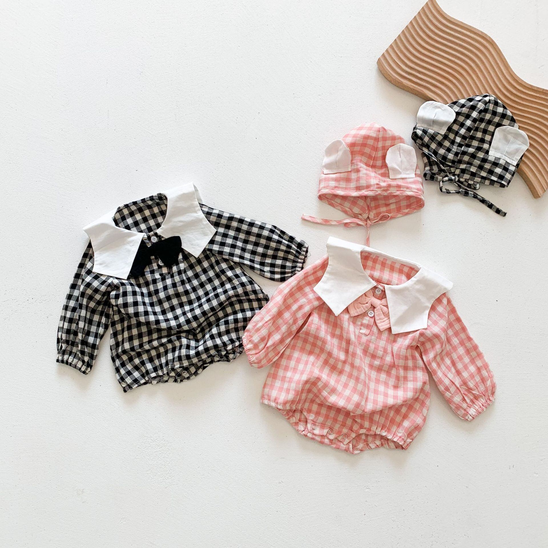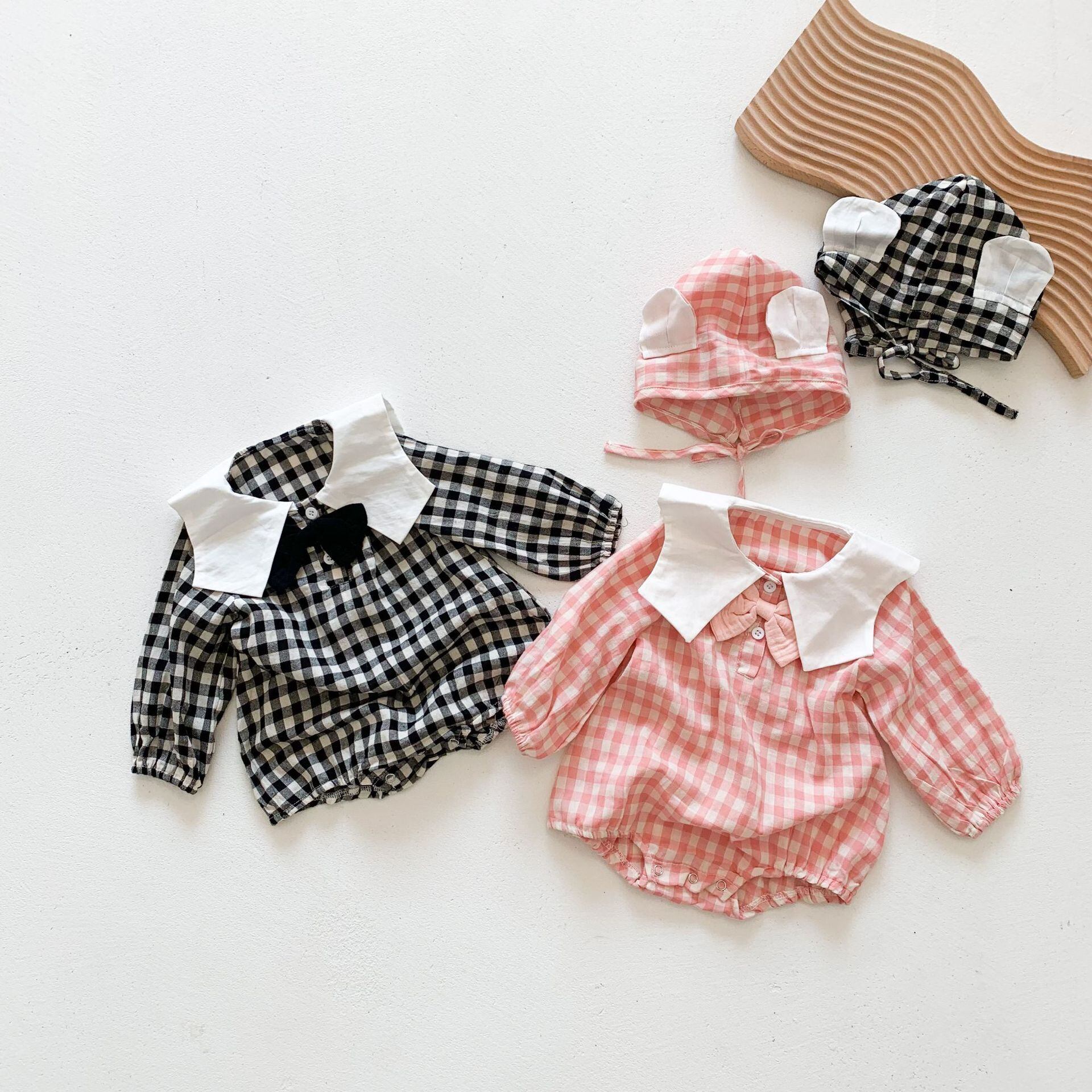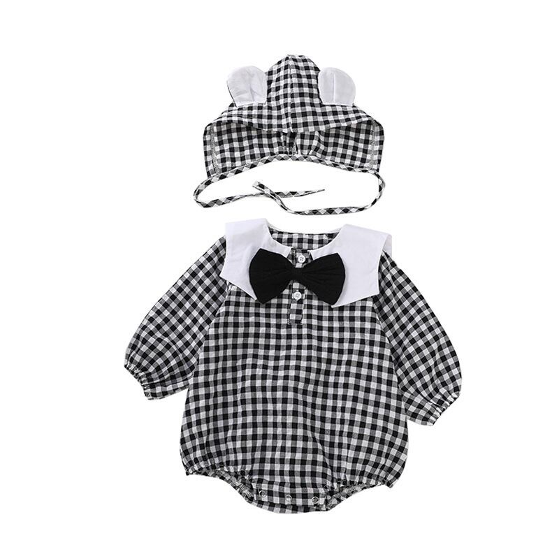 色:超ソフトな黒と白のチェック柄ロンパースコレクションプラス購入+無料帽子,スーパーソフトピンクチェック柄ロンパースコレクションプラス購入+無料帽子