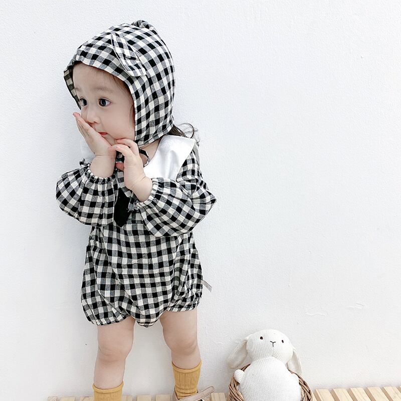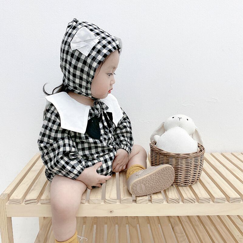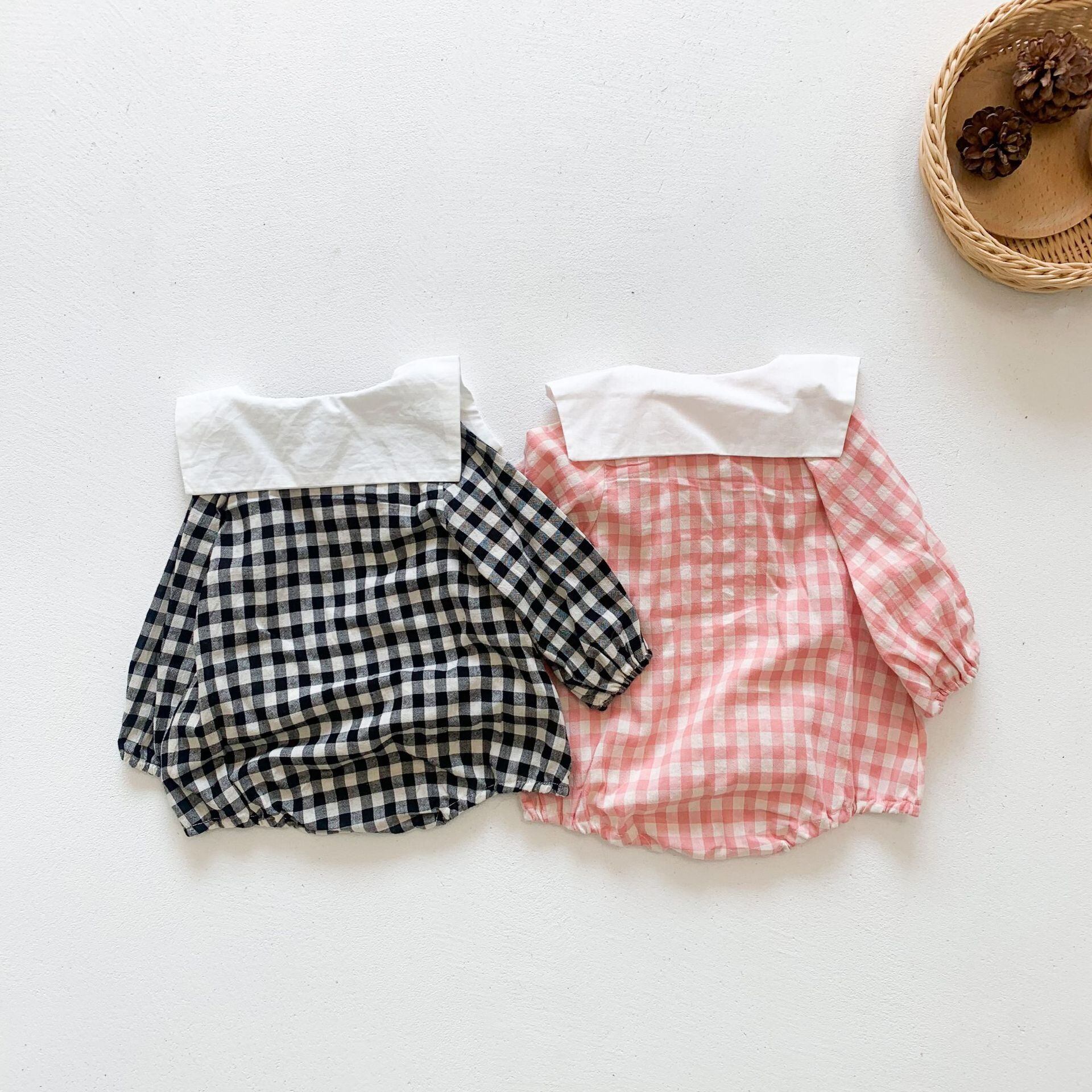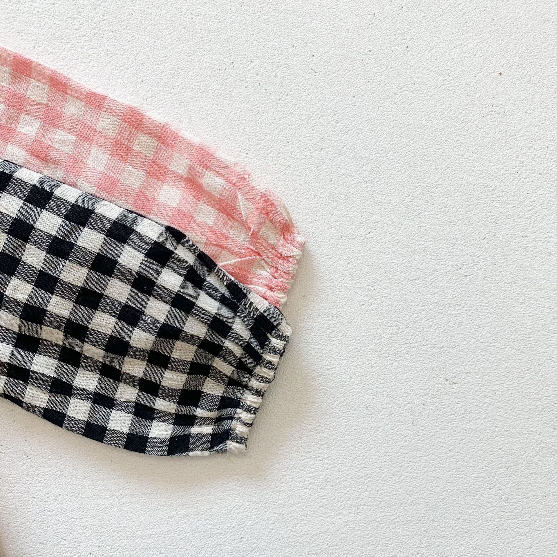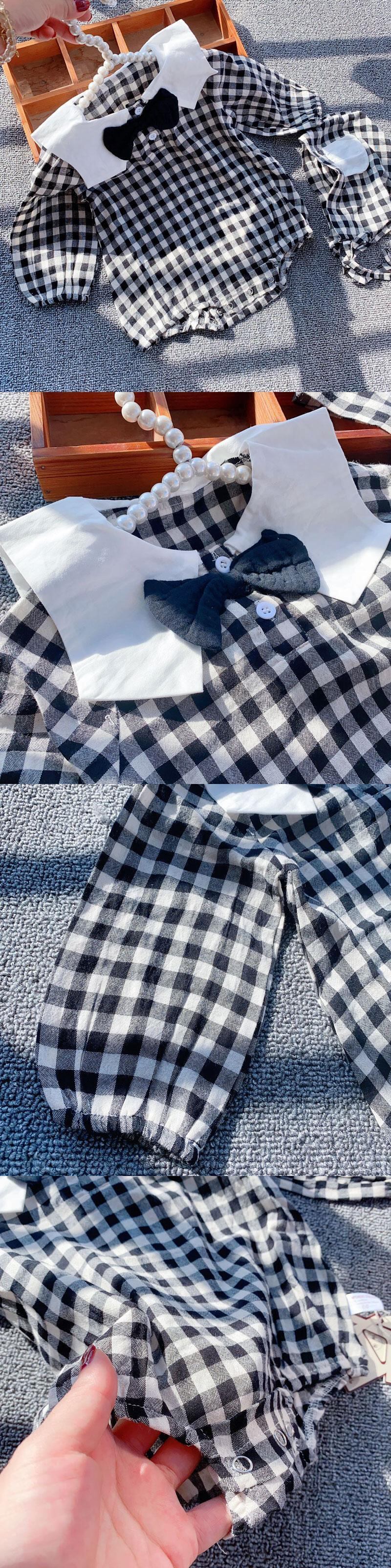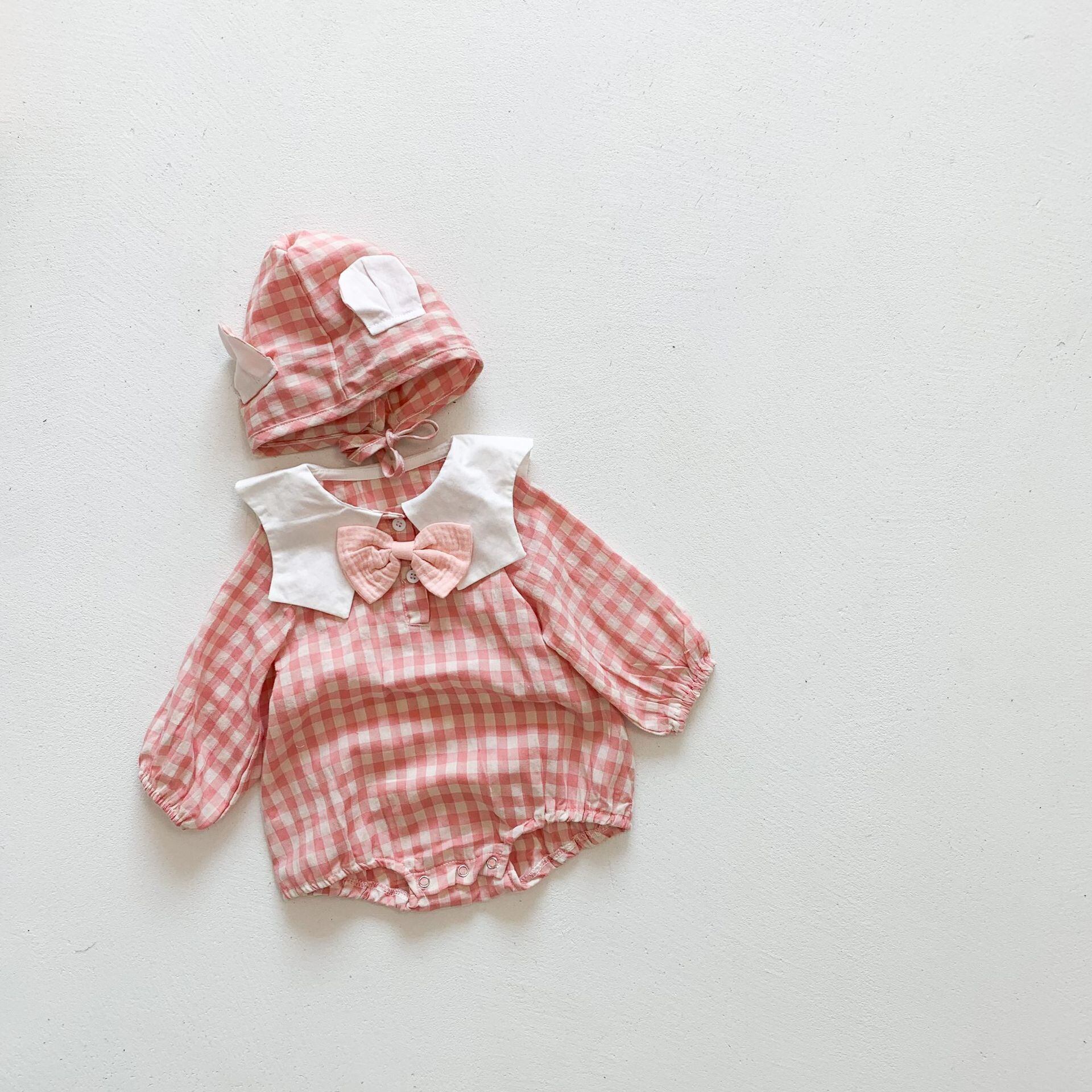 色:超ソフトな黒と白のチェック柄ロンパースコレクションプラス購入+無料帽子,スーパーソフトピンクチェック柄ロンパースコレクションプラス購入+無料帽子