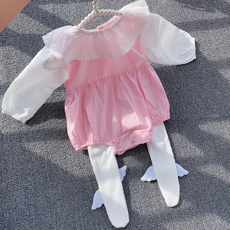 色:ピンクラペルロンパースコレクションプラス購入無料ヘアバンド,ピンクのラペルロンパース+ウィングスタイツホワイトコレクションプラス購入無料ヘアバンド