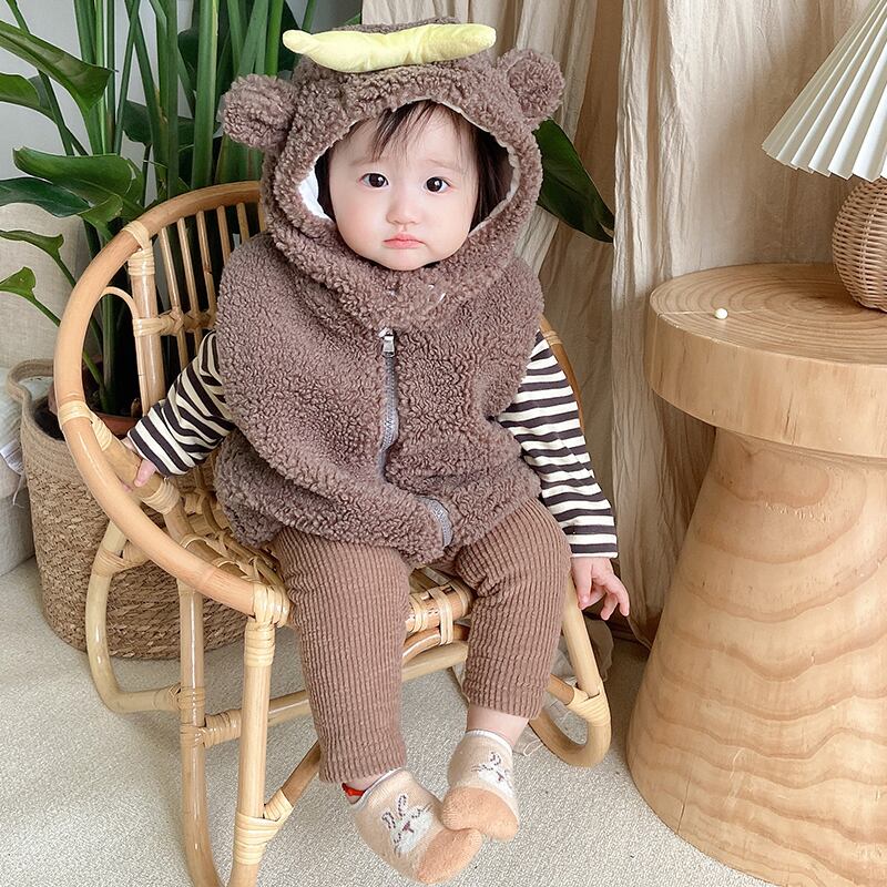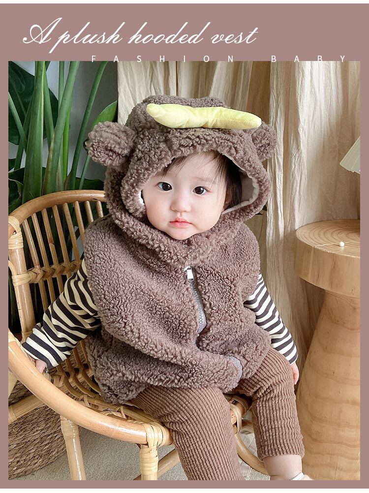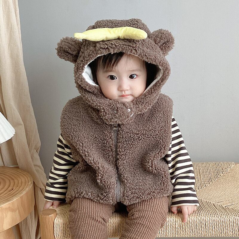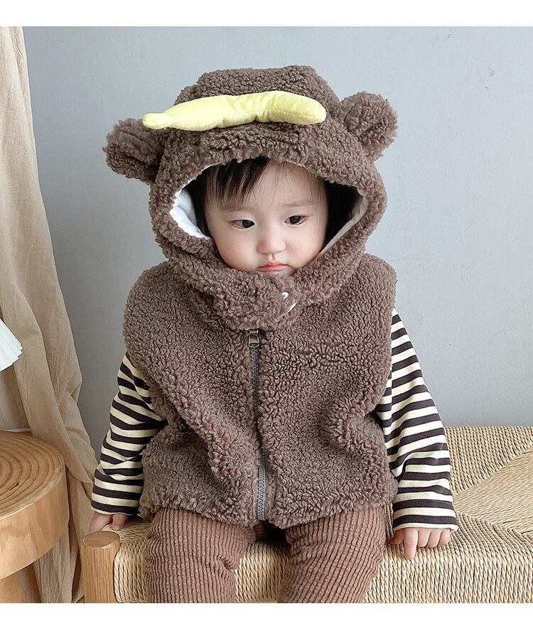 色:ブラウンベスト,白いベスト,フリースブラックストライプボトミングシャツ,ぬいぐるみの赤い縞模様のボトミングシャツ