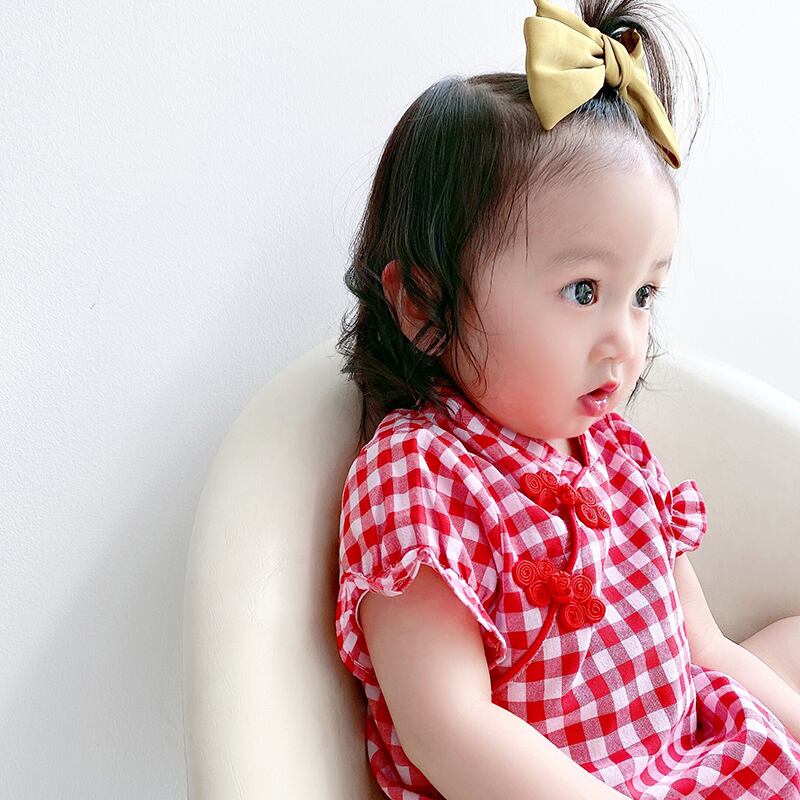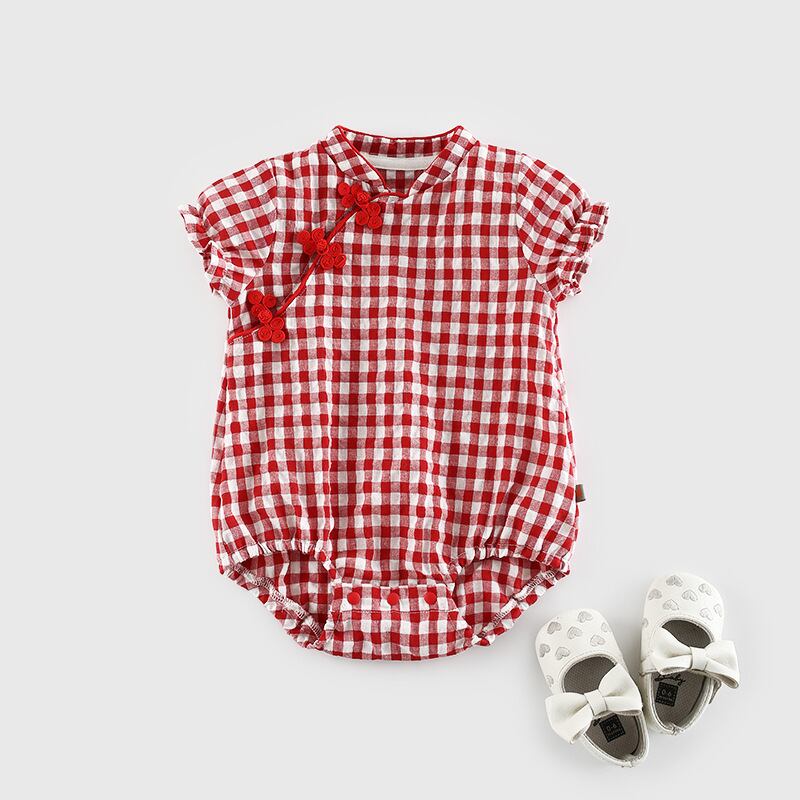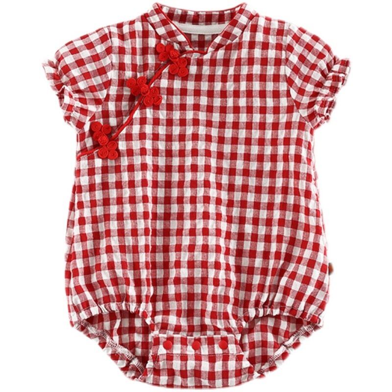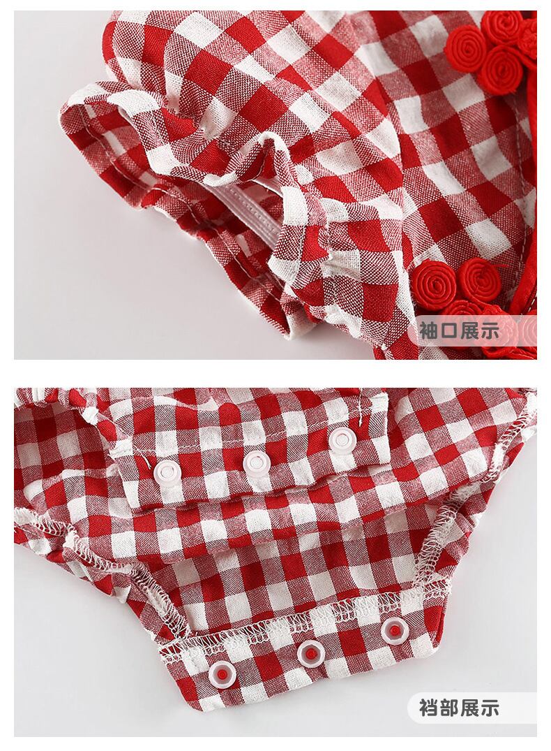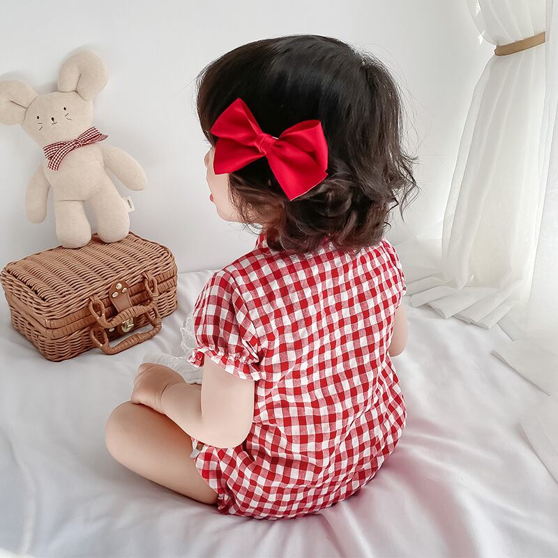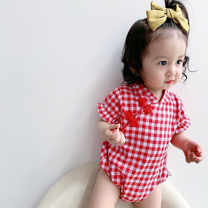 レッドサマースタイルワンピース格子柄ドレス ロンパース オールインワン コットン 夏物 4/24 mi0943709353873 | Sagittarius By Constellation -KIDS&BABY-