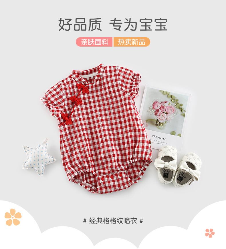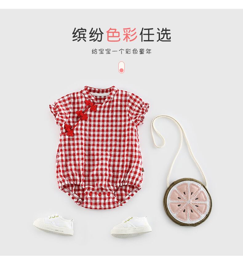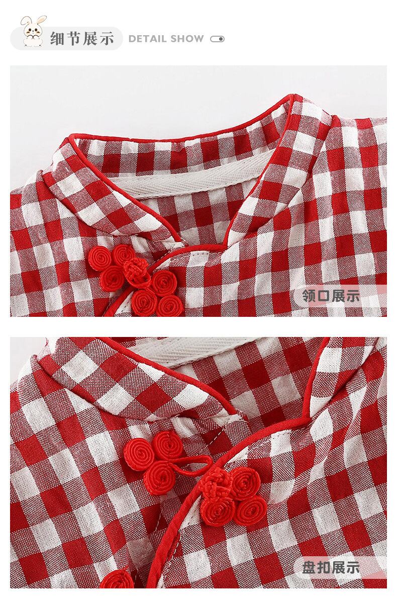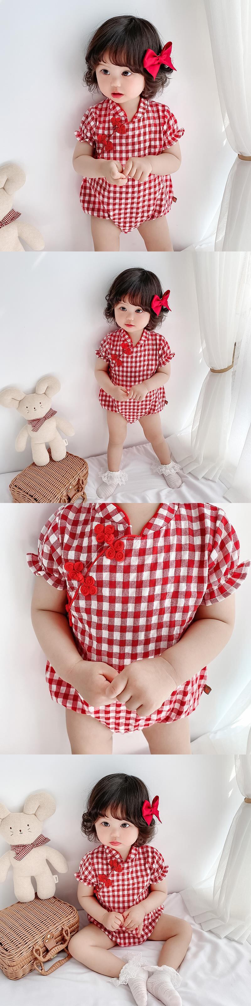 レッドサマースタイルワンピース格子柄ドレス ロンパース オールインワン コットン 夏物 4/24 mi0943709353873 | Sagittarius By Constellation -KIDS&BABY-