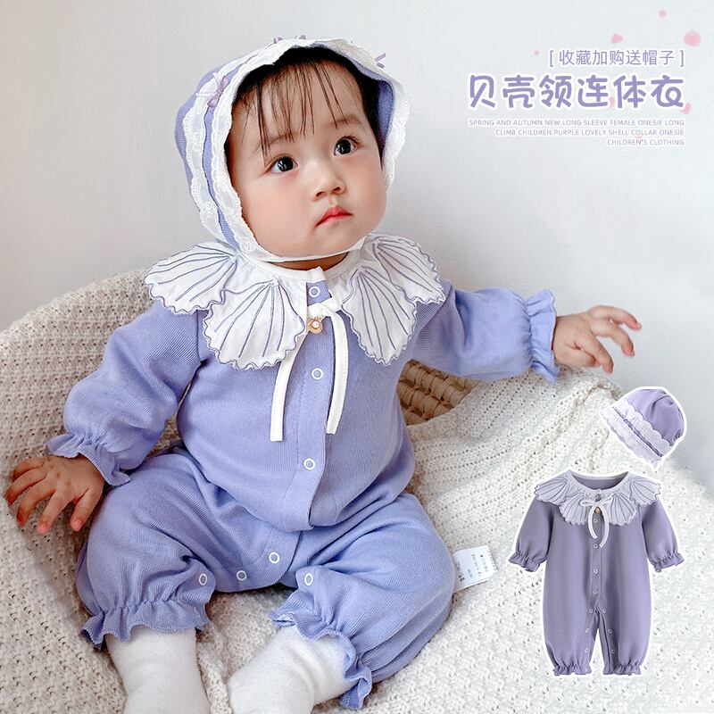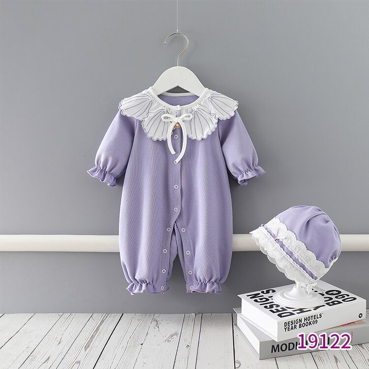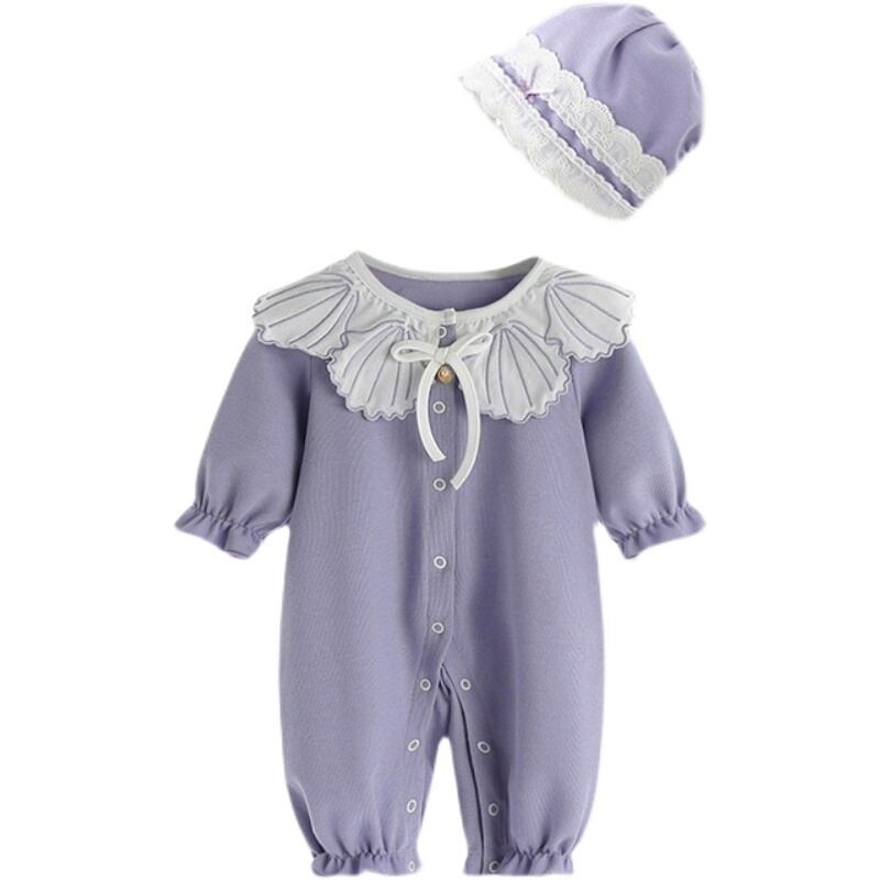 スプリングワンピース薄手ロンパース オールインワン ロング コットン 春物 パープル 4/24 mi0991338780441 | Sagittarius By Constellation -KIDS&BABY-