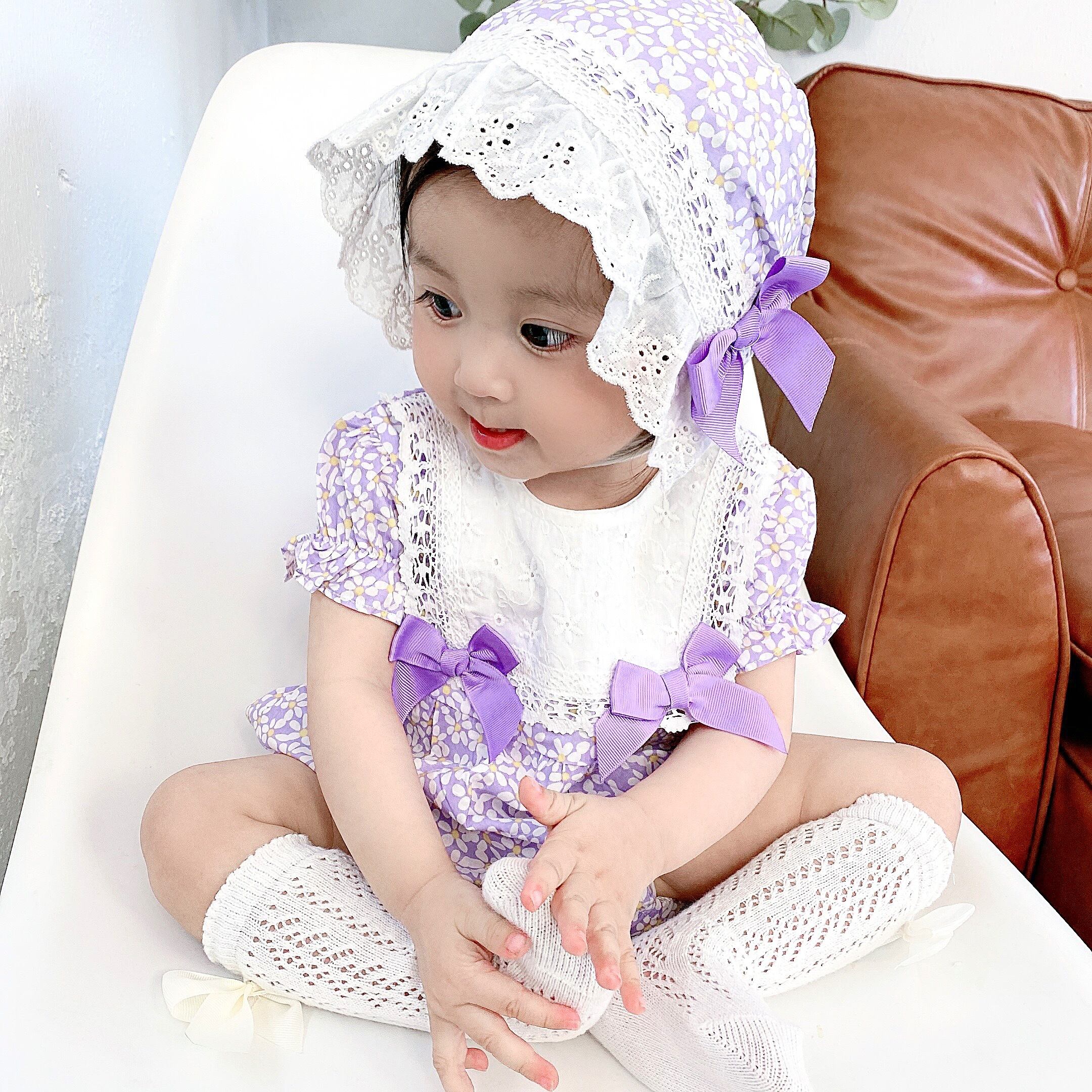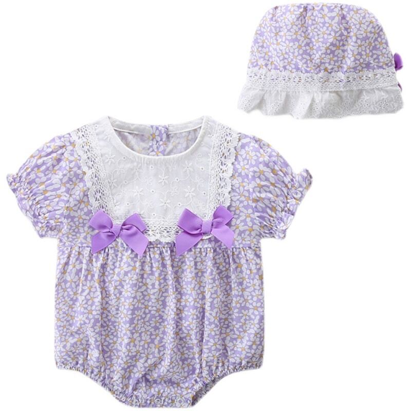 色:フローラルパープルロンパース2150,翼のパンストのペア,パープルフローラルロンパース+パープルフローラルヘッドバンド,半袖パープルロンパース+帽子