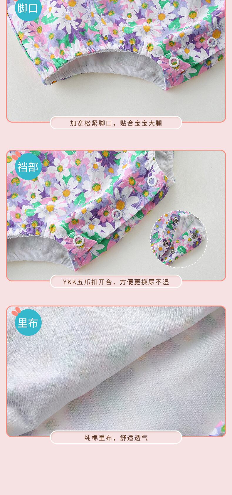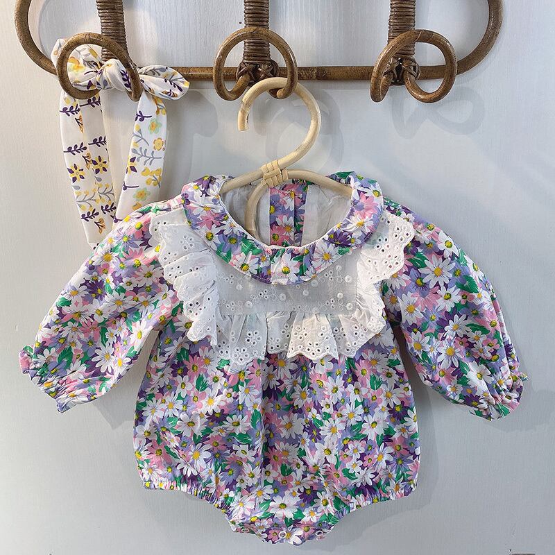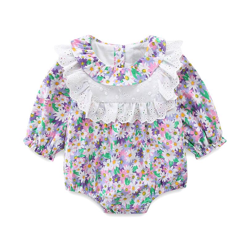 スプリングサマーフローラル薄手スタイルロンパース オールインワン コットン 春物 夏物 花柄 パープル 4/24 mi0954130618790 | Sagittarius By Constellation -KIDS&BABY-