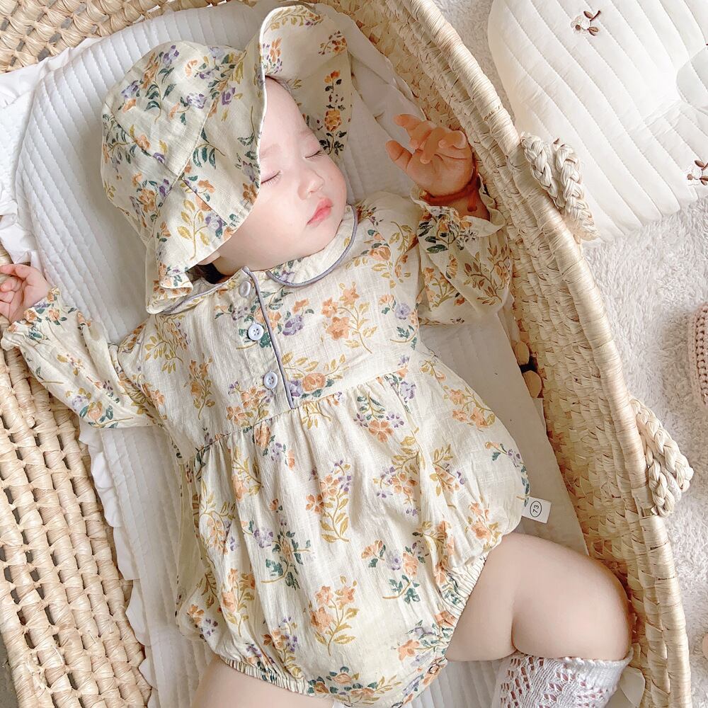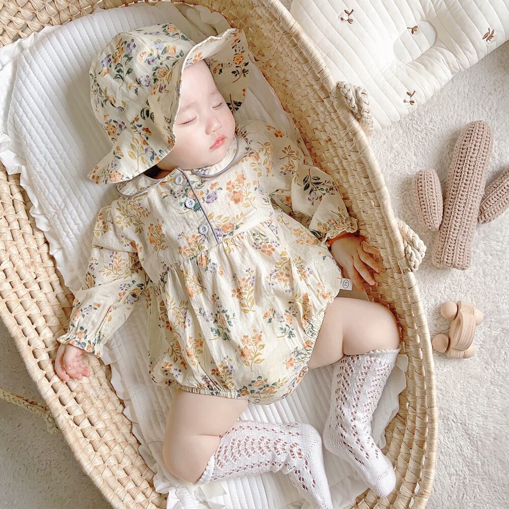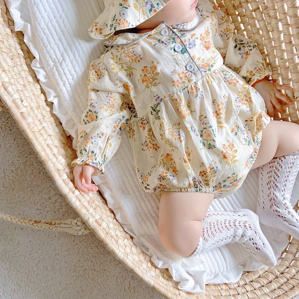 色:フローラルロンパース+帽子,フローラルロンパース+帽子+白いストッキング