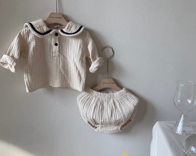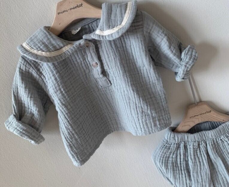 柔らかいガーゼ生地 セットアップ 襟付き mi98764356