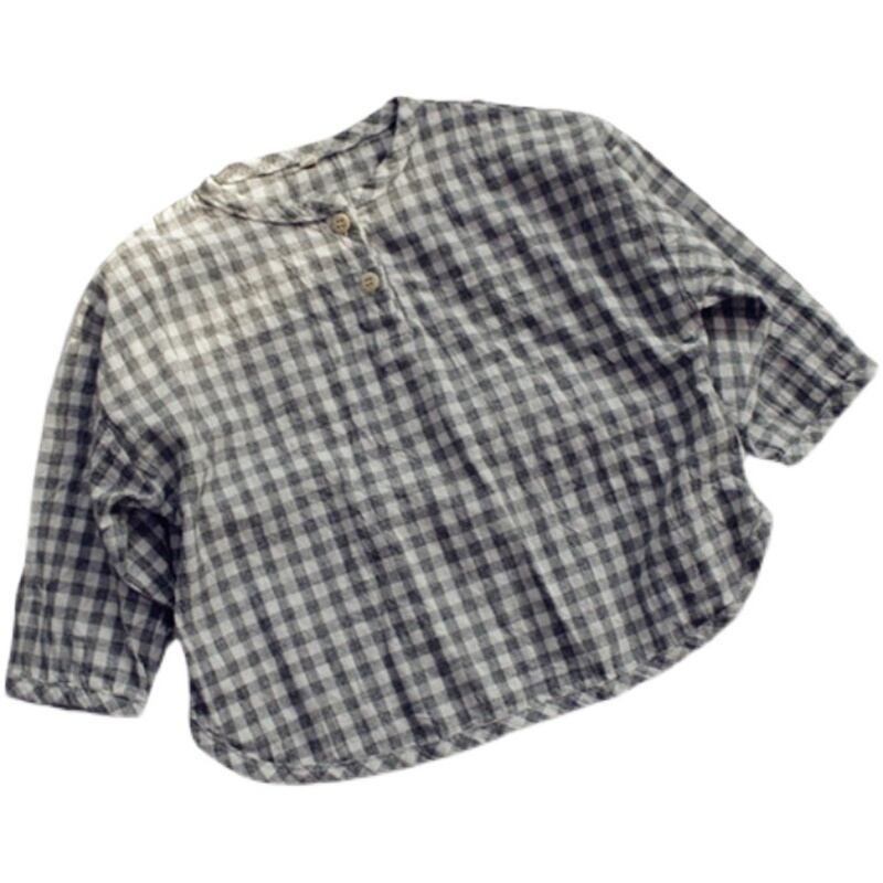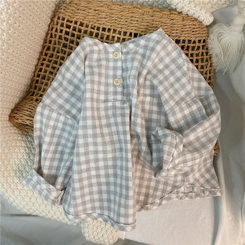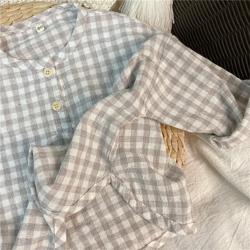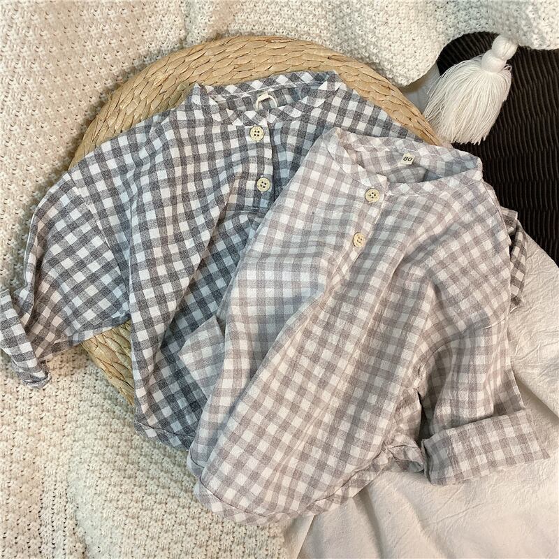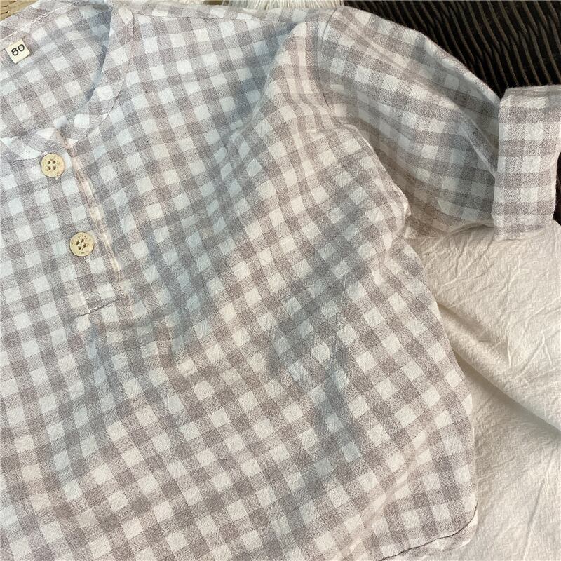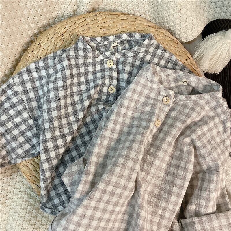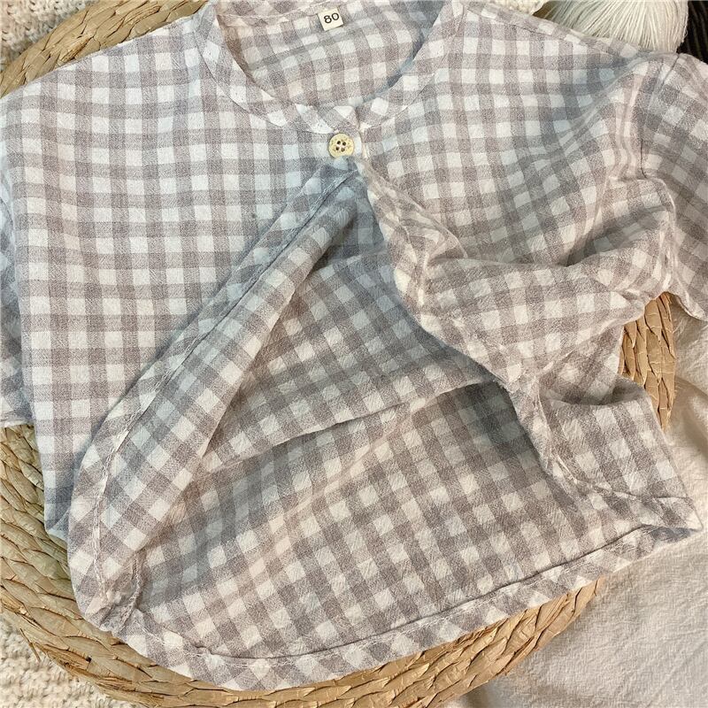 スプリングサマー格子柄シャツ ラウンドネックスタイル レッド コットン 春物 夏物 Oネック 4/24 mi0920119212989 | Sagittarius By Constellation -KIDS&BABY-
