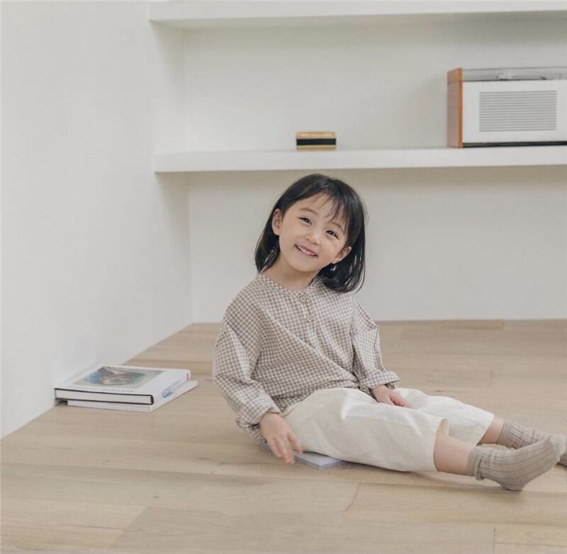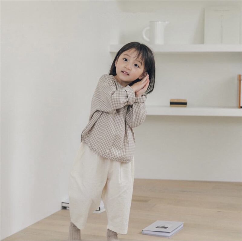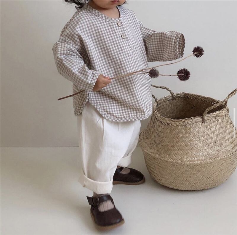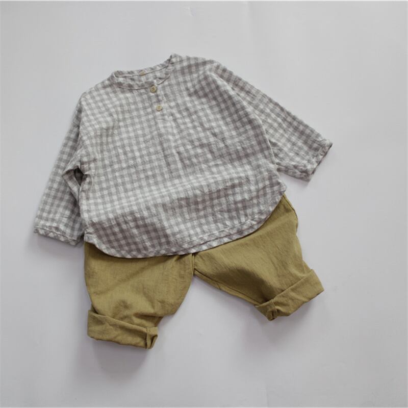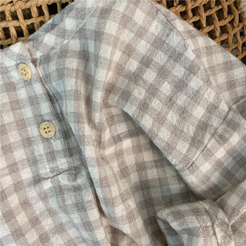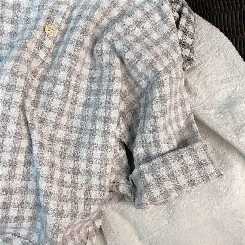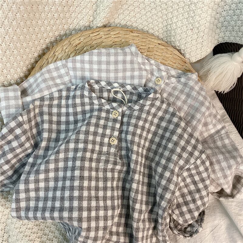 スプリングサマー格子柄シャツ ラウンドネックスタイル レッド コットン 春物 夏物 Oネック 4/24 mi0920119212989 | Sagittarius By Constellation -KIDS&BABY-