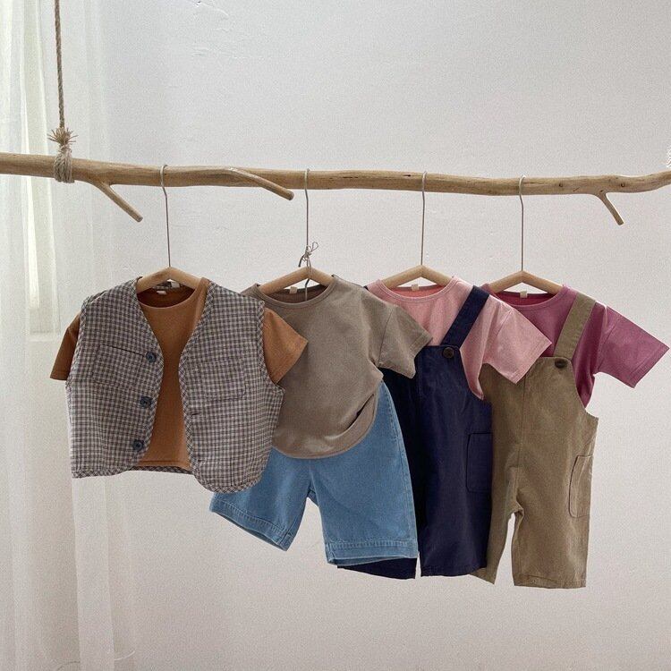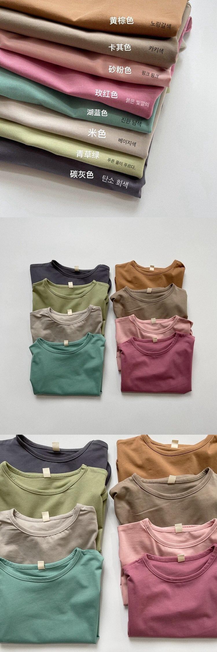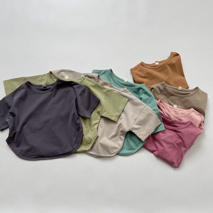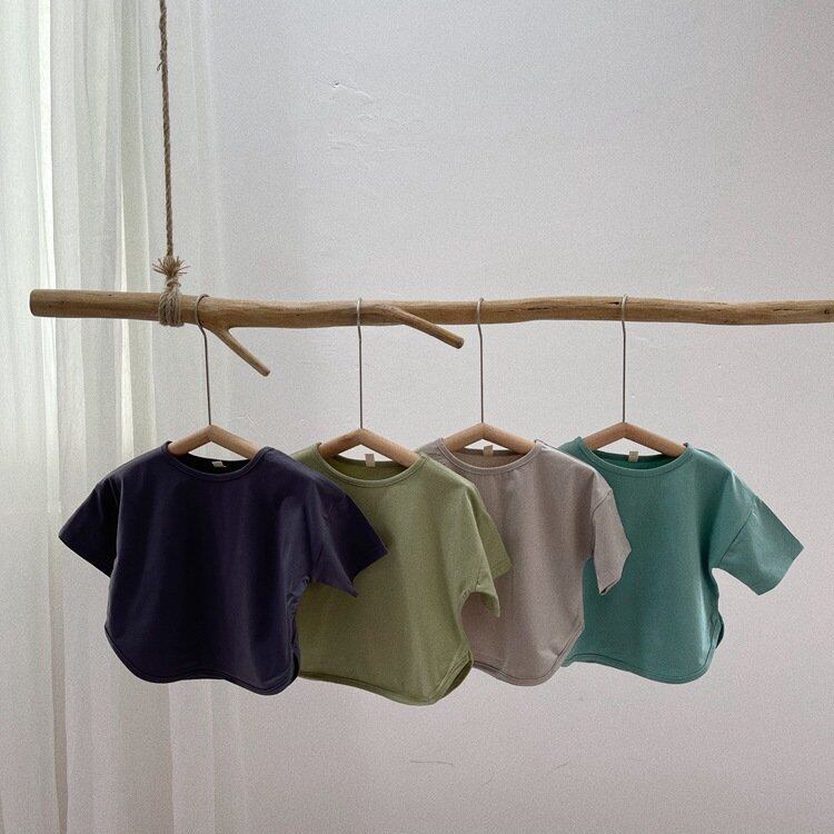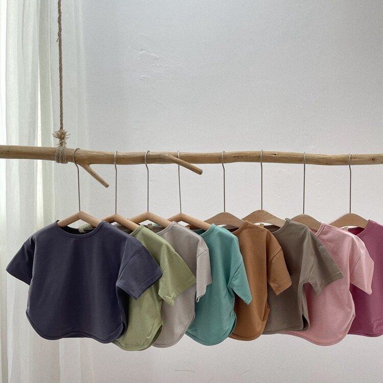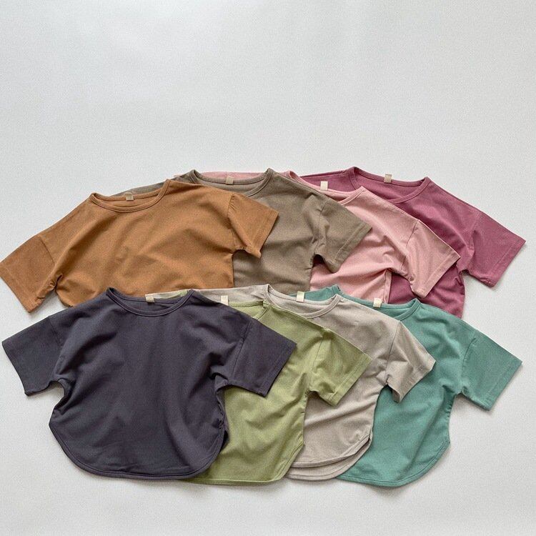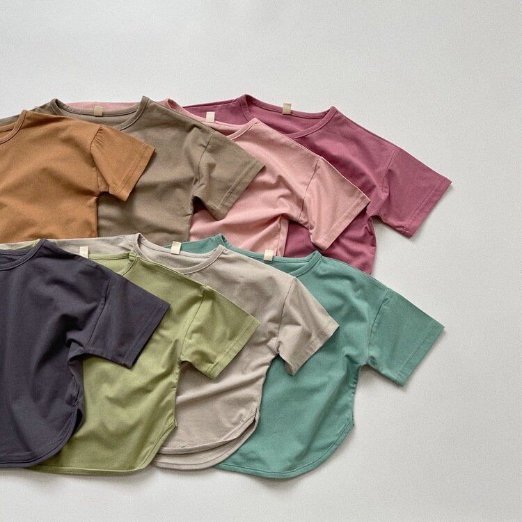 ベーシックスタイルカラーTシャツ サマーソリッド ルーズトップス 夏物 ソリッドカラー 4/24 mi0993390887343 | Sagittarius By Constellation -KIDS&BABY-