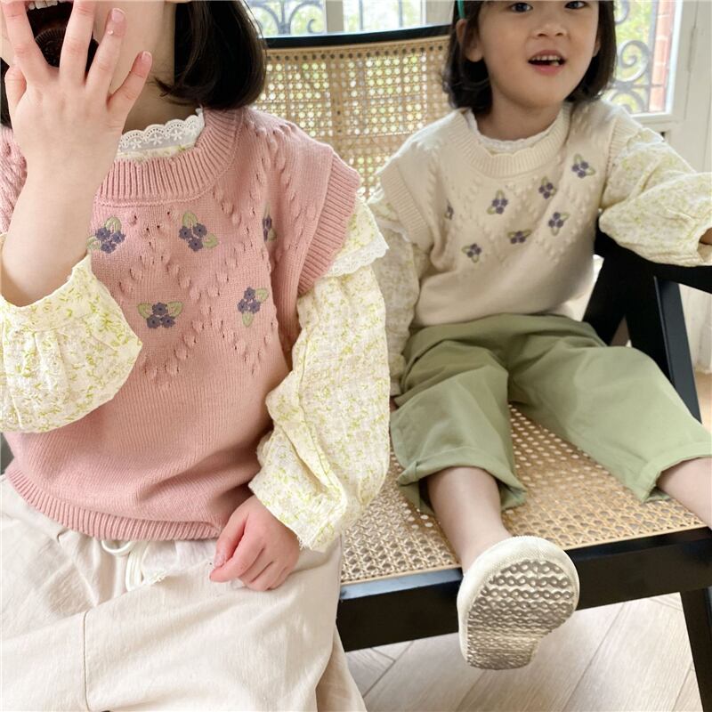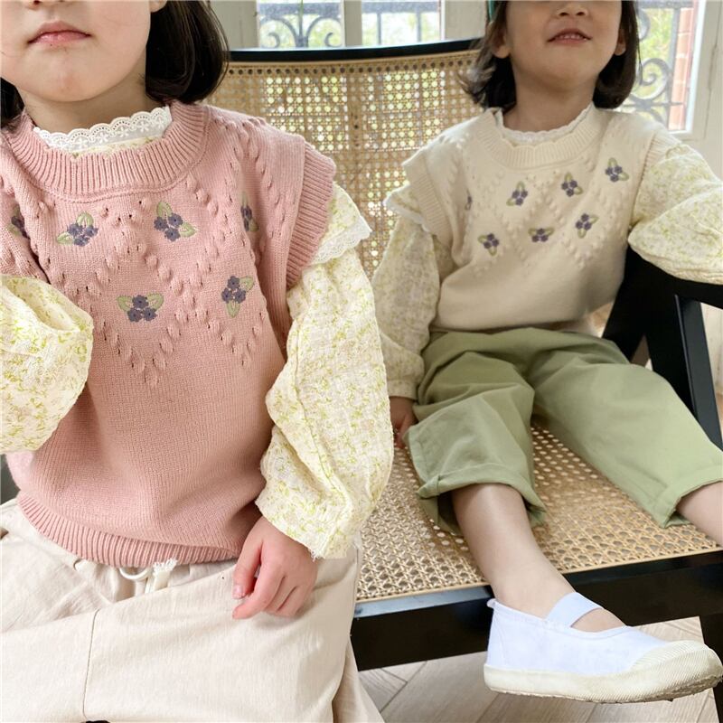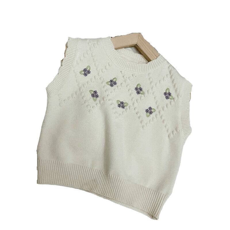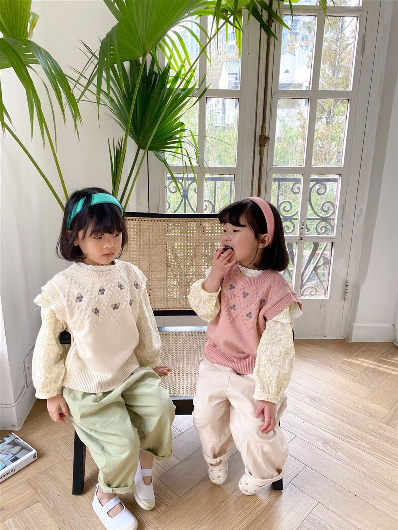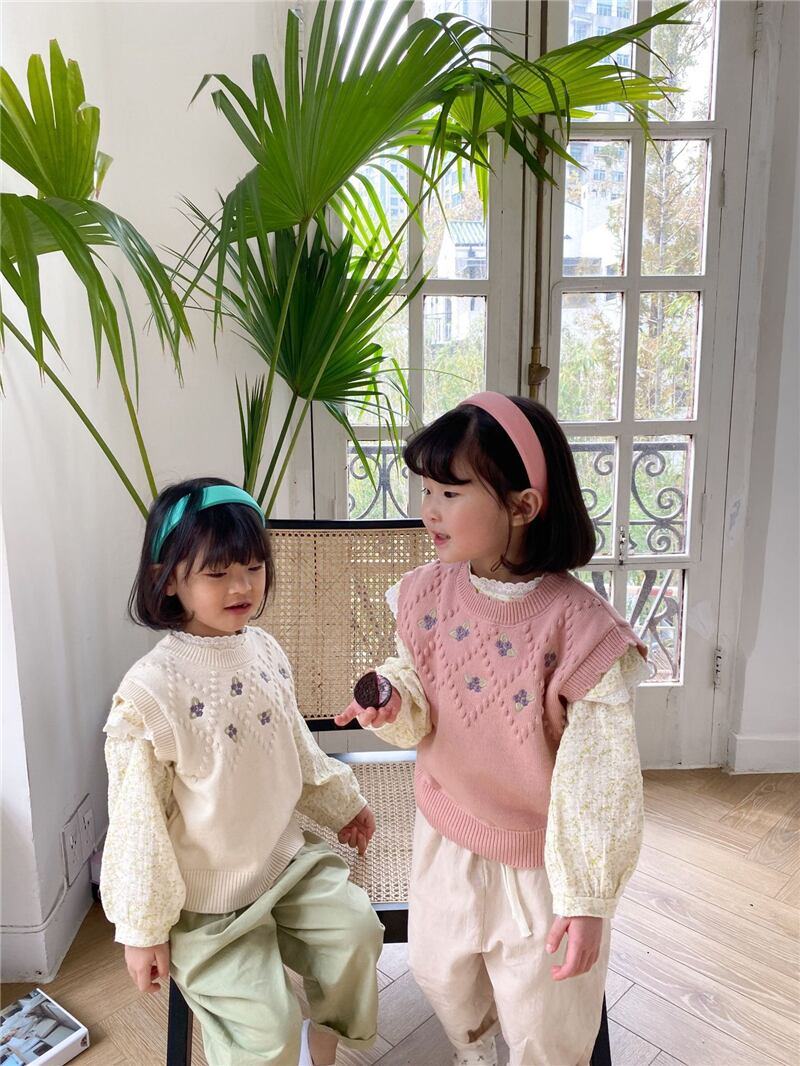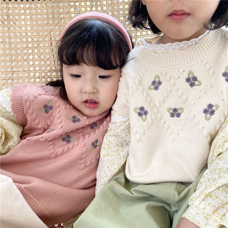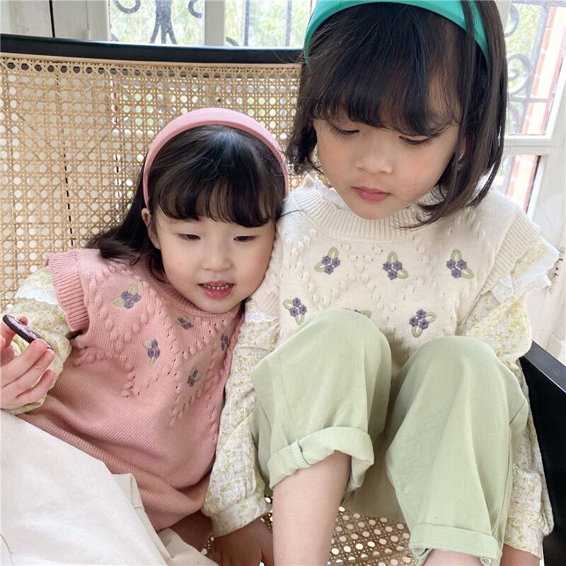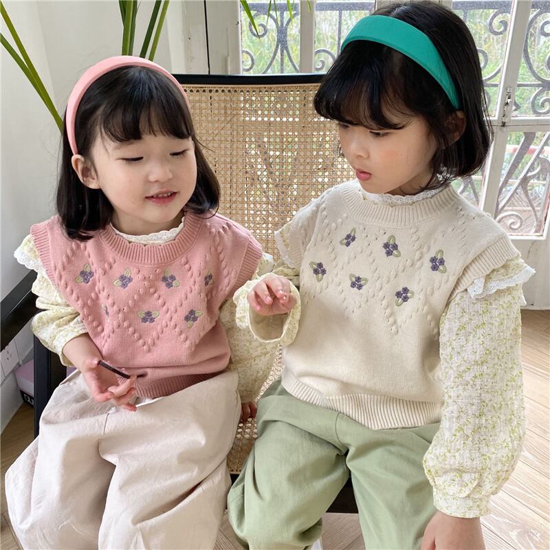 色:小さな紫色の花のベストベージュ,小さな紫色の花のベスト-ピンク