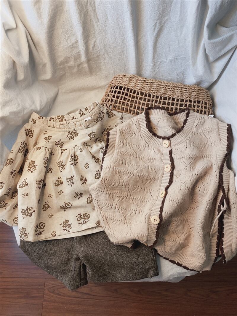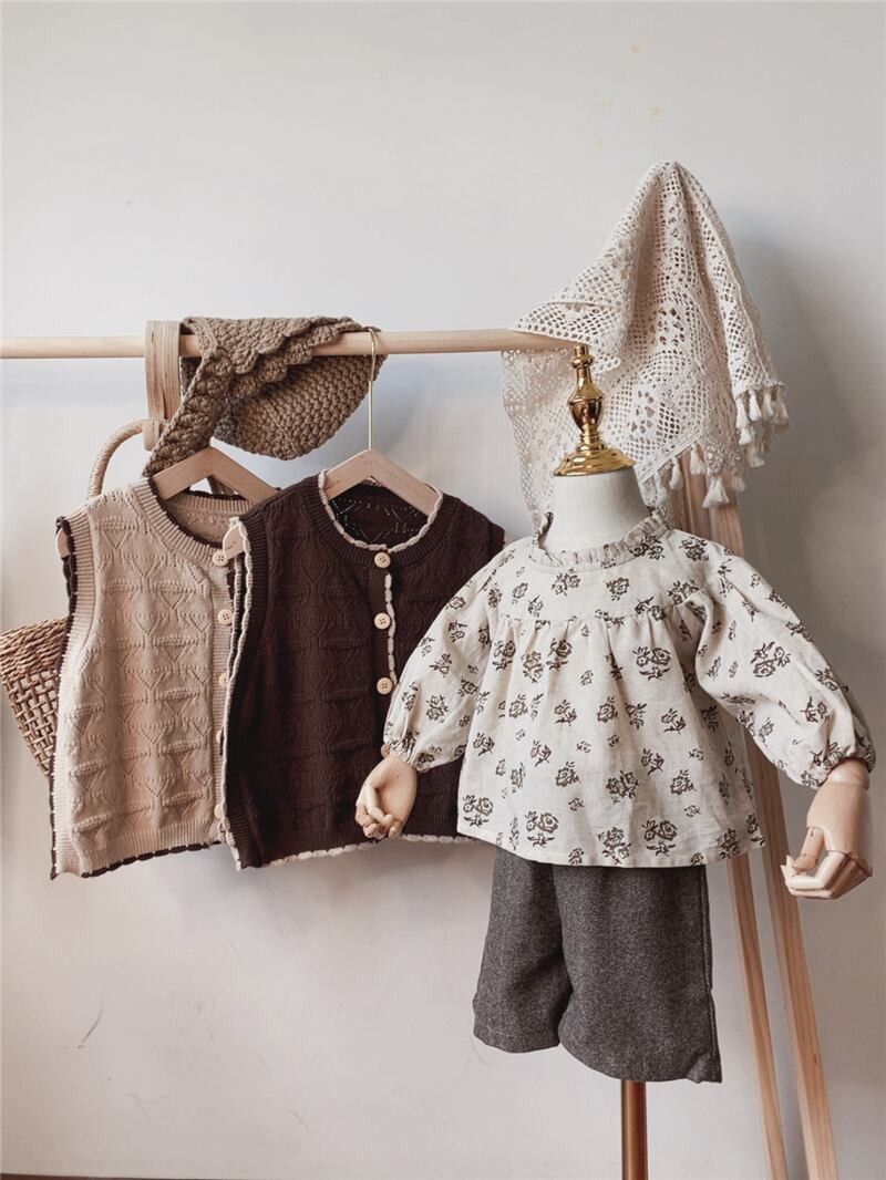スタンダードスタイルフローラルシャツ ジャカードニットカーディガンワイドレッグパンツ コットン レトロ 花柄 ワイドパンツ 4/24 mi0911124521590 | Sagittarius By Constellation -KIDS&BABY-