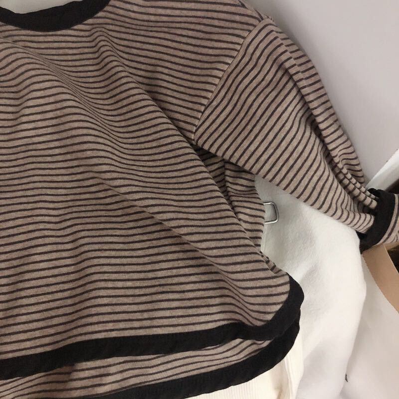 オータムTシャツ シャツ ラウンドネックストライプ ロング 秋物 Oネック 4/24 mi0975758280409 | Sagittarius By Constellation -KIDS&BABY-