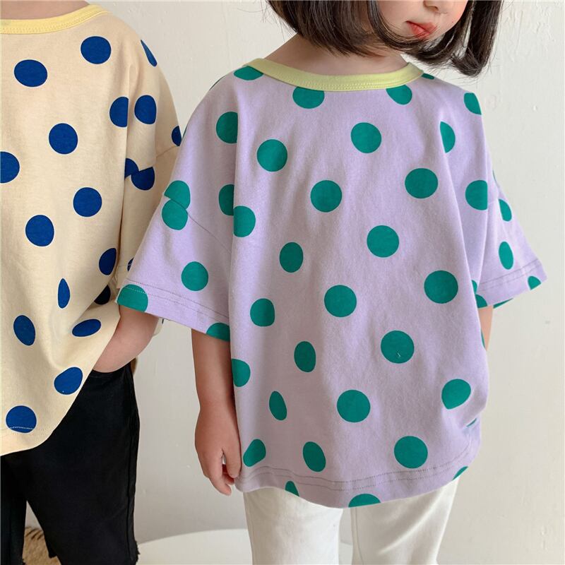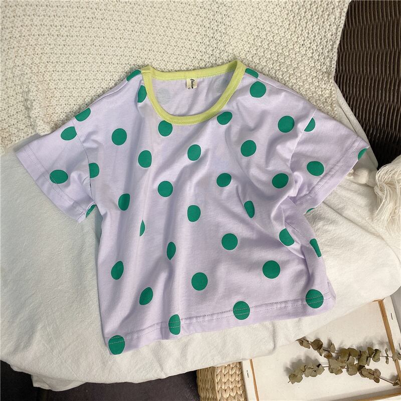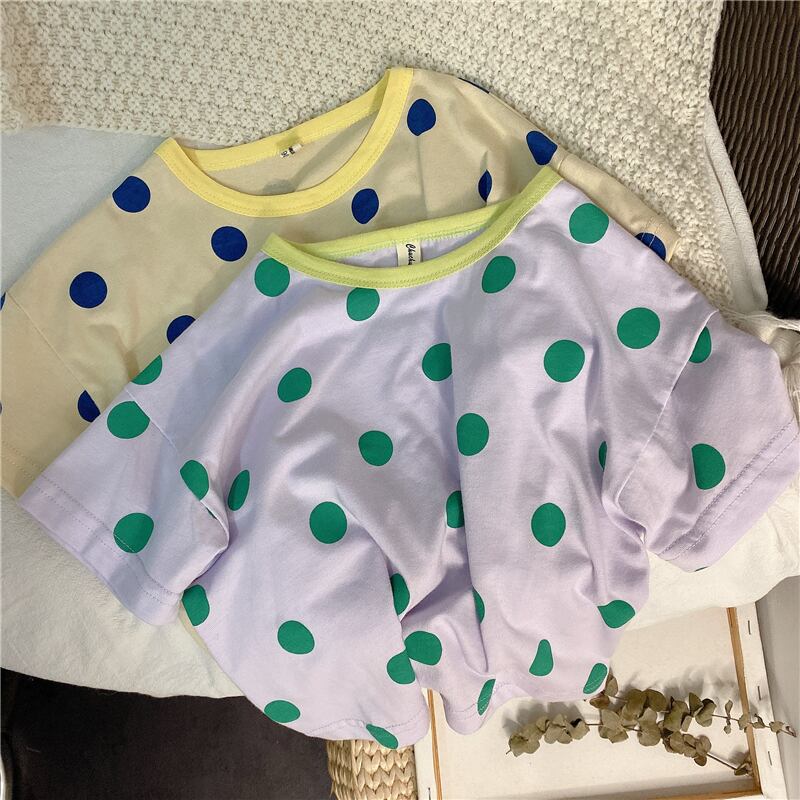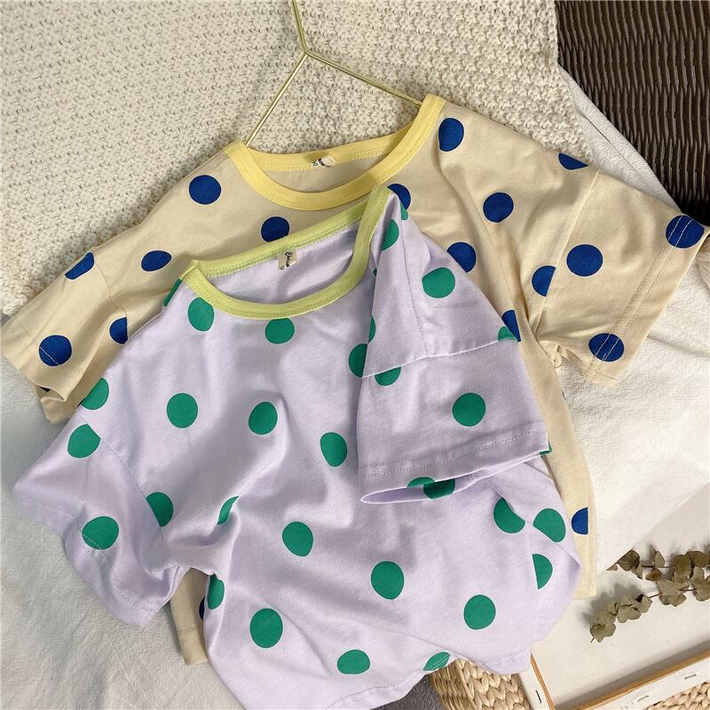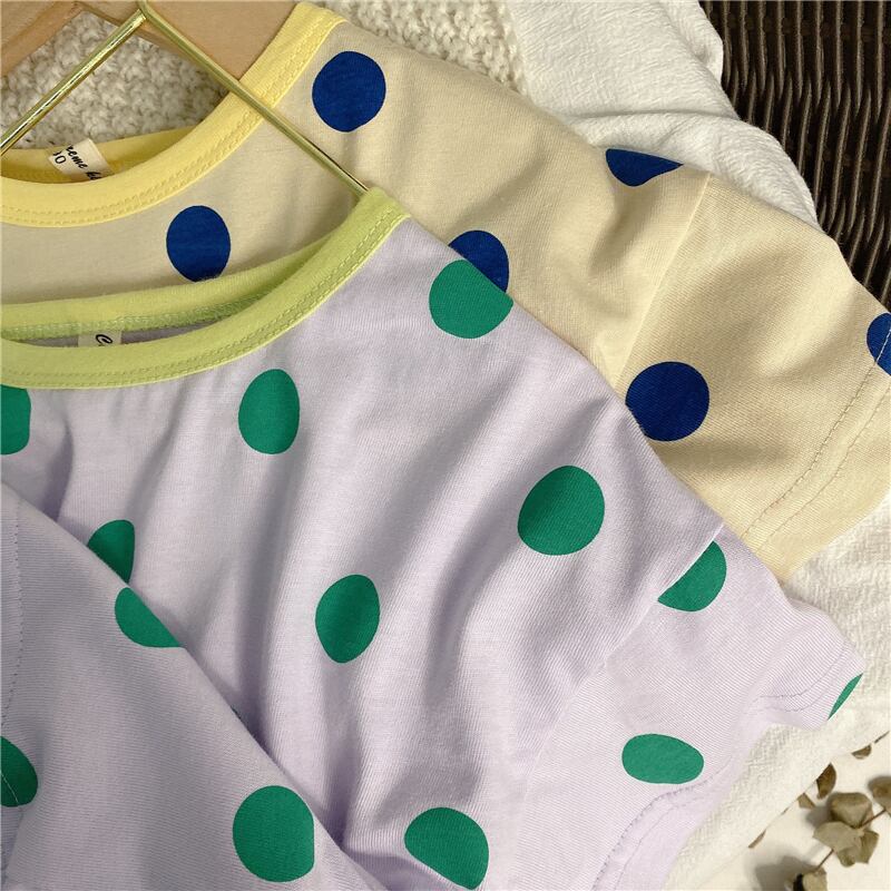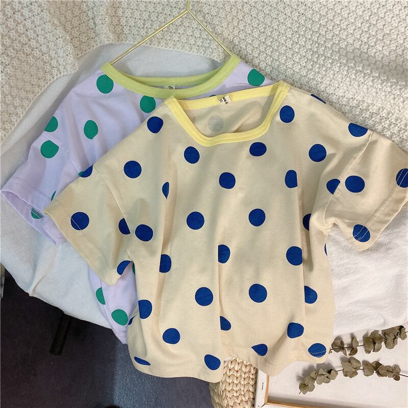 サマー水玉Tシャツ カラー半袖スリーブトップス ショート ハーフスリーブ 夏物 4/24 mi0998344162061 | Sagittarius By Constellation -KIDS&BABY-