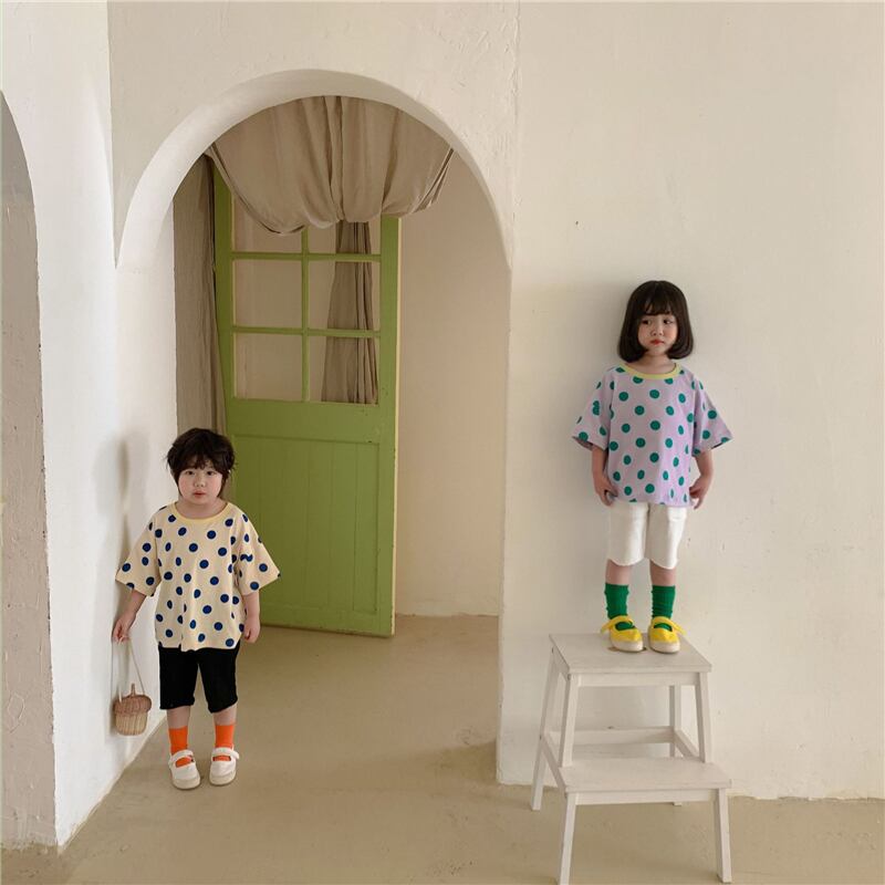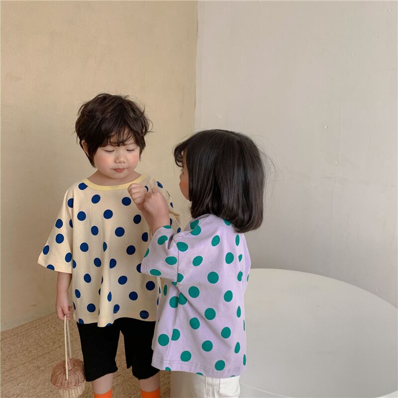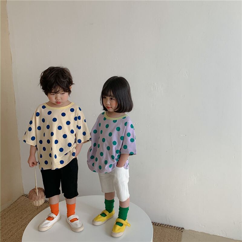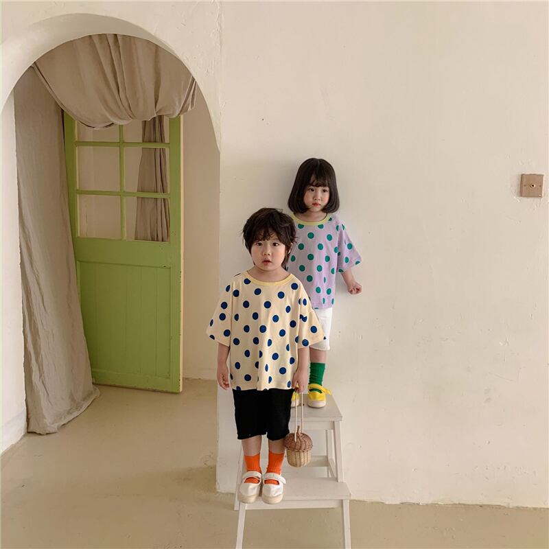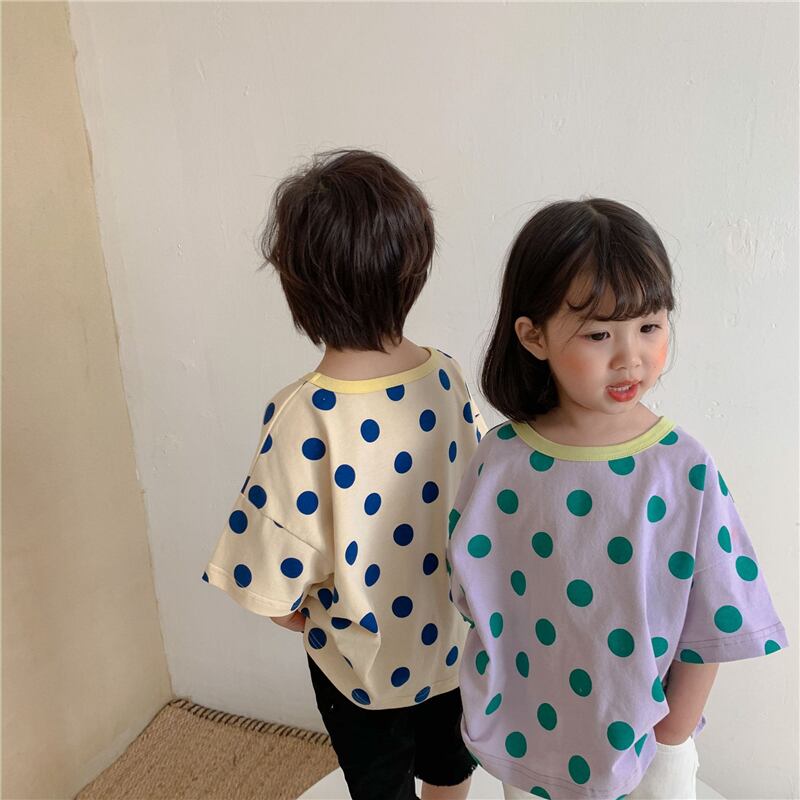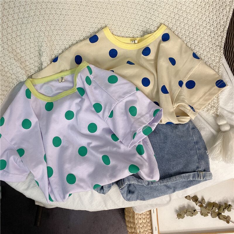 サマー水玉Tシャツ カラー半袖スリーブトップス ショート ハーフスリーブ 夏物 4/24 mi0998344162061 | Sagittarius By Constellation -KIDS&BABY-