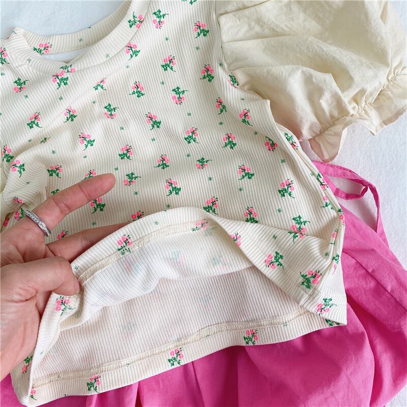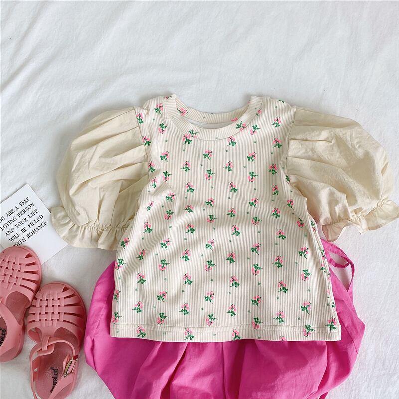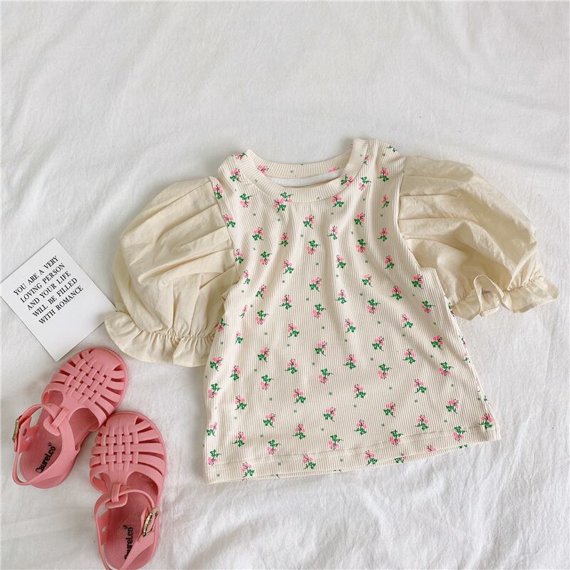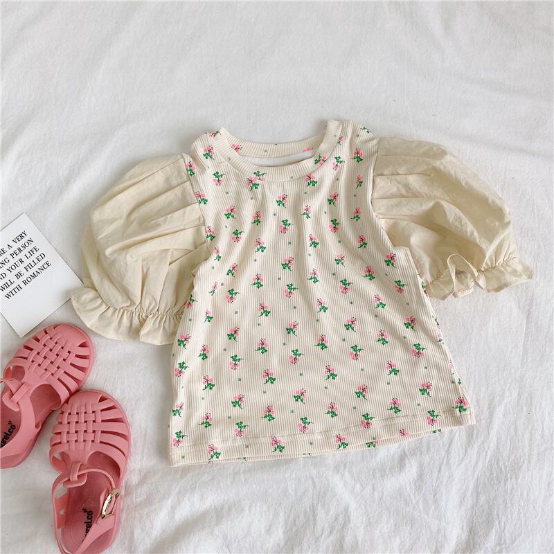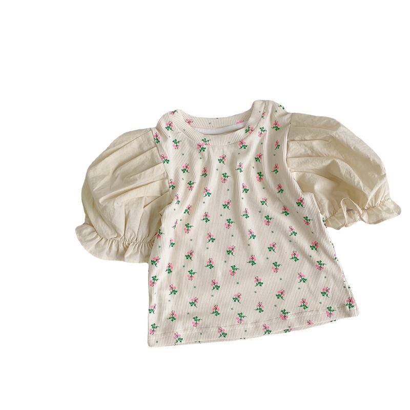 スプリングサマーFlowerデザイン プリント柄スリーブシャツ Tシャツ コットン 春物 夏物 フラワーデザイン 4/24 mi0957402105452 | Sagittarius By Constellation -KIDS&BABY-