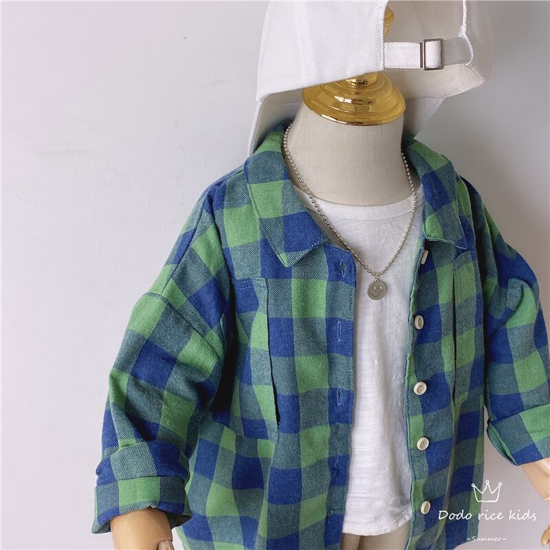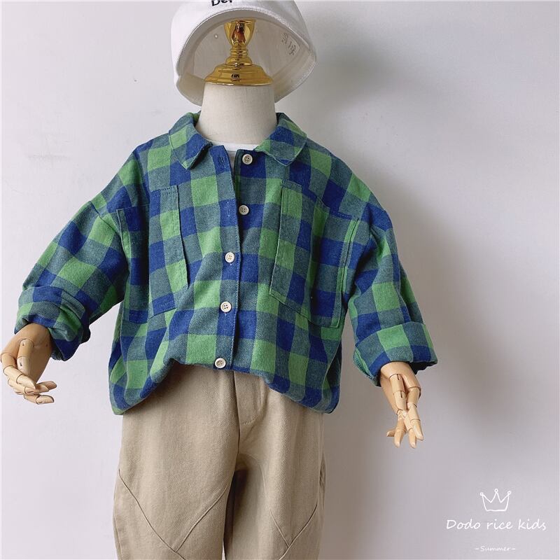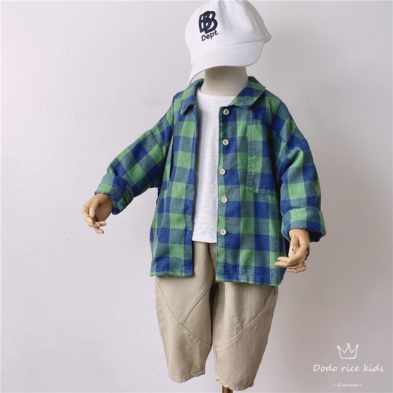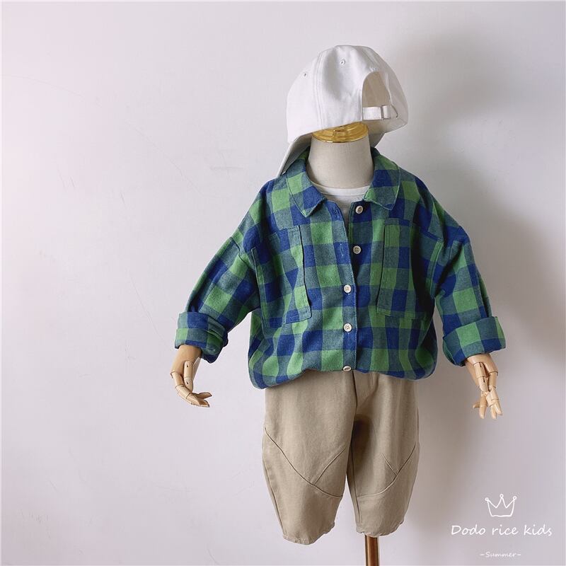 色:1129#ブルーグリーンのラージグリッドシャツ-ルーズバージョン,1116mカーキパンツ-小さすぎる