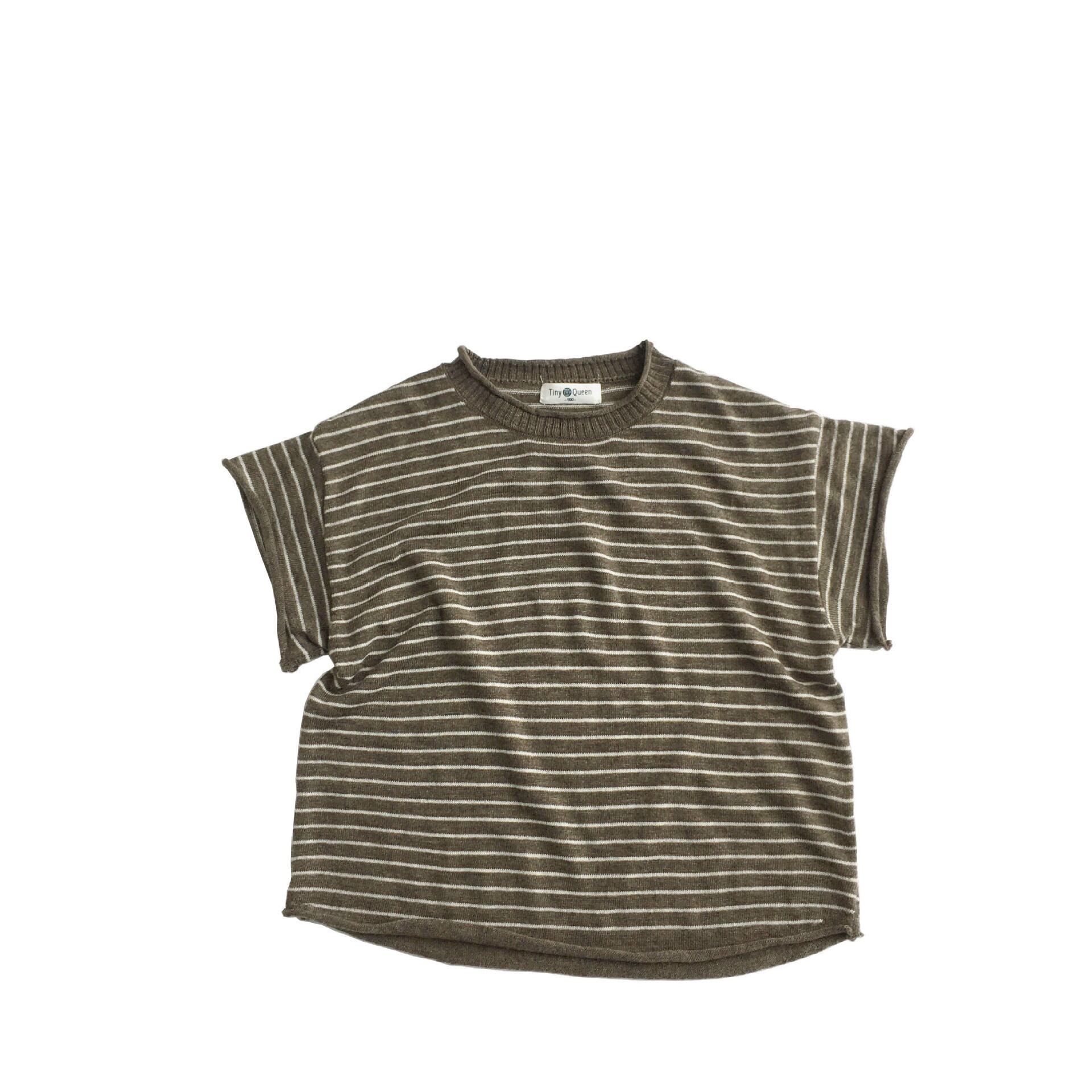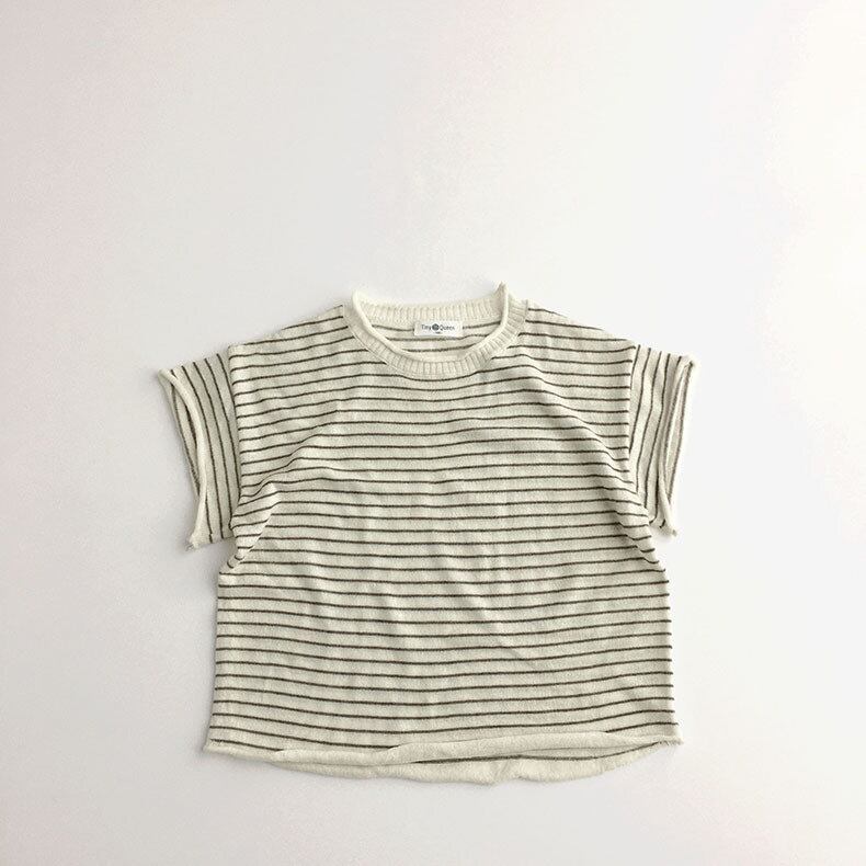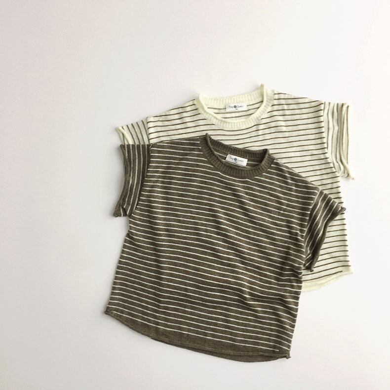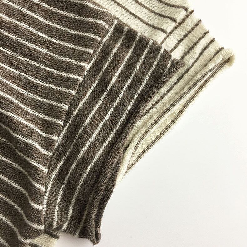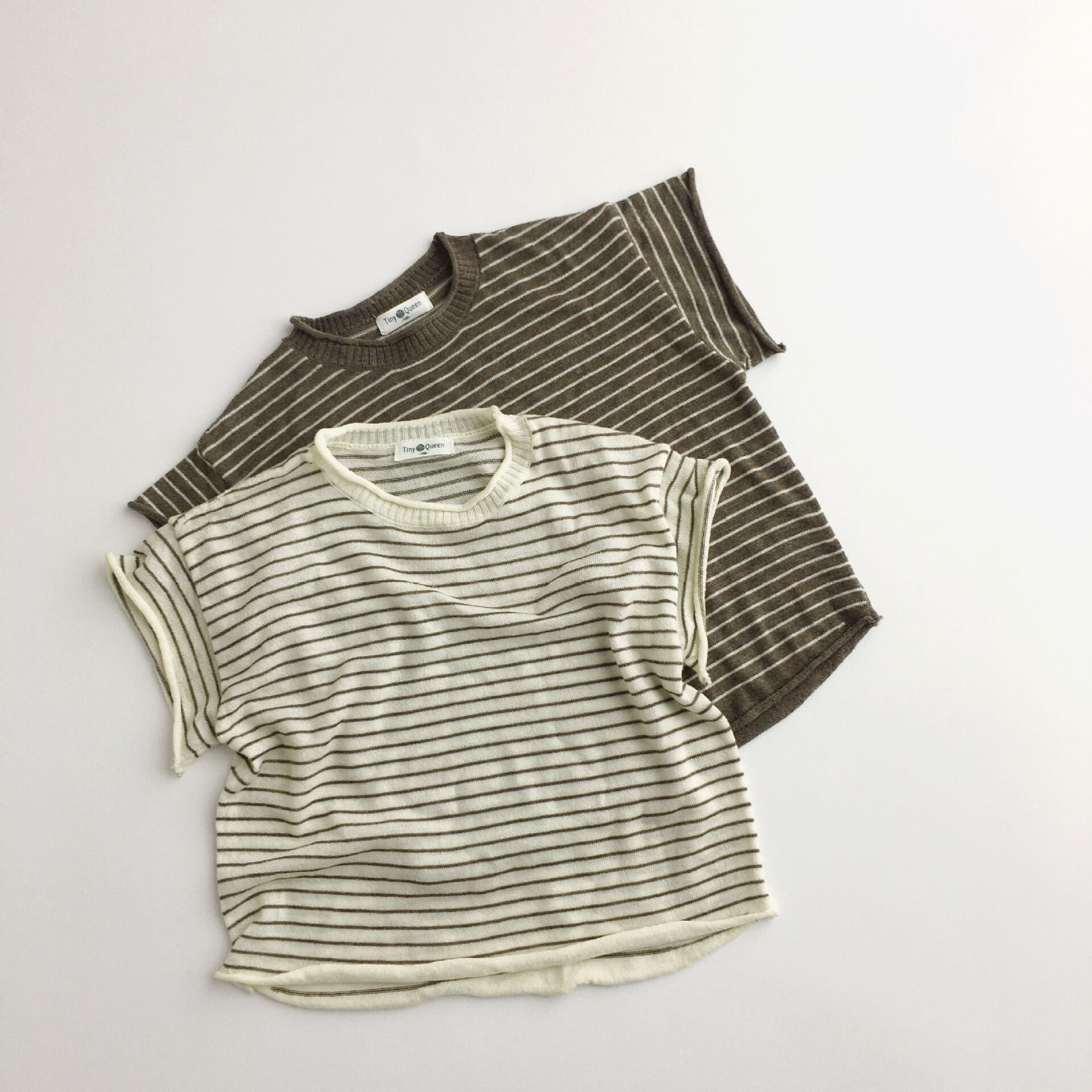 色:クリンプストライプTシャツ|—ベージュ,エッジがカールしたストライプTシャツ-ライトブラウン
