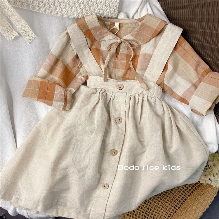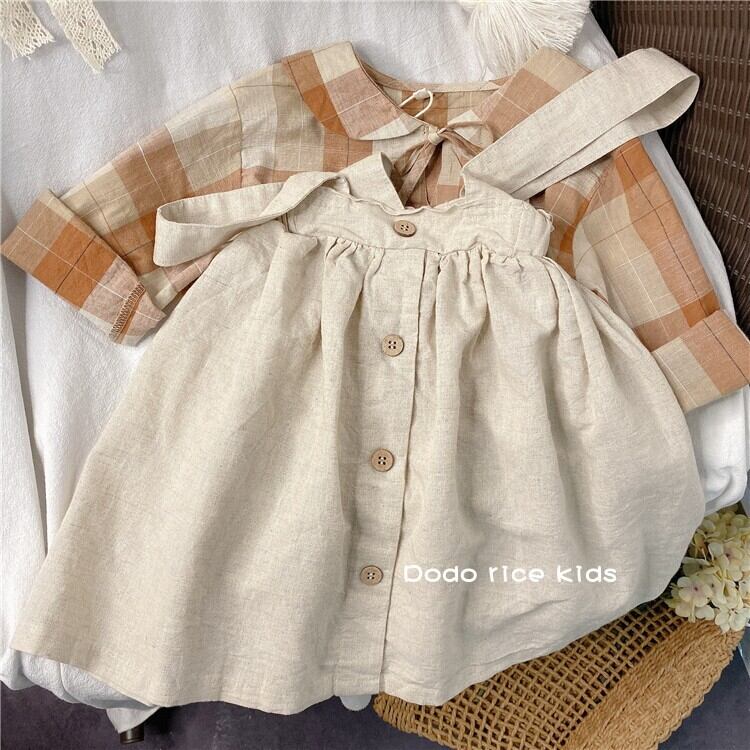 色:1158コットンとリネンのサスペンダースカート