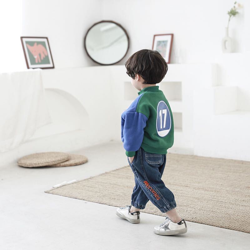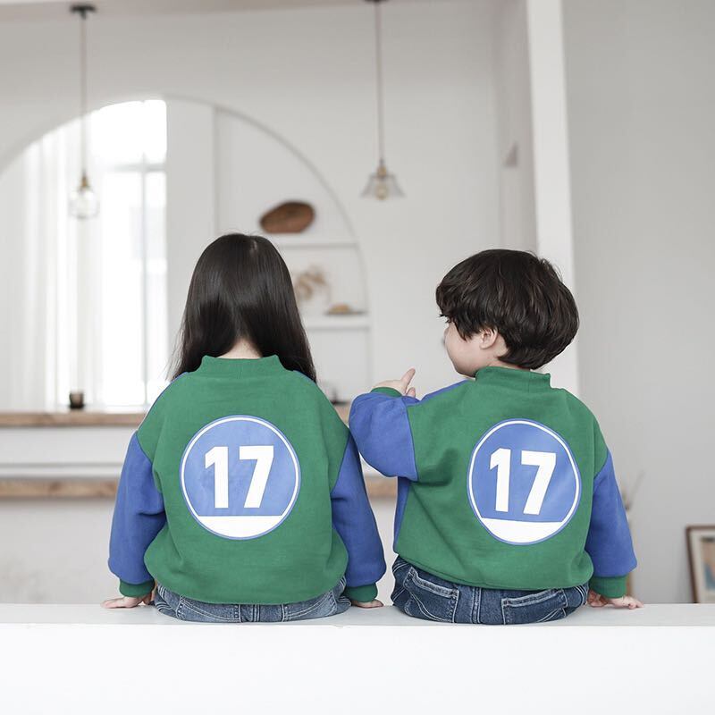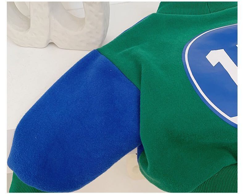 色:青緑色のカラーブロックセーター
