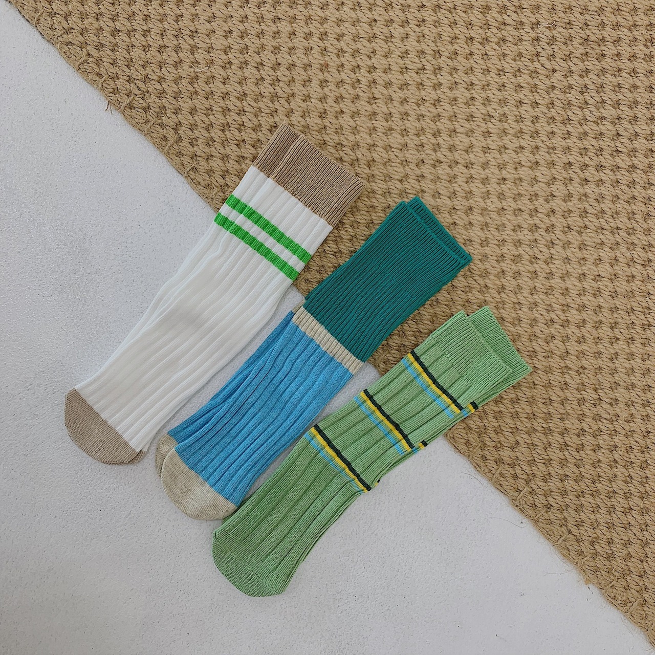 スプリングスタイルソックス カラーダブルストライプ コットン 春物 タイツ ストッキング 4/24 mi0967433125236