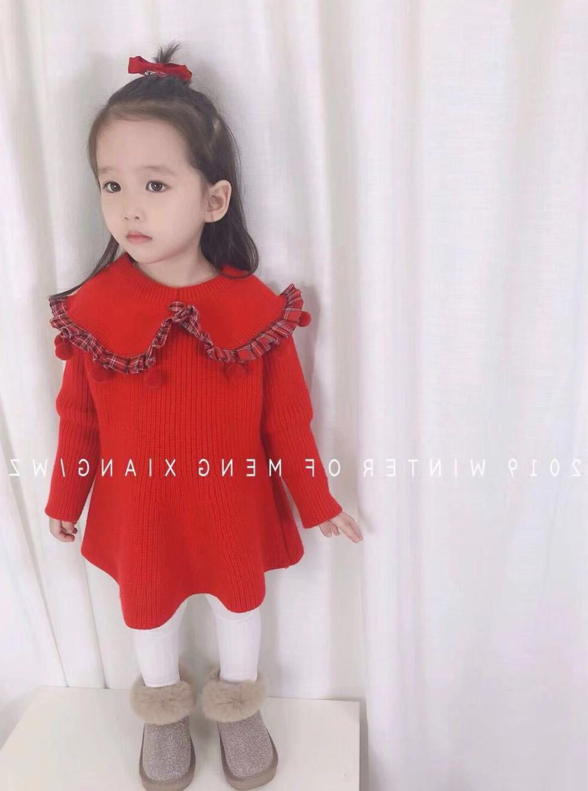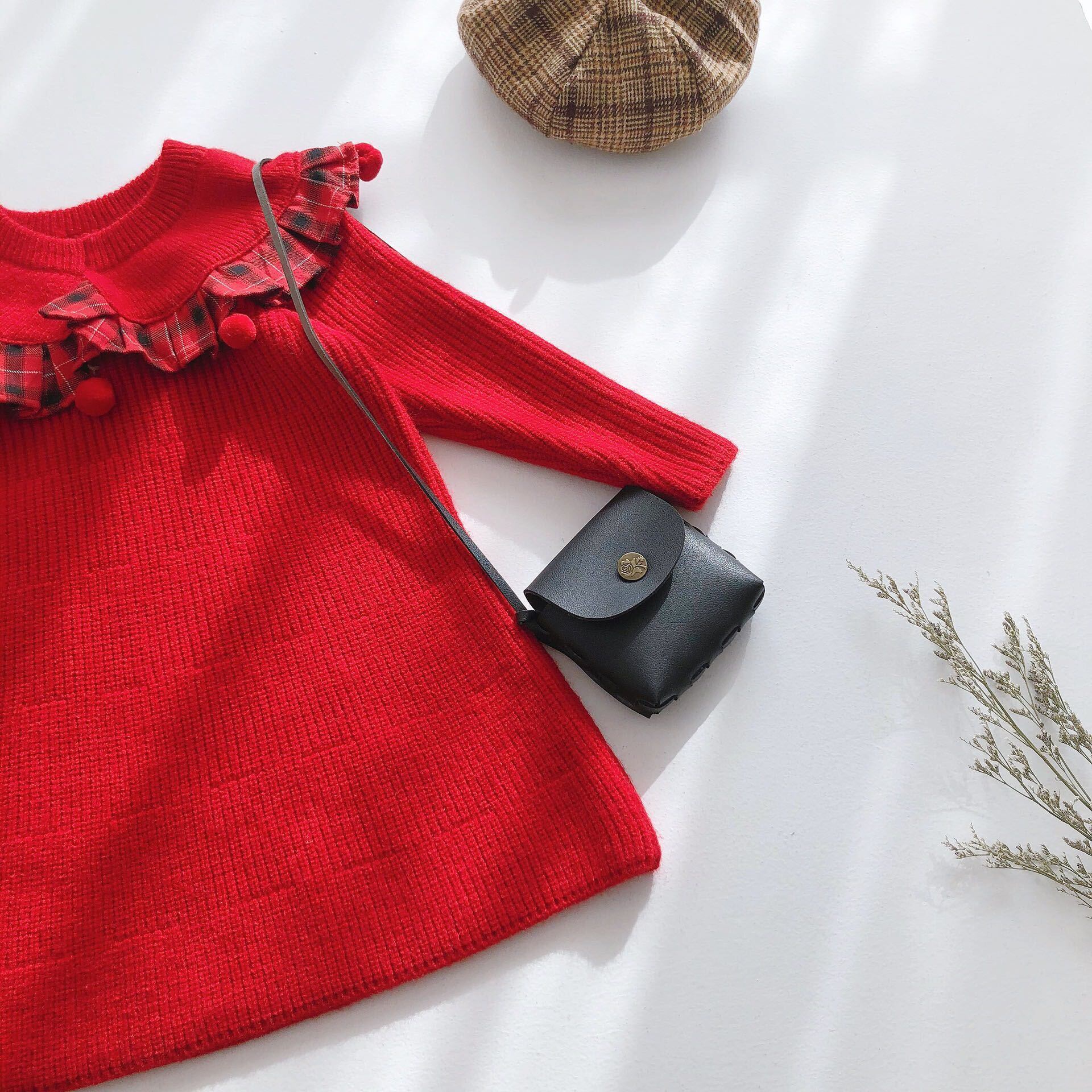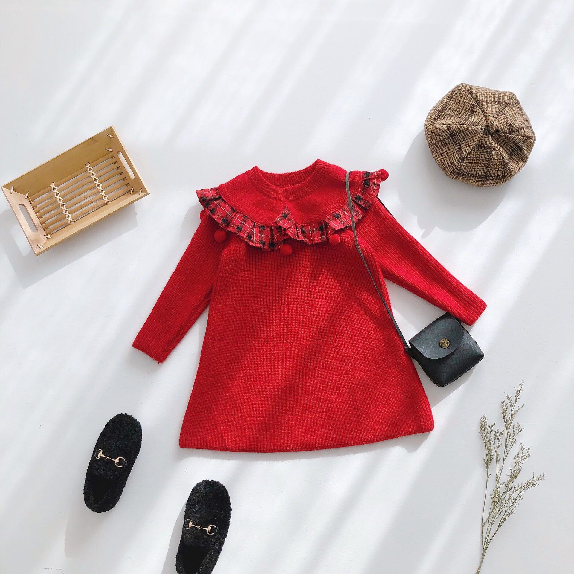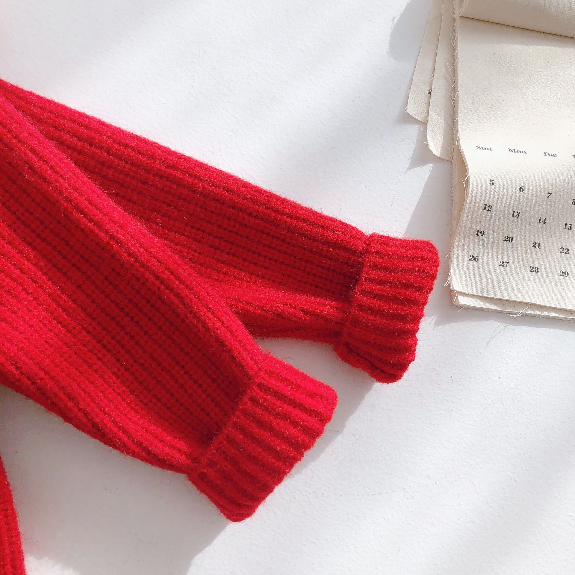 色:甘い赤いウールのスカート