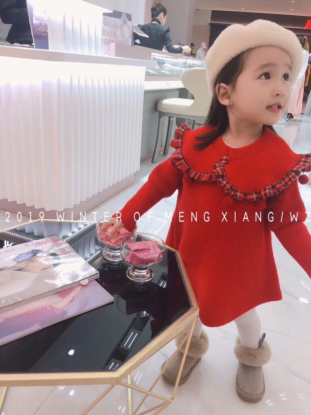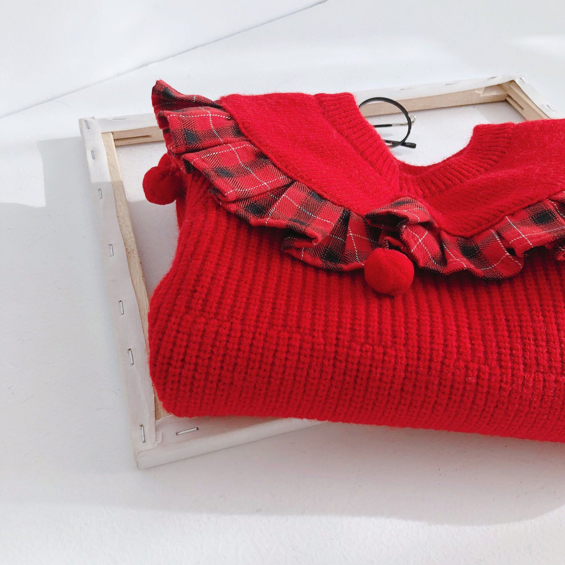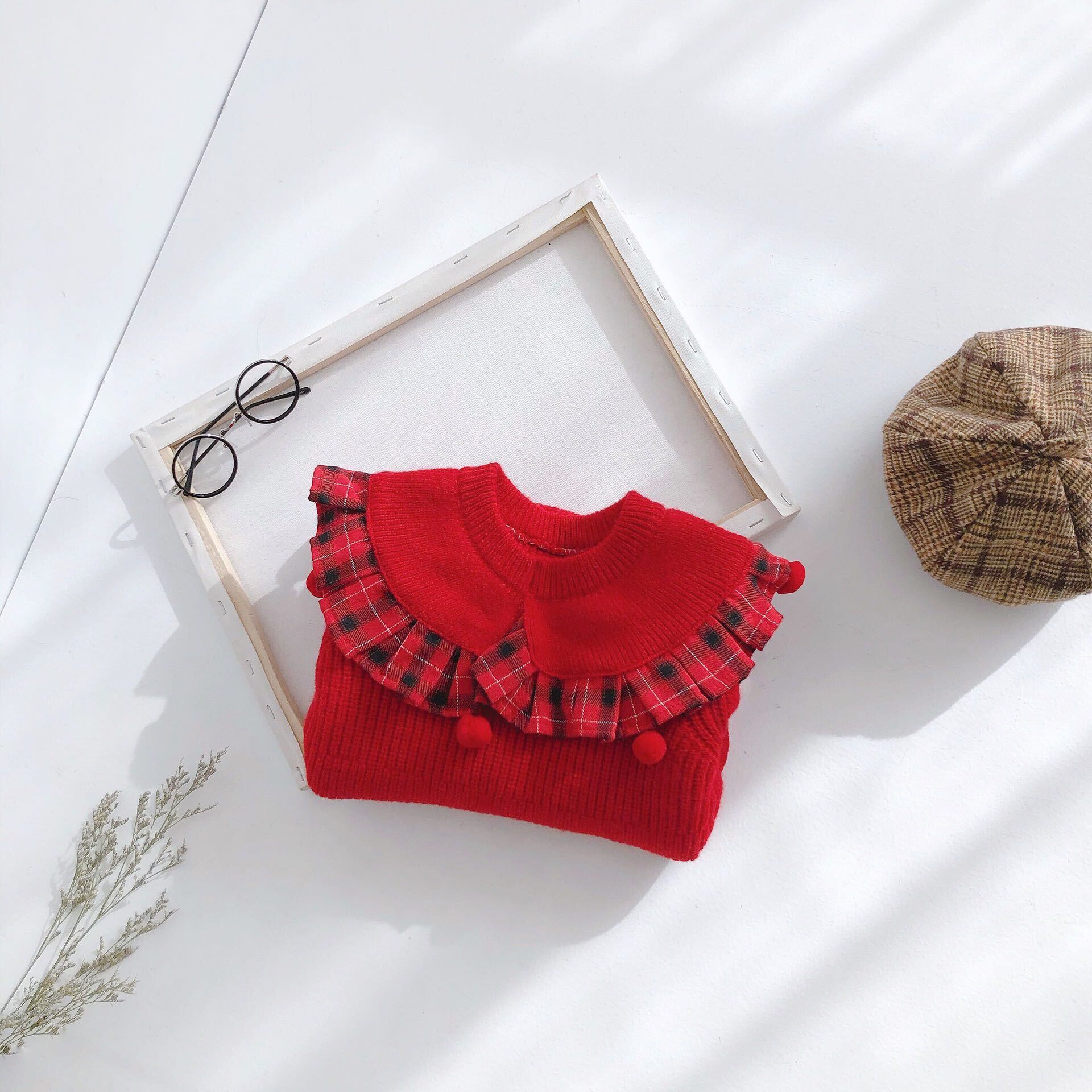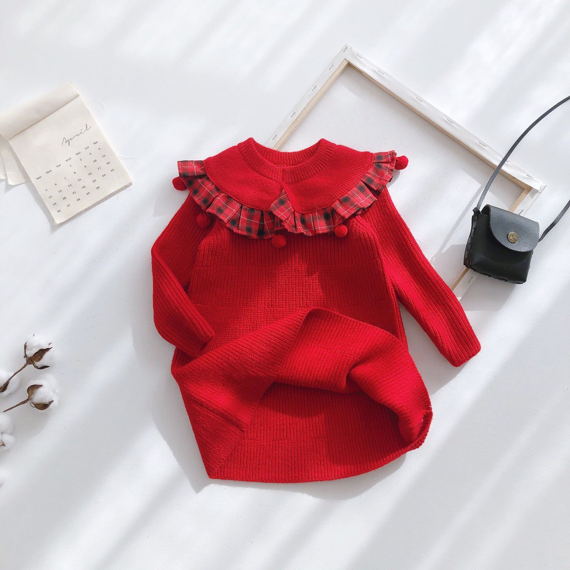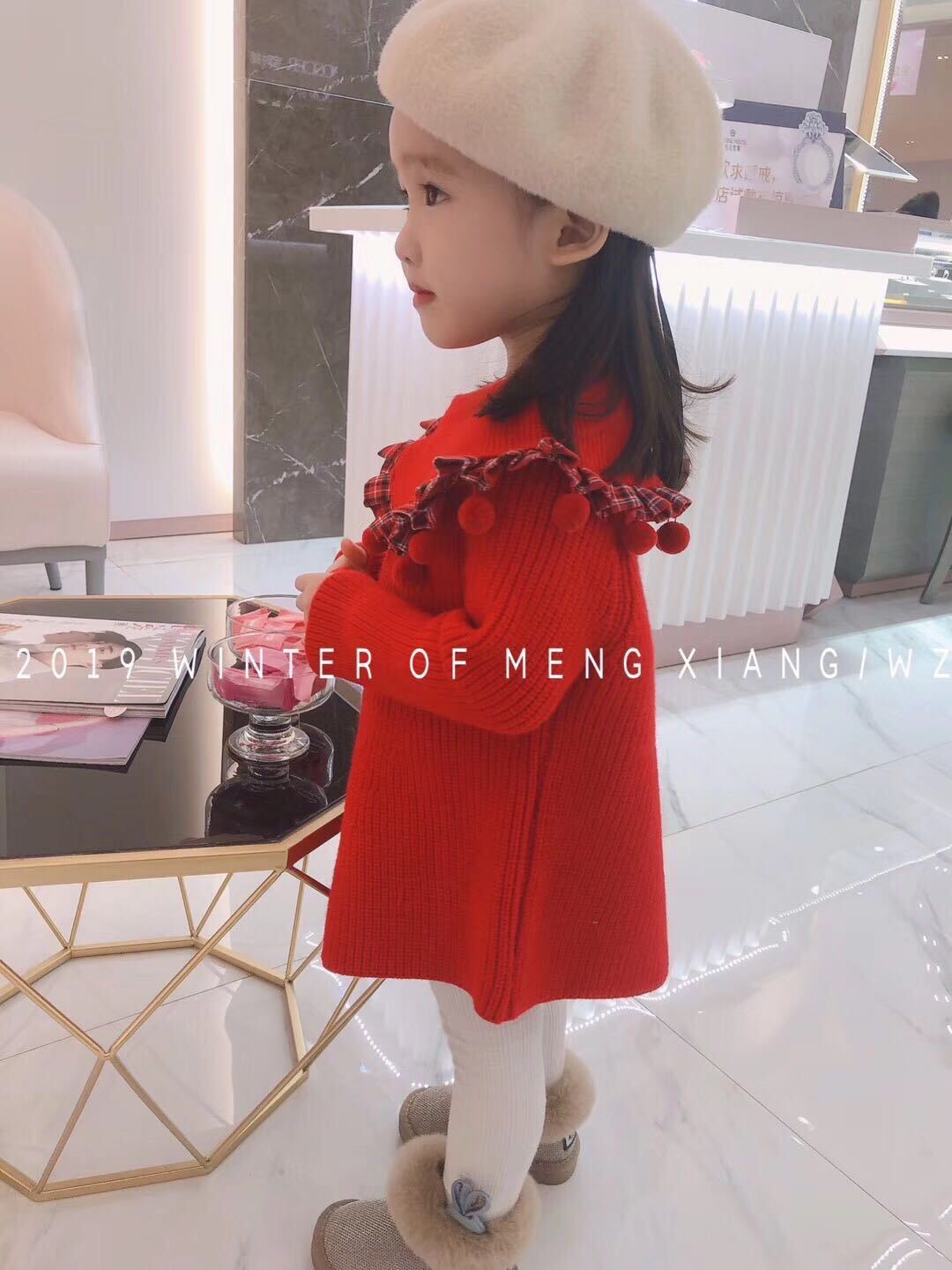 色:甘い赤いウールのスカート