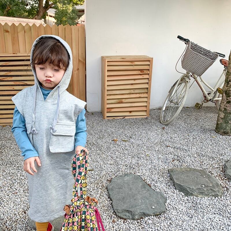スプリングソリッド カラーノースリーブフードカジュアルセーター ドレス 春物 ソリッドカラー 4/24 mi0986013645846 | Sagittarius By Constellation -KIDS&BABY-